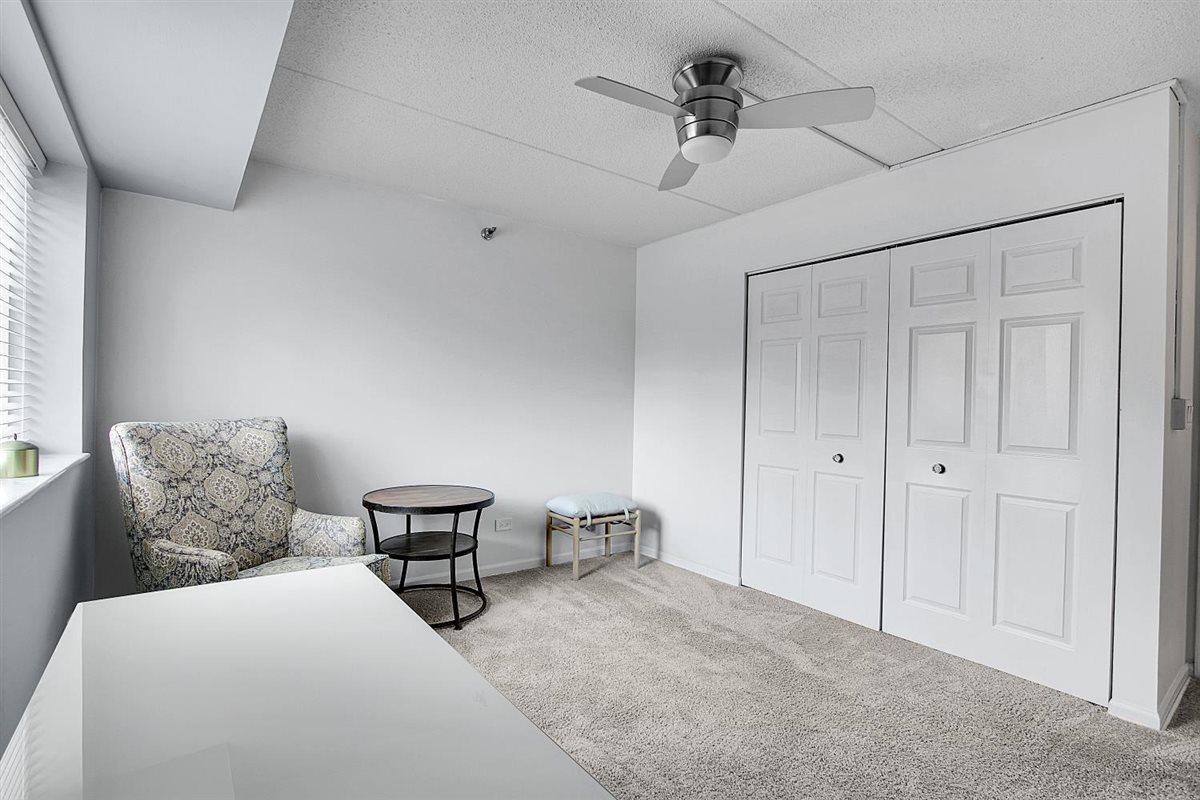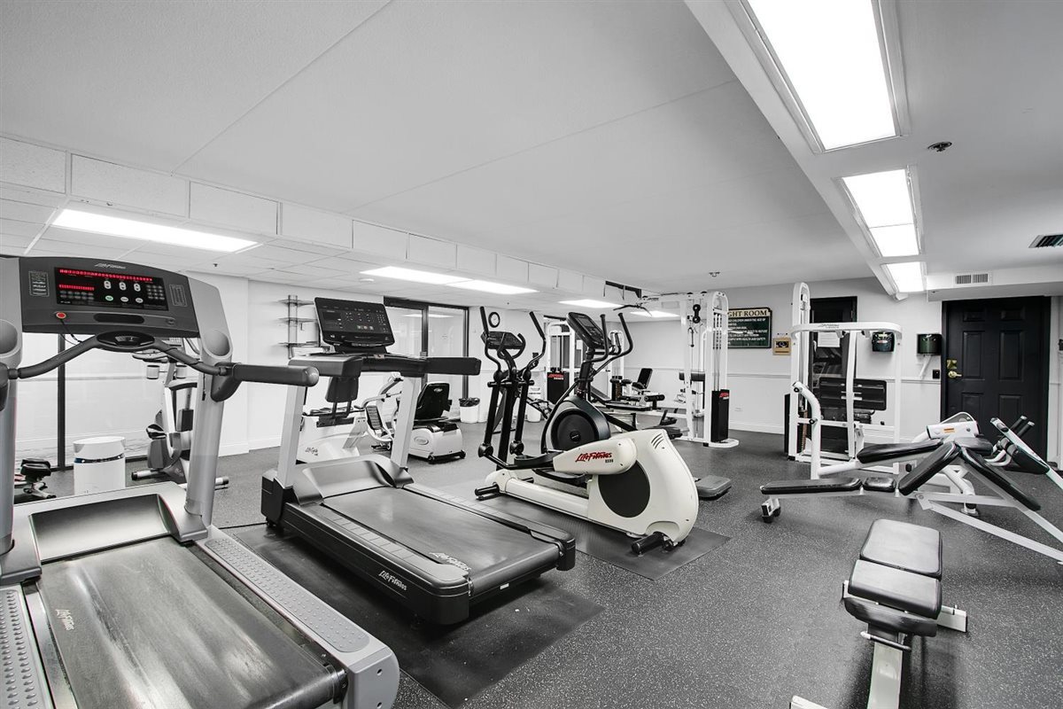 Welcome to 1 Bloomingdale Place-an exceptional opportunity to own an impeccably maintained 2-bedroom, 2-bath main-floor condo in a premier, full-amenity building. This is more than just a condo-it's a lifestyle. Residents enjoy a beautifully appointed party room, game room, fitness center, and a full-size indoor pool with hot tub, offering resort-style living year-round. The unit features an updated kitchen and bathrooms with granite countertops, classic white shaker cabinetry, and stainless steel appliances. The spacious primary suite offers generous closet space and private access to one of two patios, while a second patio off the living room provides additional outdoor living and entertaining space. Also has full unit washer dryer in unit! This condo is extremely well insulated, creating a quiet, peaceful environment within both the unit and the building. Additional highlights include two side-by-side garage parking spaces, additional storage unit, and a well-managed, beautifully maintained building. Property Manager is on site and takes impeccable care of the building. Move-in ready and ideally located, this main-level condo combines comfort, privacy, and convenience with outstanding amenities-perfect for those seeking low-maintenance living without sacrificing space or quality. A Must See!!!