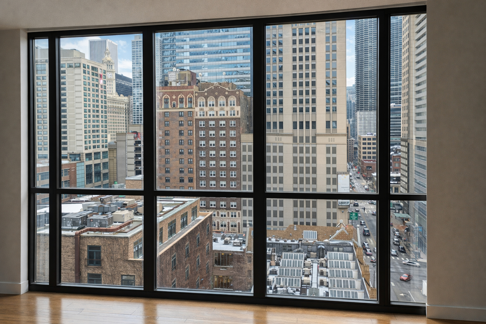 River North full-amenity high-rise. 24-hour door staff, fitness center, outdoor pool & sun deck, residents' lounge, and on-site management. Bright unit with floor-to-ceiling windows, hardwood floors, and modern kitchen with granite countertops and stainless-steel appliances. Open layout with spacious bedroom and multiple large closets. Prime River North location steps from the Chicago River, Michigan Ave, dining, nightlife, and CTA.