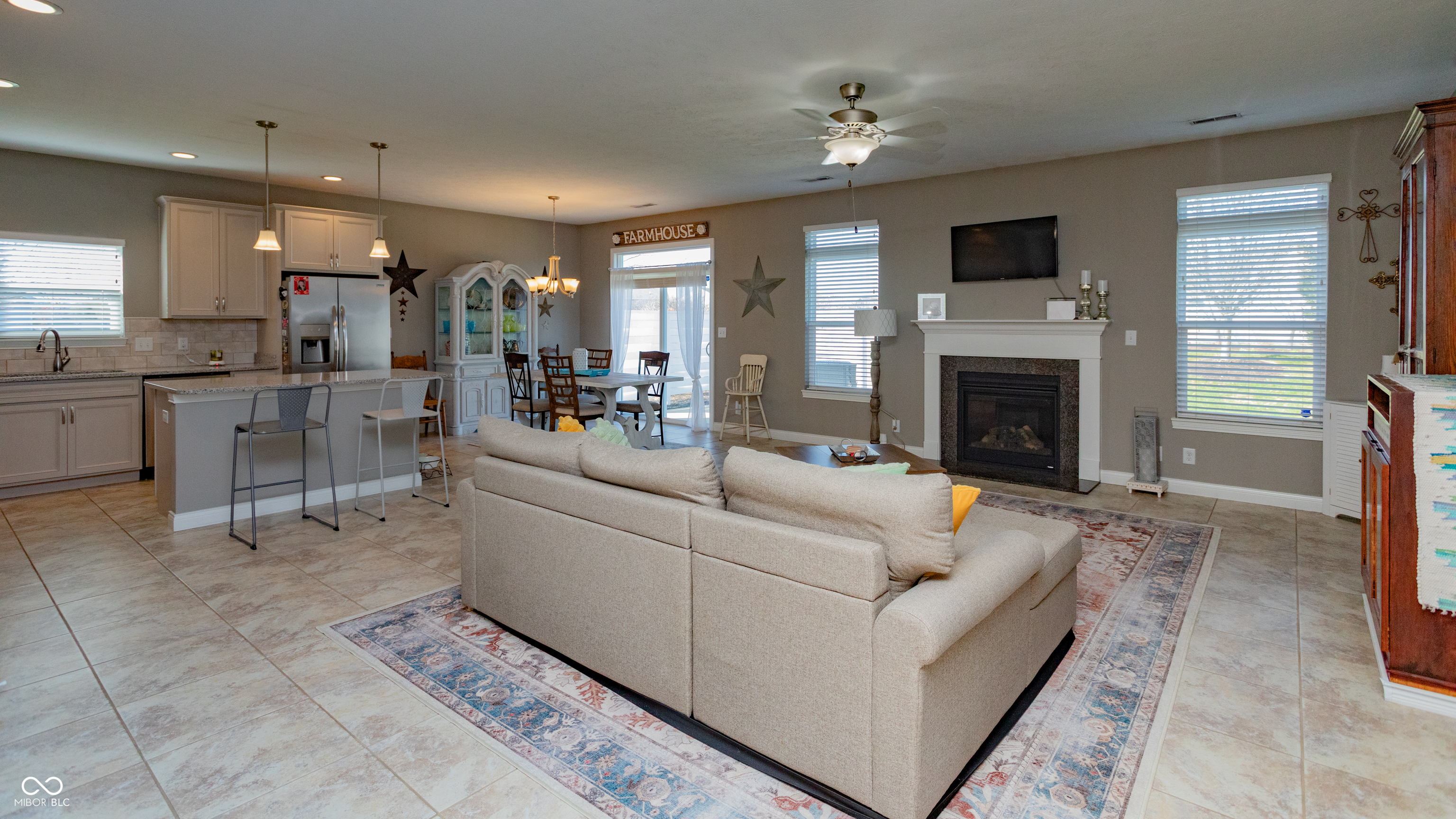 Low-maintenance 3-bedroom home for sale in Hartwood Village, West side community. This split floorplan home features 9-foot ceilings, tile flooring, and a gas log fireplace. The contemporary kitchen includes custom cabinets with crown molding, solid surface countertops, under-cabinet lighting, stainless steel appliances, pantry, and large island with seating. The owner's suite offers a tray ceiling, walk-in California closet, dual-sink vanity, and walk-in tile shower. Additional perks include spacious laundry with folding table, mudroom, private patio, full yard irrigation, Nest thermostat, water softener, and security system. HOA handles all lawn care and green space maintenance. Conveniently located near I-65 and US-52, perfect for West Lafayette homebuyers seeking style, comfort, and convenience.