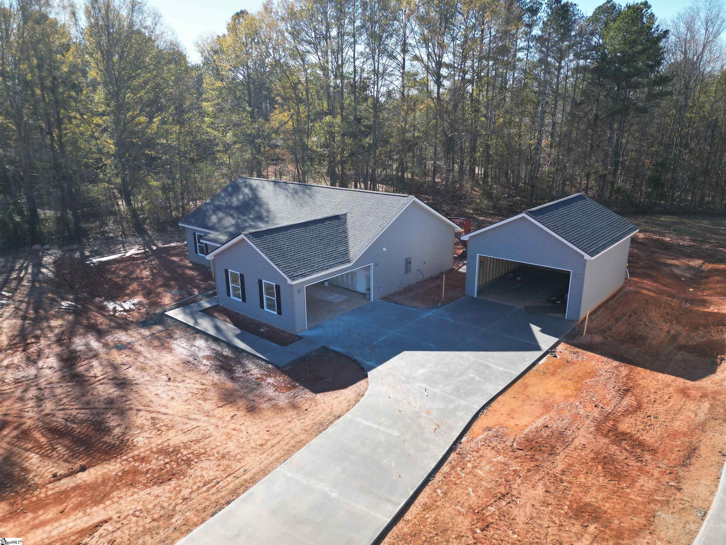 This charming home, situated on over an acre of land, offers an exceptional opportunity for those seeking space and freedom with no HOA restrictions. An additional 25x20 detached two-car garage provides a total four-car capacity and is ideal for storing a boat, camper, or creating the perfect workshop. The expansive driveway offers ample parking, making it perfect for gatherings or multiple vehicles. Inside, luxury LVP flooring flows throughout the home, providing both durability and modern style. The vaulted ceiling enhances the open living area, creating a bright and spacious feel. The well-appointed kitchen features stainless steel Frigidaire appliances, granite countertops, and abundant cabinetry, making meal preparation both functional and enjoyable. The home offers four bedrooms, including a generously sized owners suite that serves as a private retreat. The suite includes a full bath with a walk-in shower, double vanities, and a large walk-in closet. Additional highlights include a spacious laundry area and a rear patio ideal for grilling and enjoying outdoor activities. With its desirable features, generous space, and attractive price point, this home is move-in ready and waiting for its next owner. Dont miss the opportunity to make it yours!