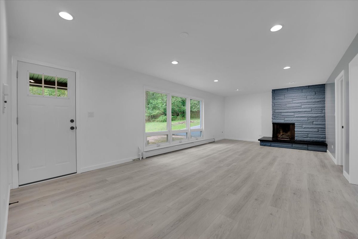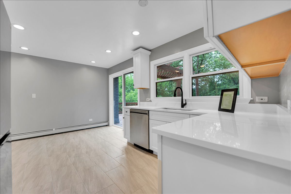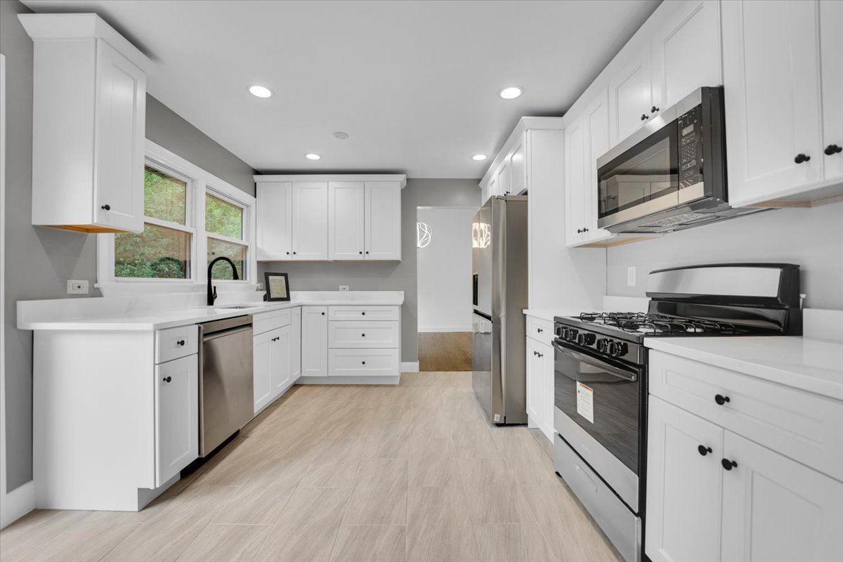 Available May 1st. Welcome to your dream home nestled in the sought-after Oak Hills Subdivision, conveniently located within walking distance to the serene Fox River and the popular Fox 14 Marina, featuring a public boat ramp for your aquatic adventures. This stunning 4-bedroom, 3-bathroom residence boasts a meticulously maintained exterior with a brand-new roof and siding, and ample parking with a long driveway accommodating 8 to 10 cars, plus a spacious 2-car garage. As you step inside, you'll be greeted by a grand foyer adorned with exquisite tile work, leading you up to freshly finished hardwood floors and a lofty vaulted ceiling in the living room, highlighted by a magnificent two-story fireplace that sets the perfect ambiance. The open layout flows seamlessly into the formal dining area, perfect for entertaining guests. The modern kitchen is a chef's delight, featuring new tile floors, elegant white cabinets, quartz countertops, and stainless steel appliances. An inviting eat-in area awaits, while the sliding glass door leads you out to the tranquil deck overlooking a wooded backyard-an idyllic spot for sipping your morning coffee while listening to the sweet symphony of nature. Each of the three full bathrooms in this home has been beautifully remodeled from floor to ceiling, showcasing new tiles, stylish vanities, and contemporary toilets. Enjoy the convenience of a bathroom in the primary suite, one in the hallway, and another in the walk-out basement. Descend to the inviting walkout basement, where you'll find a sprawling family room perfect for entertaining, complete with a second floor-to-ceiling fireplace. This level also features a fourth bedroom, a third full bathroom, and an oversized laundry area. The basement's exterior door leads to a scenic patio space, ideal for summer gatherings. This home has been remodeled with exceptional attention to detail, inspected at every step by the Village of Algonquin to ensure quality and safety. Don't miss the chance to make this beautifully redesigned home your own-schedule a viewing today!