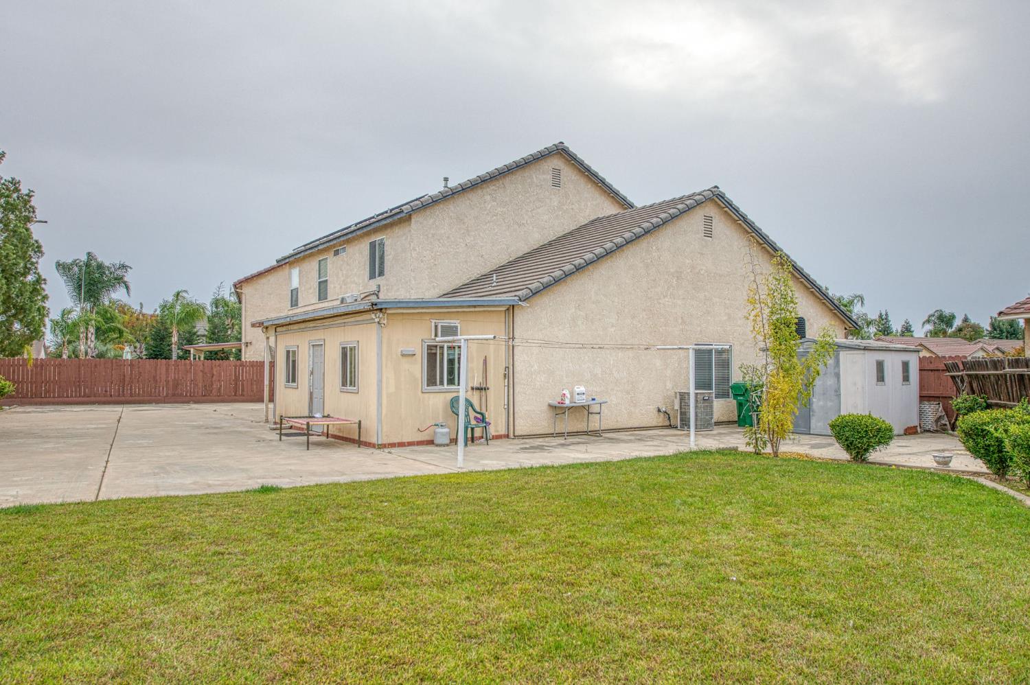 Welcome to this warm and inviting home nestled in one of Fowler's most family-friendly neighborhoods! Located at the end of a peaceful cul-de-sac, this beautiful two-story home sits on a spacious 9,350 sq ft lot offering plenty of room for kids to play, entertain friends, and grow a garden of your dreams. With over 2,500 sq ft of living space, this thoughtfully designed floor plan includes 4 bedrooms and 3 bathrooms, providing the perfect blend of comfort and flexibility. The downstairs bedroom with adjoining bath and laundry area is ideal for guests, grandparents, or a next-gen setup. At the front of the home, a bright flex room makes a wonderful home office, playroom, or creative space. The heart of the home features a modern kitchen with granite countertops and a bonus secondary kitchen perfect for holiday cooking, family dinners, or prepping for big celebrations. The formal living and dining rooms are spacious and welcoming, ideal for hosting get-togethers and making lasting memories. Upstairs, unwind in the large master suite, a true retreat after a busy day. Outside, the backyard is a dream with a large concrete patio for barbecues and gatherings, plenty of lush green space, and even room to plant your own vegetable or flower garden. Additional features include owned solar panels for energy savings, central heating and air, and a premium cul-de-sac location for extra privacy and peace of mind. This is more than a house it's a place to raise a family, entertain, and truly feel at home. 💛