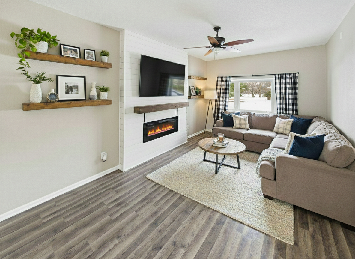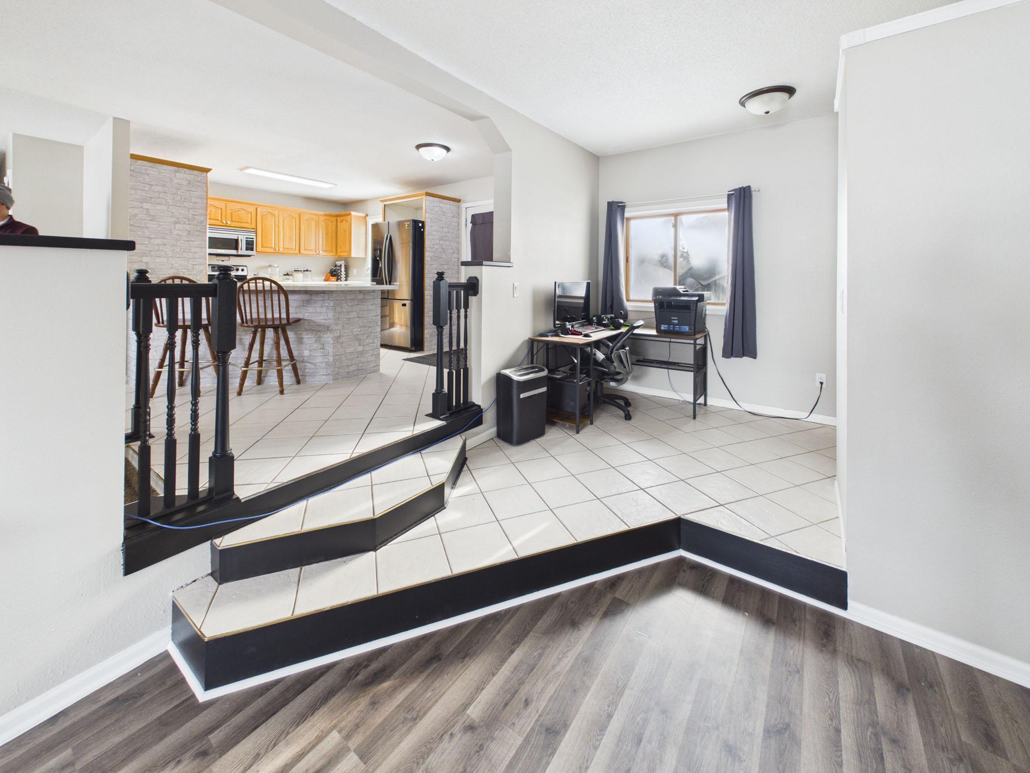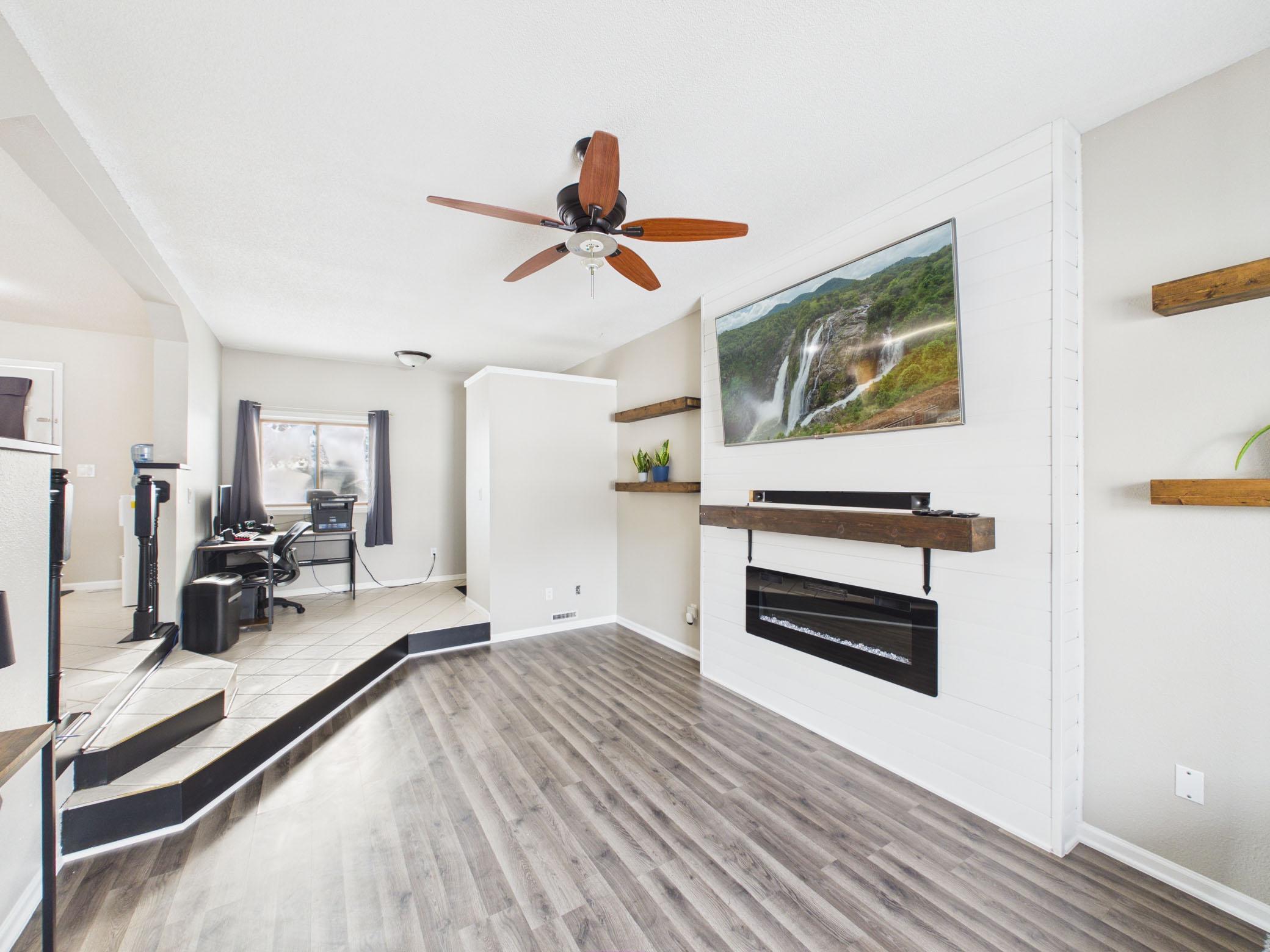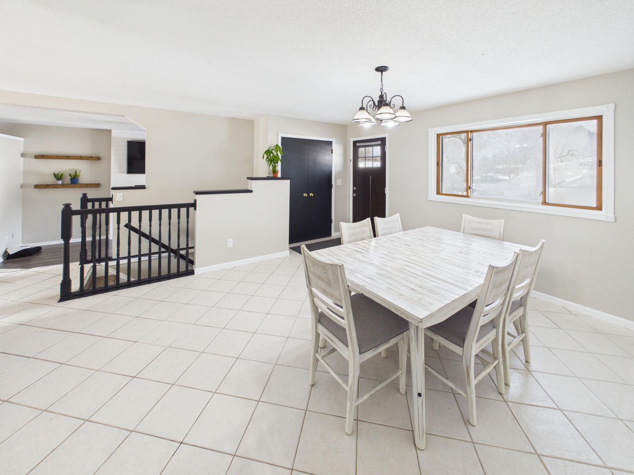 Beautifully updated 5-bedroom, 2-bath rambler home offering 2,300+ finished square feet on a spacious corner lot overlooking a Klinefelter park. Thoughtful updates include fresh paint, trendy accents, luxury vinyl plank flooring, remodeled bathrooms, and a striking fireplace feature wall that anchors the living space. The open kitchen and dining area features stainless steel appliances and easy access to a large deck, perfect for entertaining or relaxing in the fully fenced yard. The main level offers three bedrooms, including a primary with a walk-in closet. Additional highlights include steel siding, concrete driveway with an extra parking pad alongside the garage, and an exceptional location close to parks and amenities.