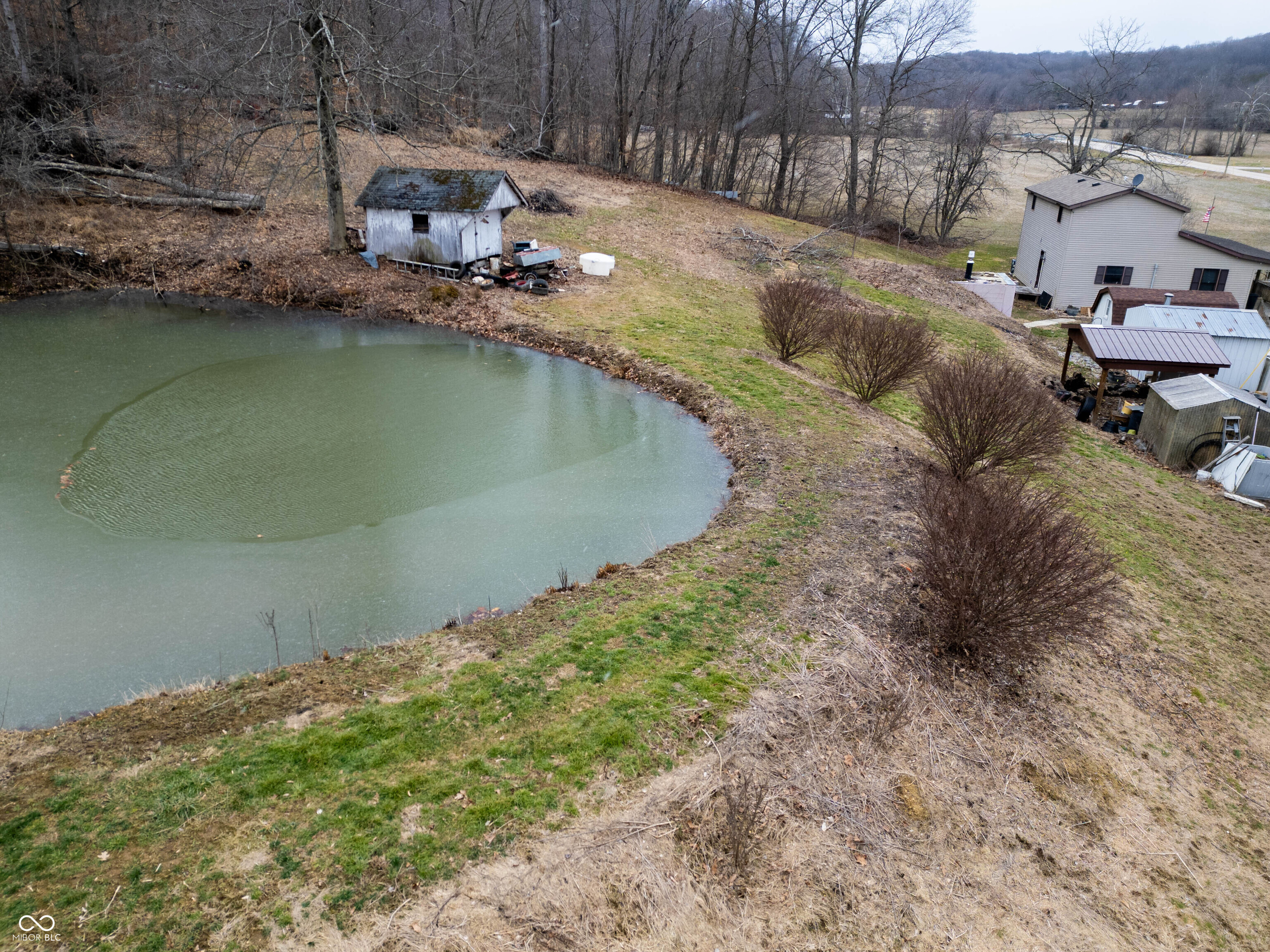 Located on 6.08 acres, this 4-bedroom, 1-bath home offers functional living space and multiple exterior uses. The property includes a fully stocked pond, permeant tree stand, built-in storm shelter, and five outbuildings providing ample storage and outdoor recreation. The home features a large kitchen with all appliances included. Utilities are total electric, with the addition of an outdoor wood furnace for supplemental heat. A detached 5-car garage includes electric service and a bathroom, offering additional workspace or storage options. The acreage provides open space and a rural setting with room for a variety of potential uses. A small creek running along the east side of the property makes this a very peaceful home!! Home Warranty Included