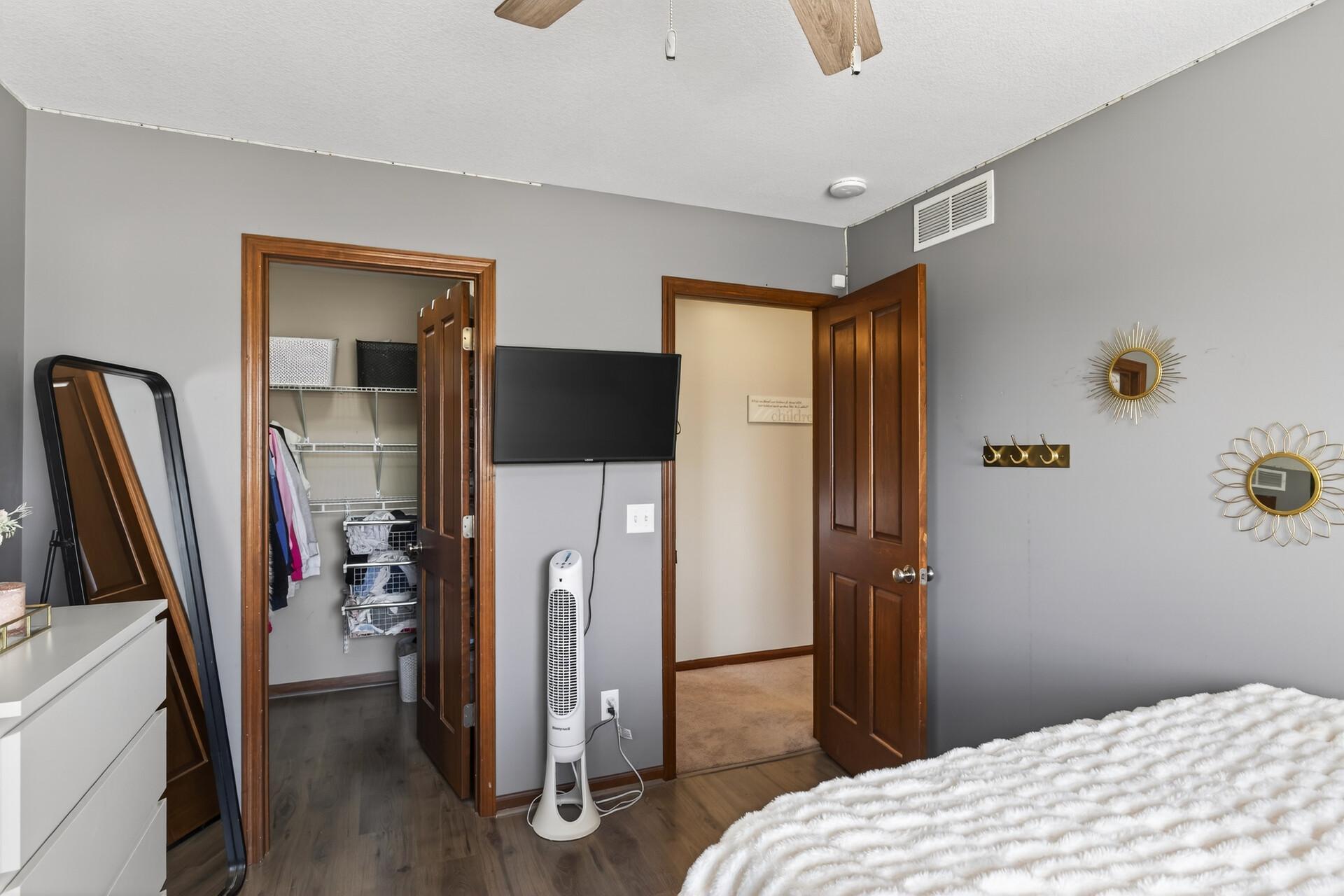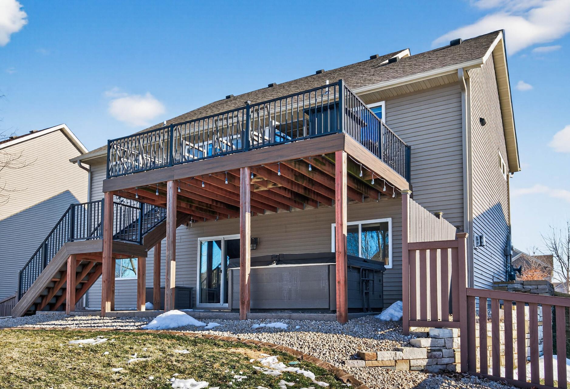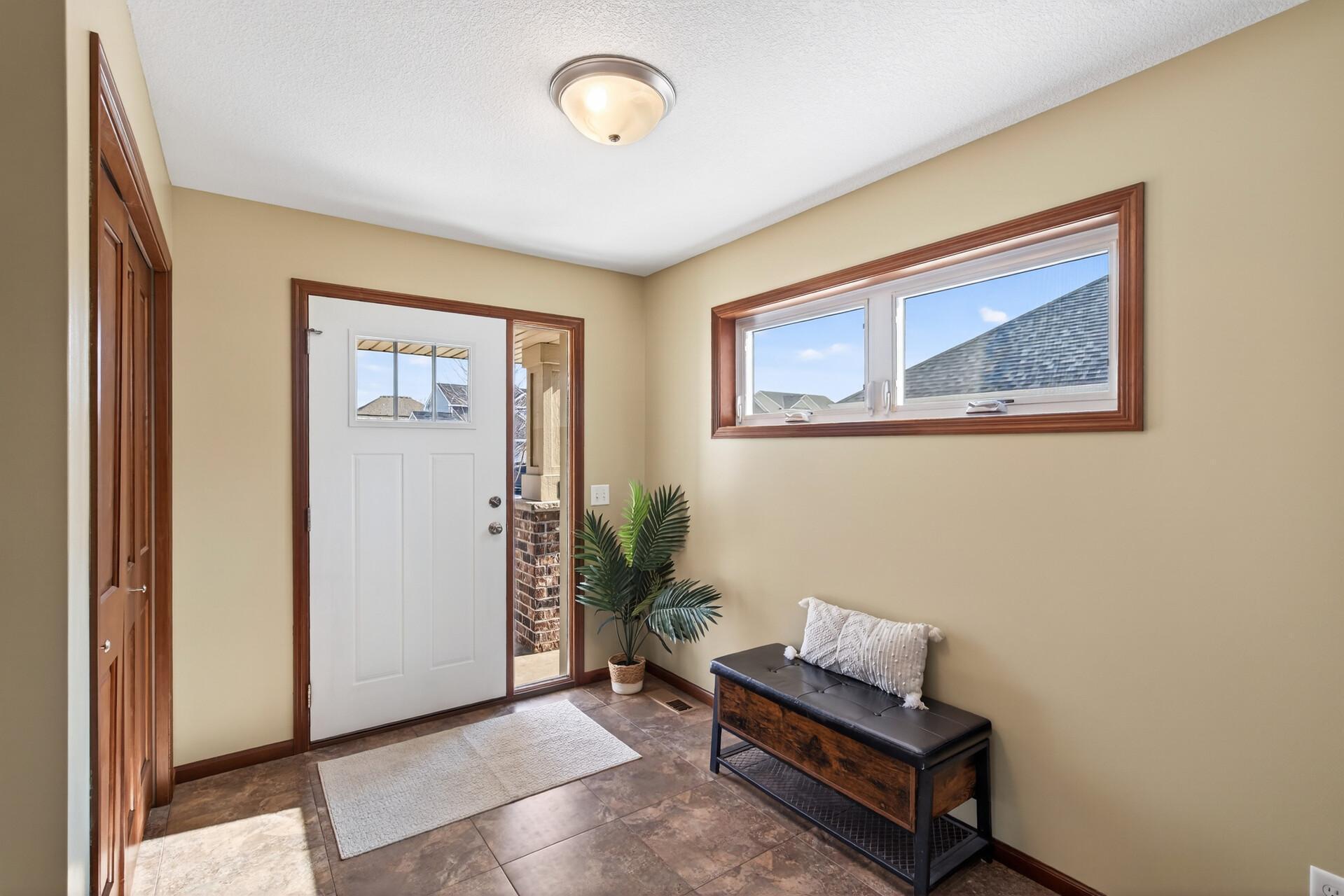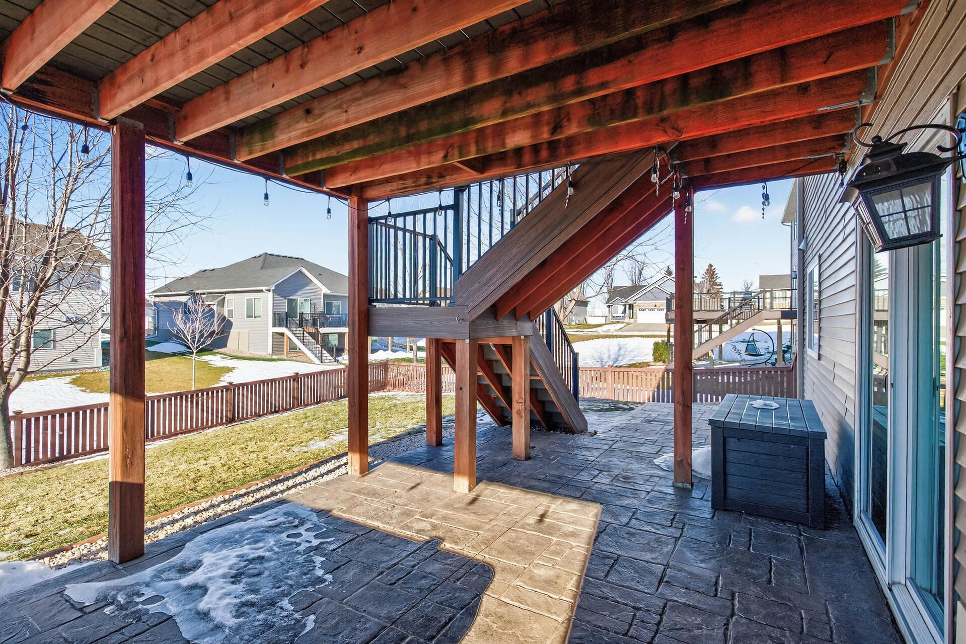 Beautiful custom-built 4-bedroom, 3-bath multilevel home in the desirable Bridle Creek neighborhood, thoughtfully maintained by its original owners. Unlike a traditional split-level, this home welcomes you with a spacious entryway. This well-maintained home features three bedrooms on one level and a convenient primary bedroom on the main floor. Enjoy the fully fenced backyard with a maintenance-free deck overlooking professionally landscaped grounds and professionally designed retaining wall. The walkout lower level offers a cozy gas fireplace, spacious family room, laundry area, flexible bonus space, and stamped concrete patio beneath the deck perfect for relaxing or entertaining. Heated 3 car garage with epoxy-coated floor adds comfort and functionality year-round. Residents enjoy shared neighborhood amenities including a pool, park, and basketball courts. Conveniently located with easy access to Highway 169 and nearby shopping, dining, and local amenities.