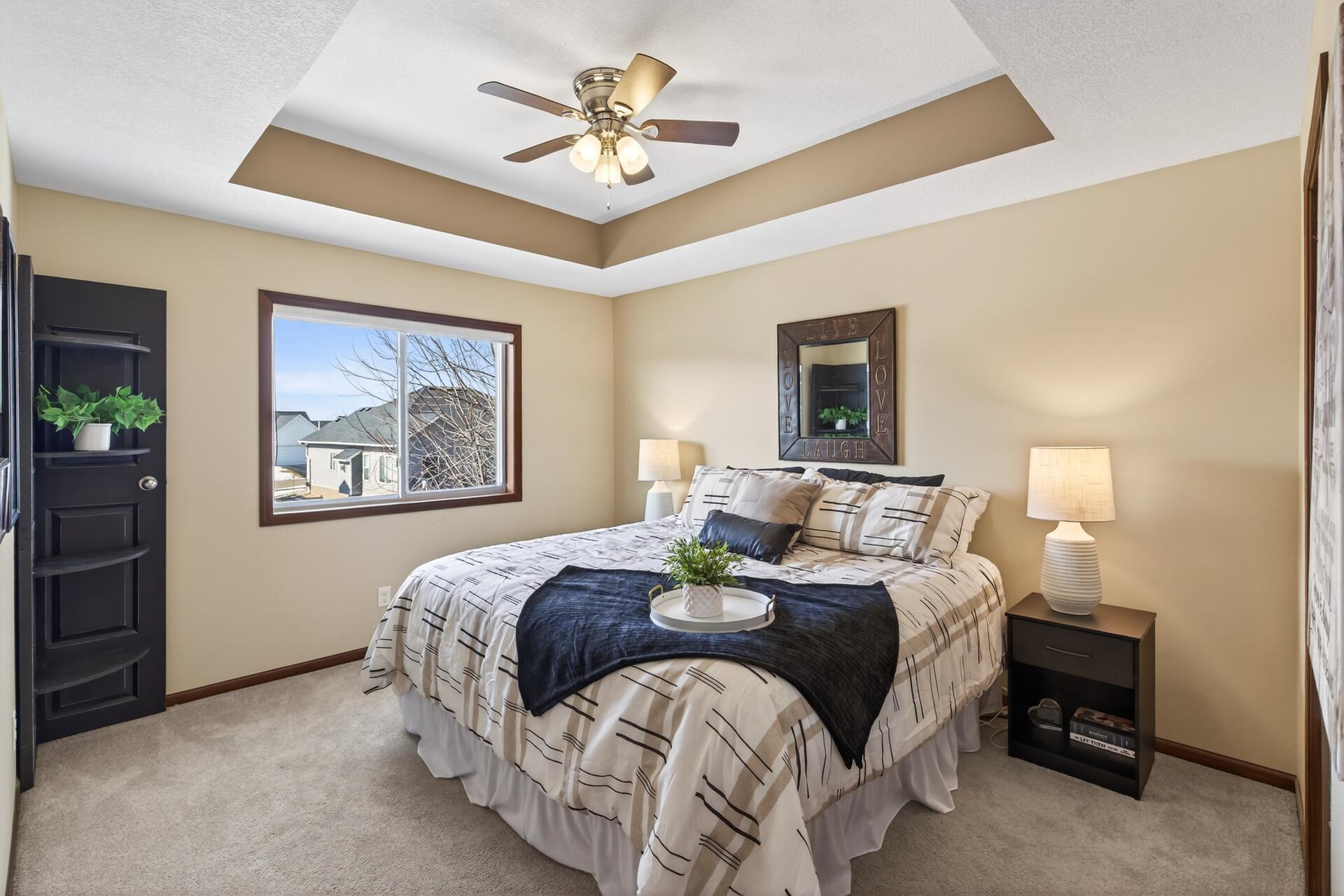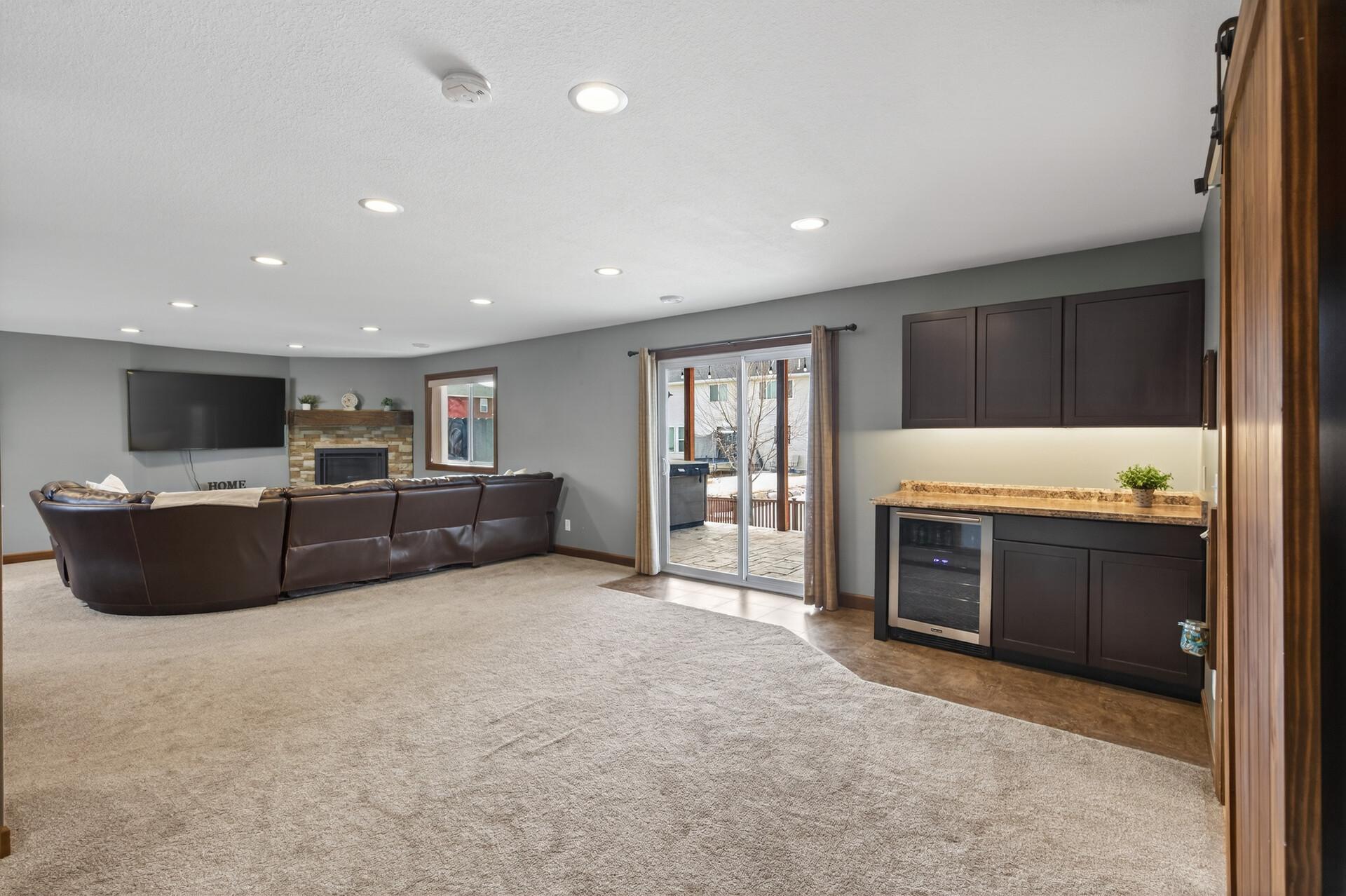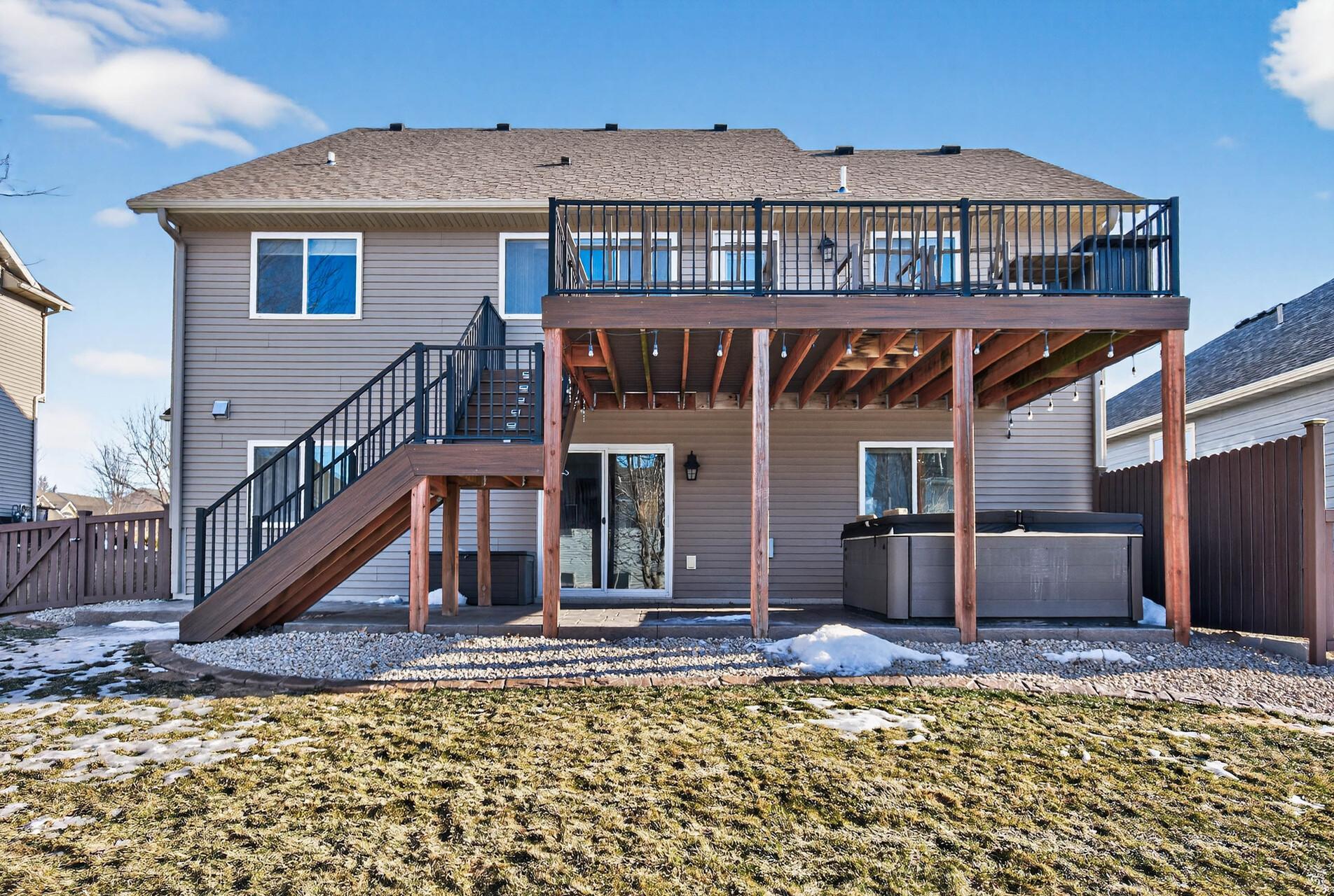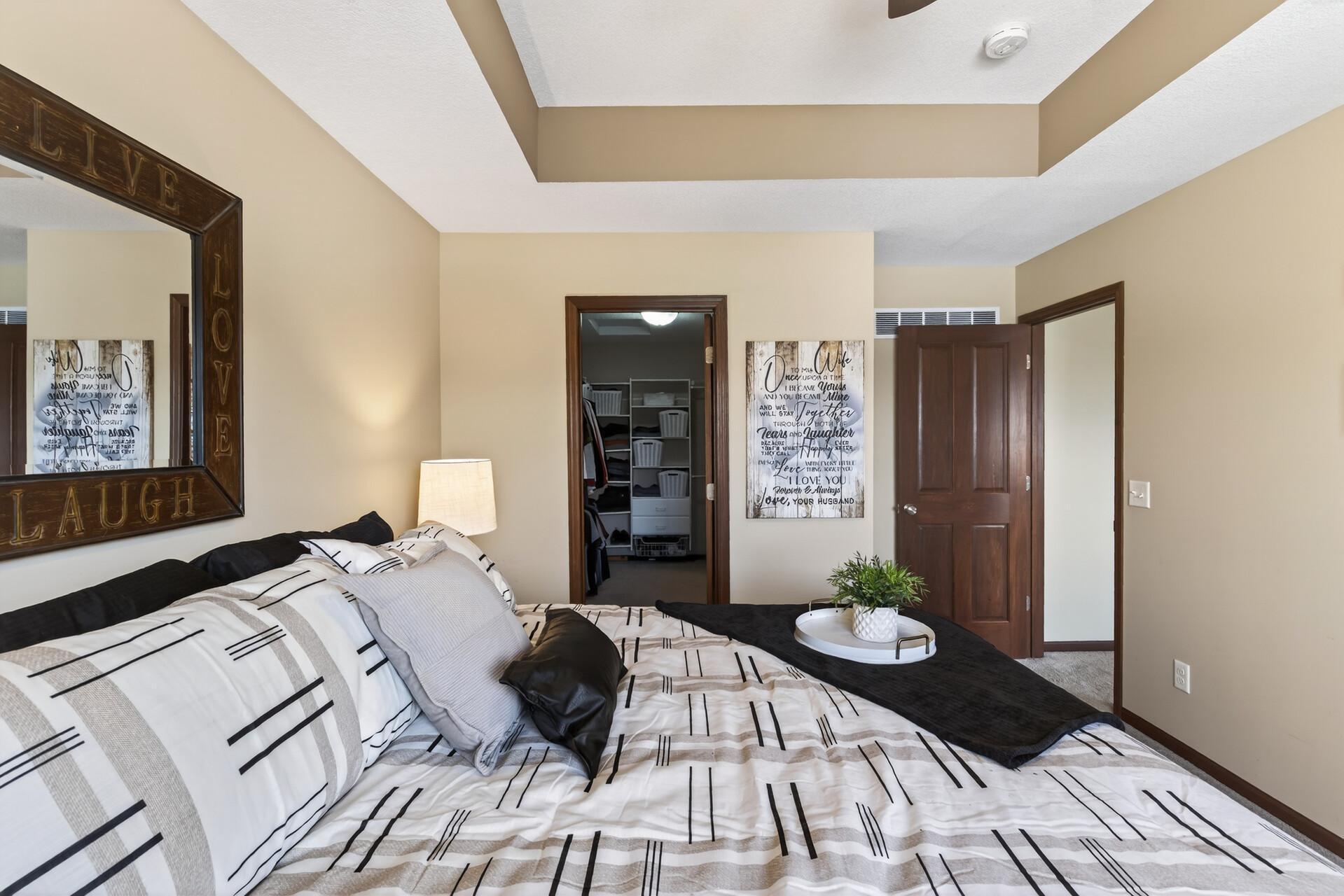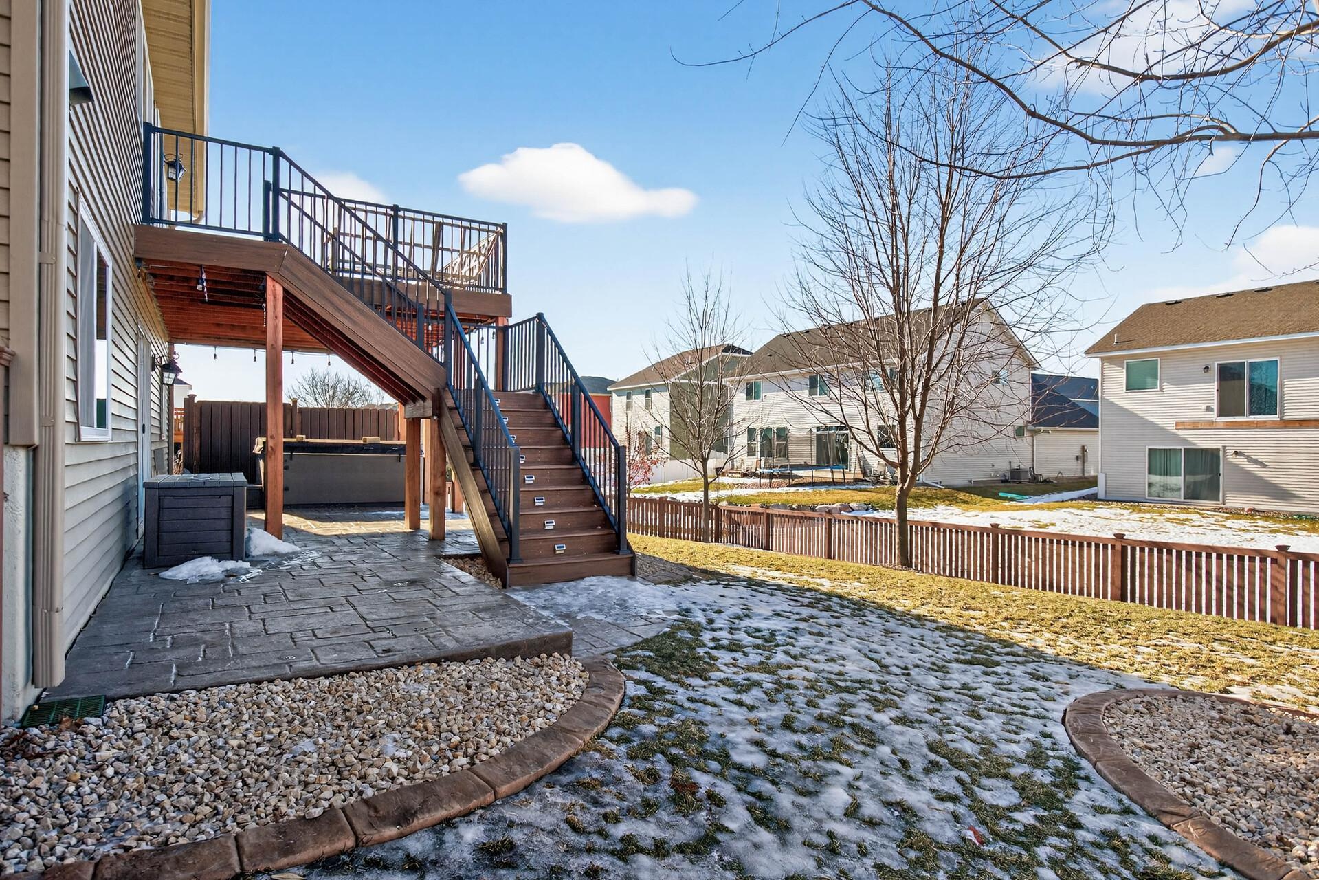 Beautiful custom-built 4-bedroom, 3-bath multilevel home in the desirable Bridle Creek neighborhood, thoughtfully maintained by its original owners. Unlike a traditional split-level, this home welcomes you with a spacious entryway. This well-maintained home features three bedrooms on one level and a convenient primary bedroom on the main floor. Enjoy the fully fenced backyard with a maintenance-free deck overlooking professionally landscaped grounds and professionally designed retaining wall. The walkout lower level offers a cozy gas fireplace, spacious family room, laundry area, flexible bonus space, and stamped concrete patio beneath the deck perfect for relaxing or entertaining. Heated 3 car garage with epoxy-coated floor adds comfort and functionality year-round. Residents enjoy shared neighborhood amenities including a pool, park, and basketball courts. Conveniently located with easy access to Highway 169 and nearby shopping, dining, and local amenities.