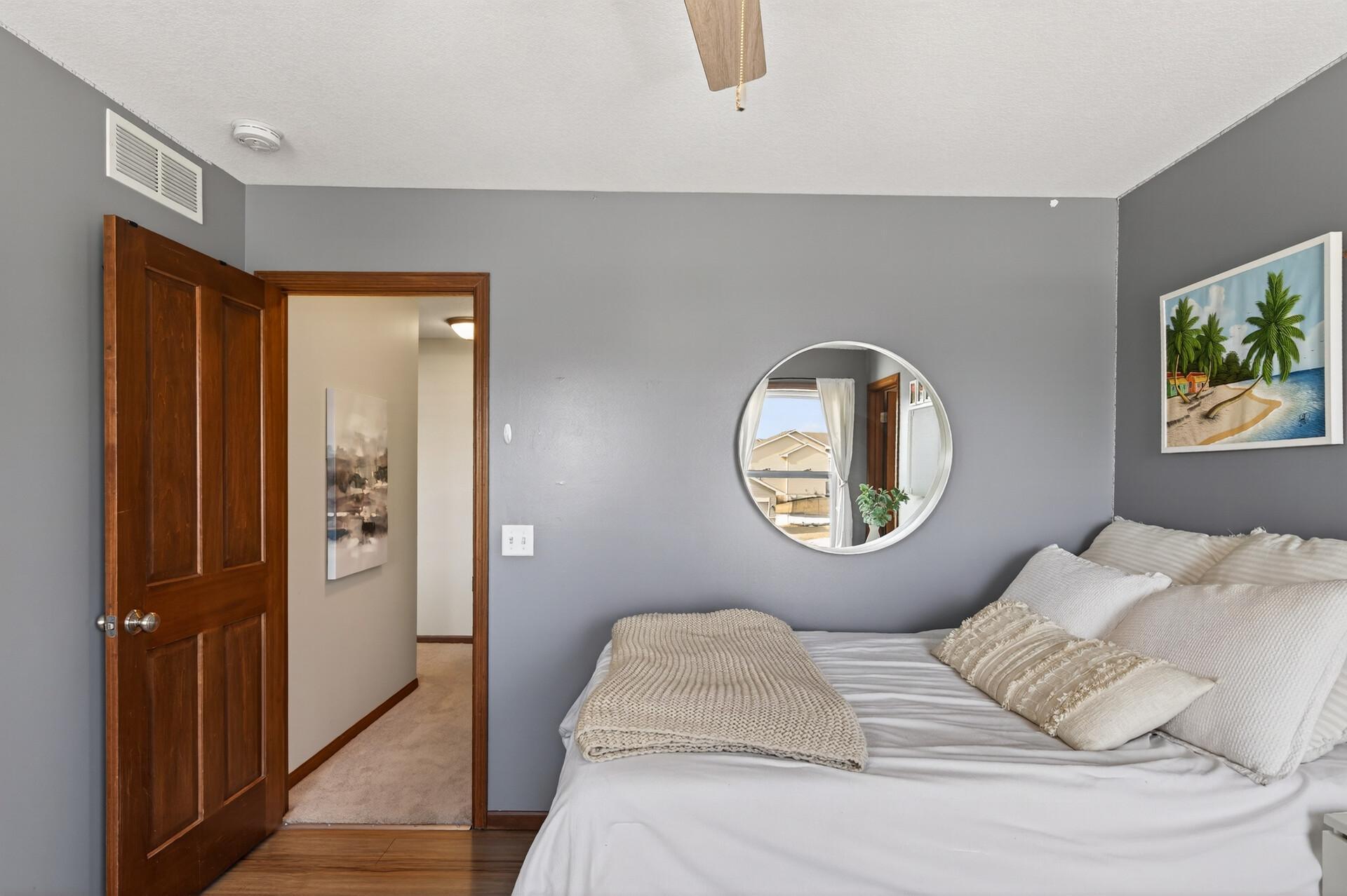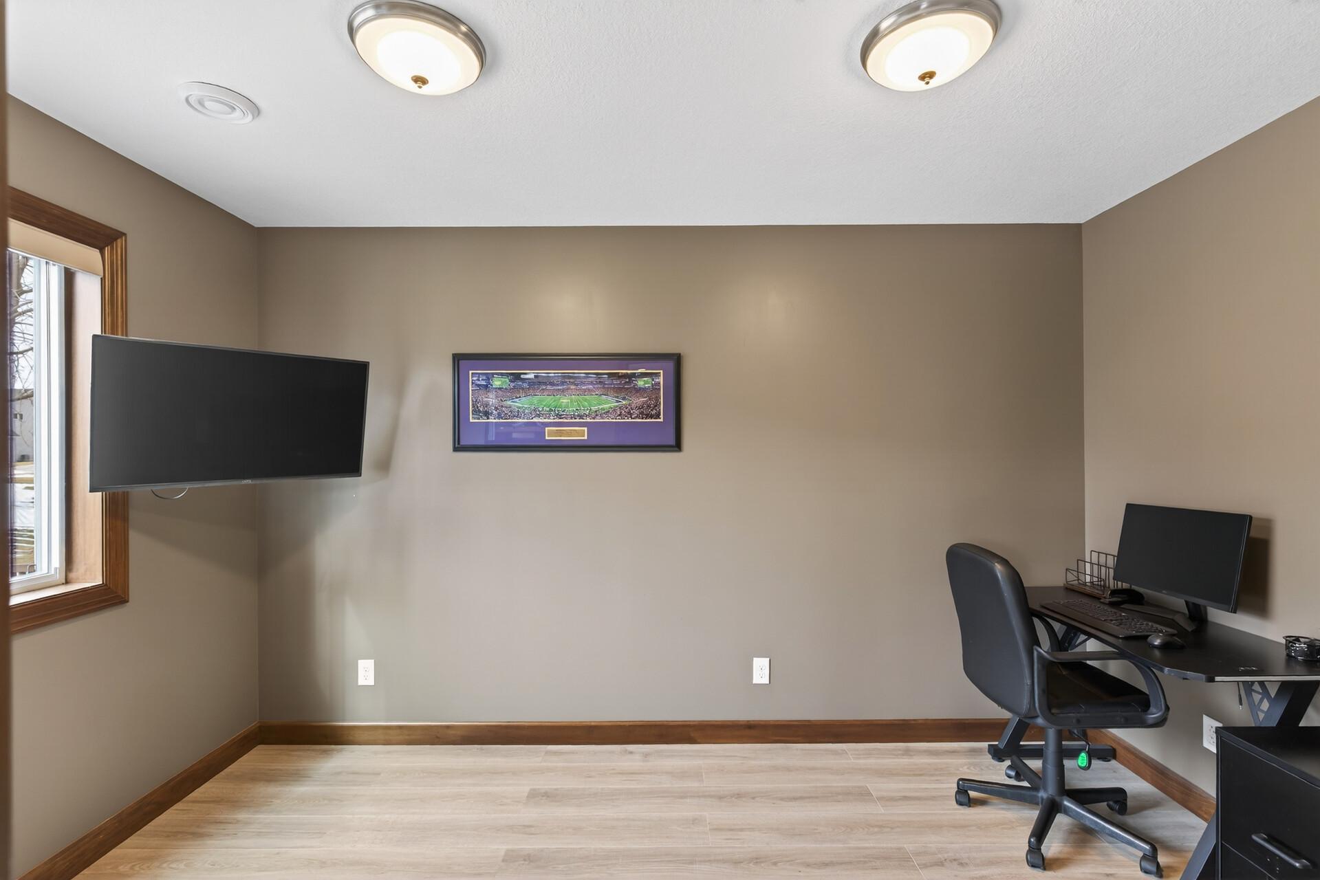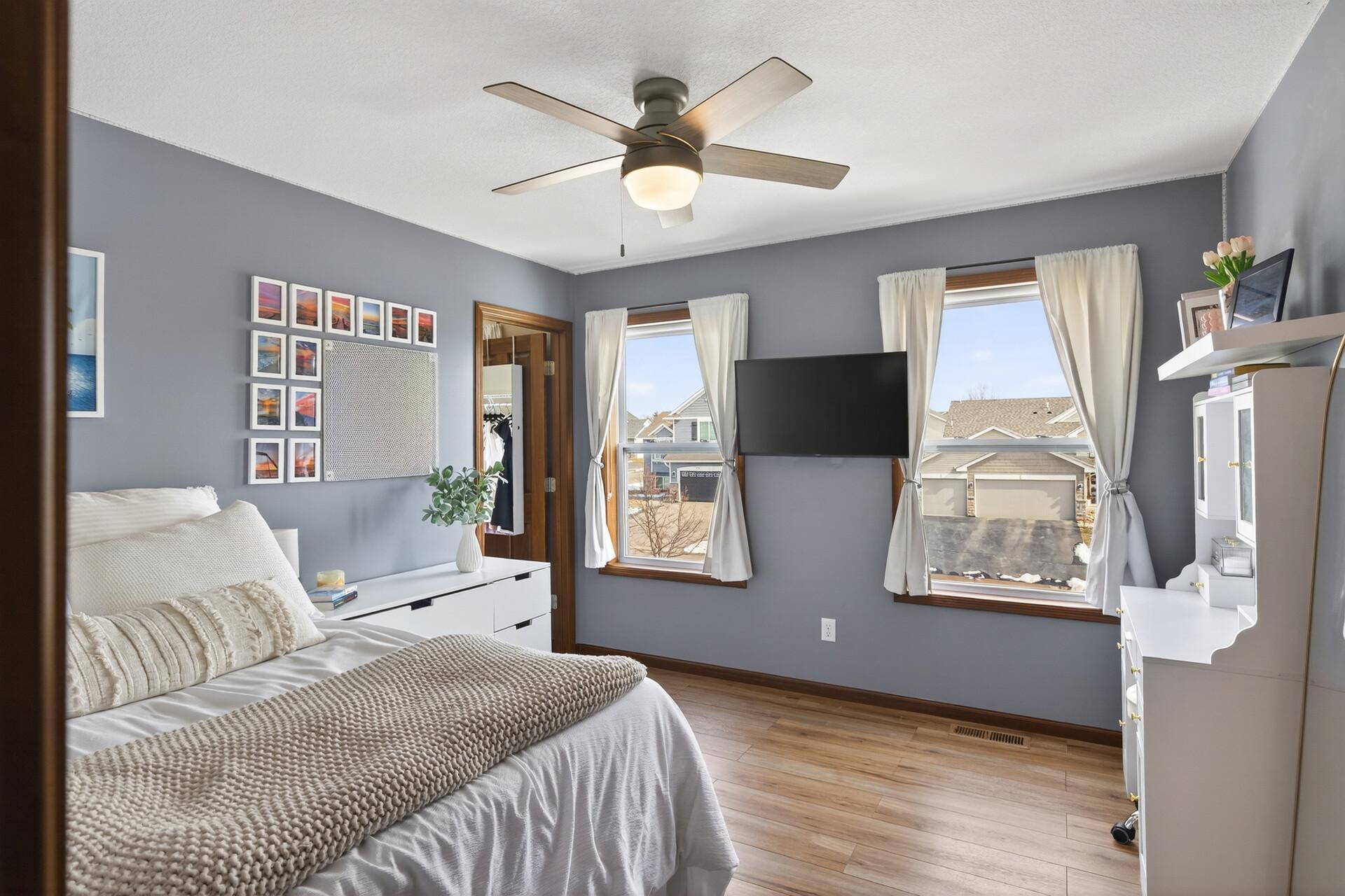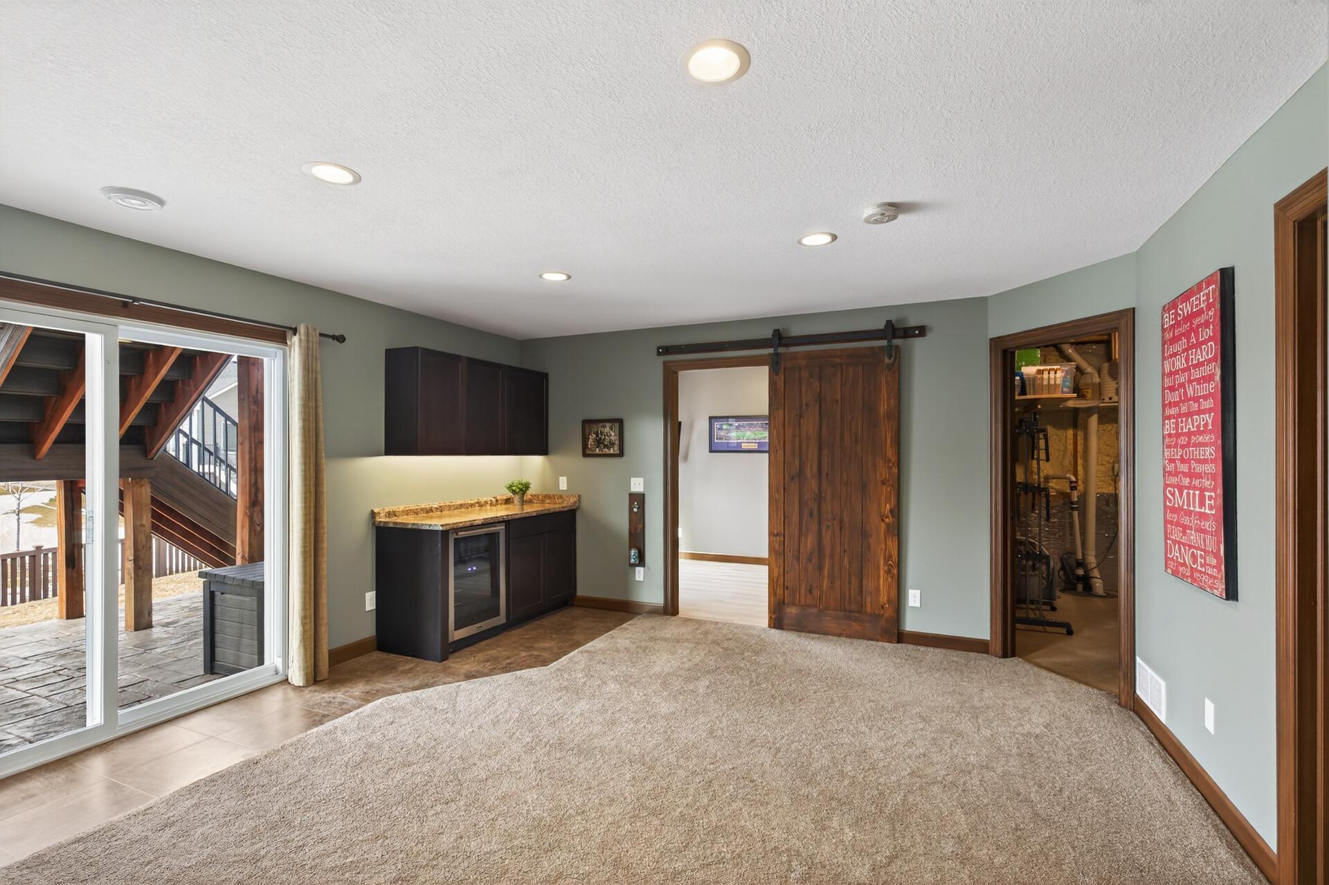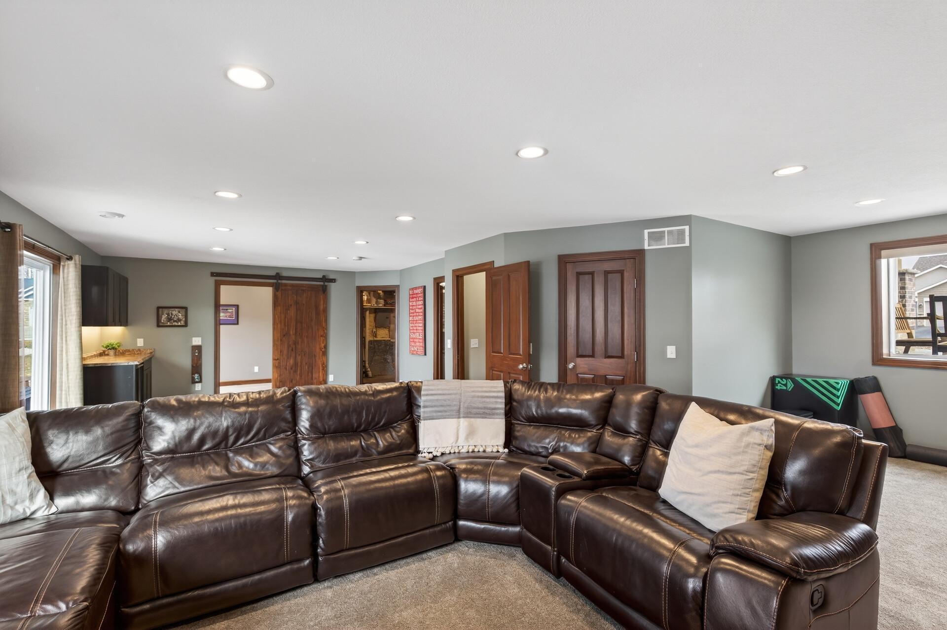 Beautiful custom-built 4-bedroom, 3-bath multilevel home in the desirable Bridle Creek neighborhood, thoughtfully maintained by its original owners. Unlike a traditional split-level, this home welcomes you with a spacious entryway. This well-maintained home features three bedrooms on one level and a convenient primary bedroom on the main floor. Enjoy the fully fenced backyard with a maintenance-free deck overlooking professionally landscaped grounds and professionally designed retaining wall. The walkout lower level offers a cozy gas fireplace, spacious family room, laundry area, flexible bonus space, and stamped concrete patio beneath the deck perfect for relaxing or entertaining. Heated 3 car garage with epoxy-coated floor adds comfort and functionality year-round. Residents enjoy shared neighborhood amenities including a pool, park, and basketball courts. Conveniently located with easy access to Highway 169 and nearby shopping, dining, and local amenities.