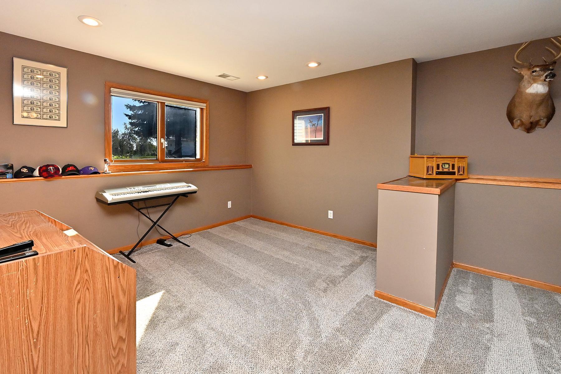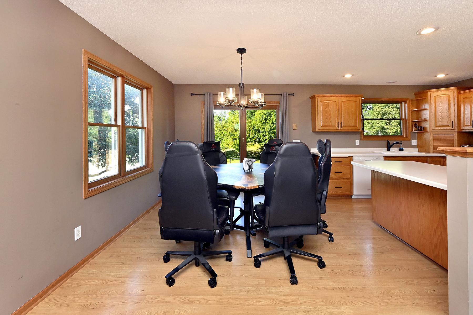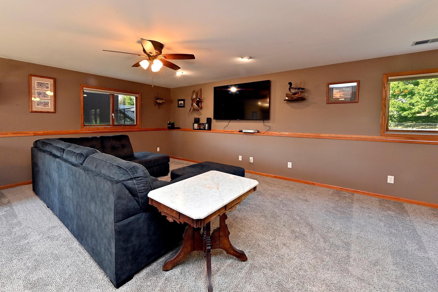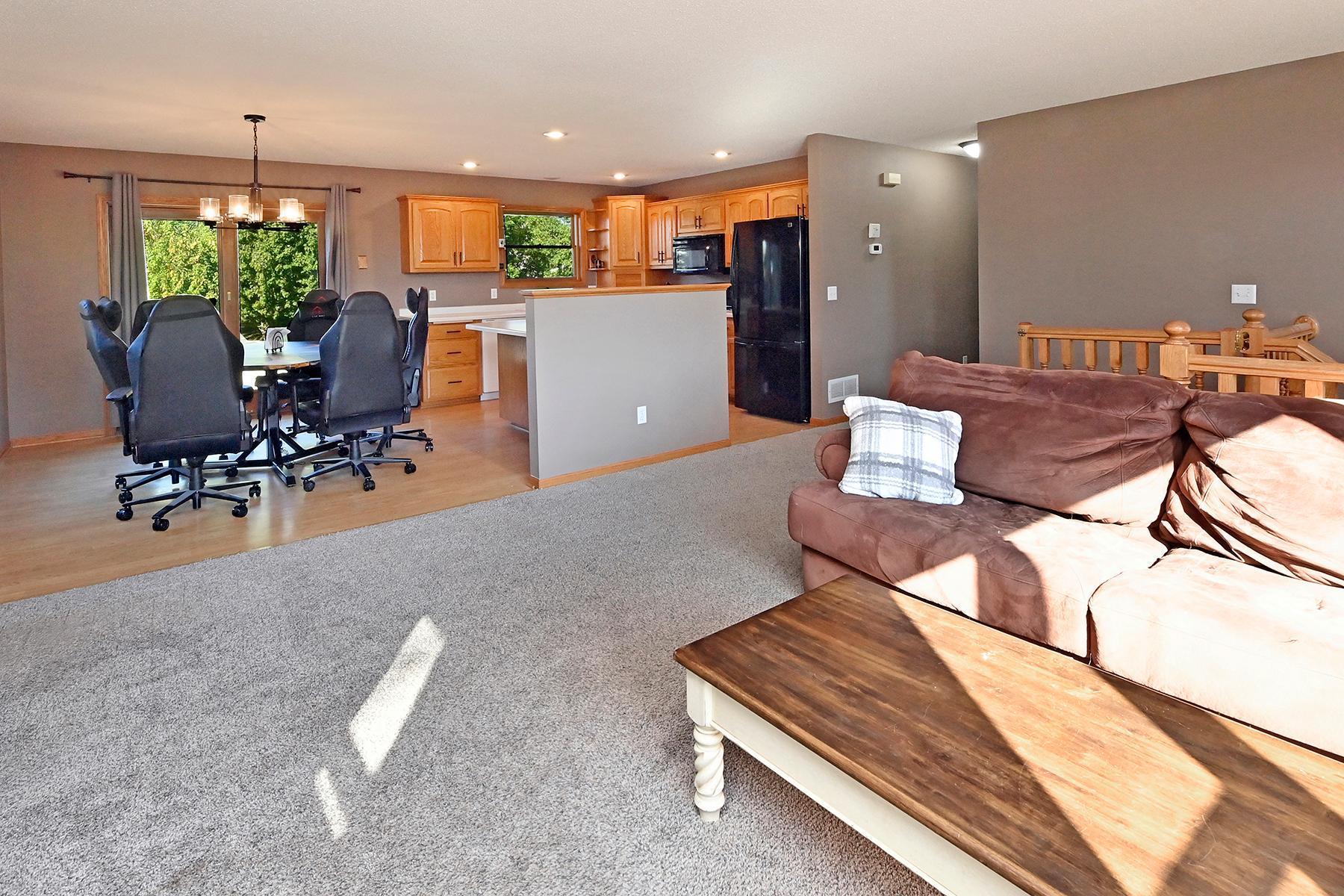 Large and open 4 bedroom 2 bath split entry with heated, attached 3 car garage, 8' door and concrete driveway. Good sized rooms throughout with daylight lower level, large family room and partial hot water in floor heat under tiled area. Nearly quarter acre level lot with black chain linked fenced rear yard. All appliances including washer, dryer, central vac, new HVAC in 2022, new roof in 2024, water softener and air exchanger included. 200 service as well.... in a quiet convenient location with easy access to freeways and downtown Howard lake.