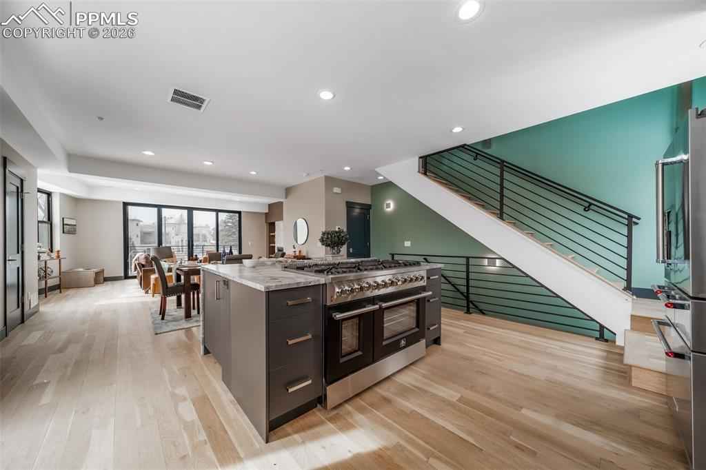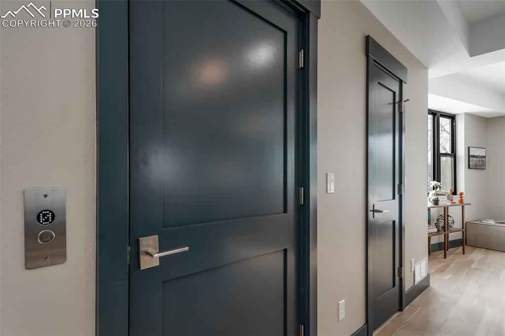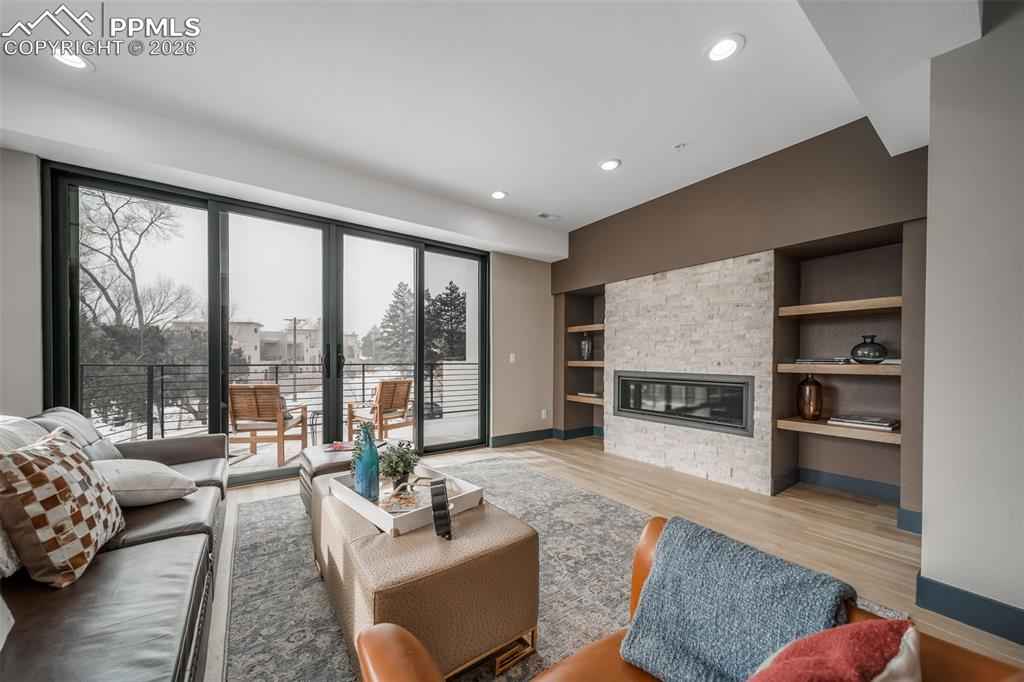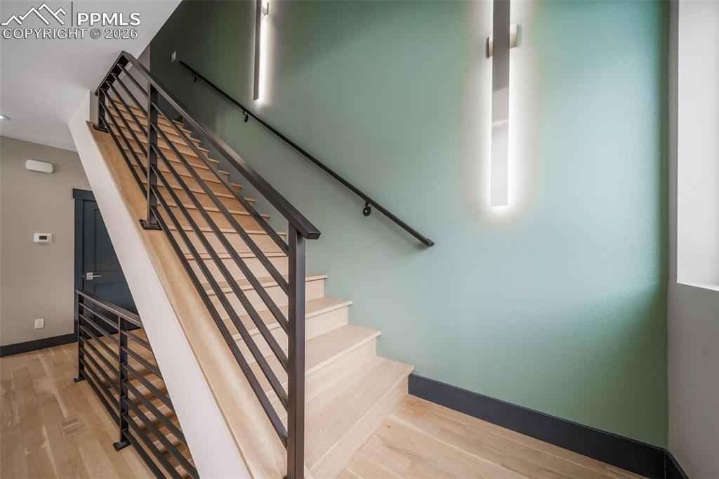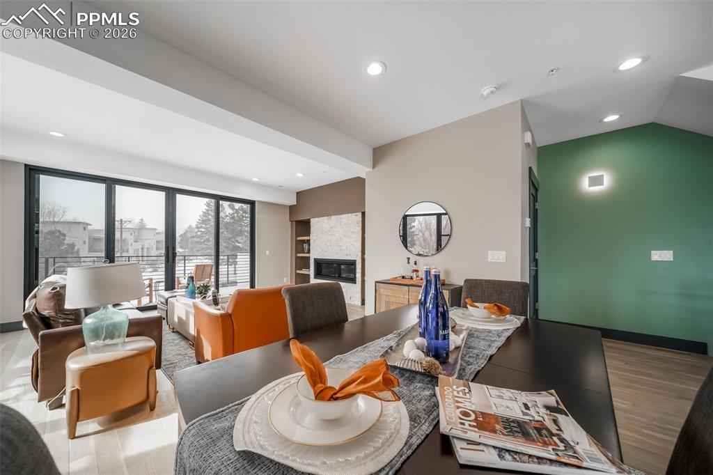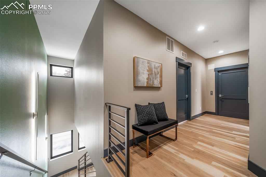 Exceptional 3-story builderx2019;s end-unit townhouse with a private in-unit elevator serving all levels, completed in 2025 and never lived in. This premier residence features the finest upgrades in the community and an ideal end-unit location offering abundant natural light, privacy, and stunning mountain viewsx2014;a rare opportunity to own the builderx2019;s showcase residence with design-forward finishes and elevator access seldom found in Manitou Springs. The open-concept great room showcases wormy maple hardwood floors, custom metal accents, and recessed LED lighting.xD;xA;The gourmet kitchen impresses with an oversized waterfall island, 8-burner FORNO double-oven range, KitchenAid stainless appliances, walk-in pantry, and sleek modern finishes. The living area features a gas fireplace, built-in shelving, oversized windows framing Pikes Peak views, and direct access to one of four private decks.xD;xA;The primary suite is a private retreat with gas fireplace, dual walk-in closets, private deck, and a spa-inspired bath with steam shower, heated floors, and smart backlit mirror. Additional bedrooms offer en-suite baths with heated floors and a jetted tub. Two-car garage, four private decks plus side patio. Ideally located minutes from downtown Manitou Springs, Old Colorado City, Garden of the Gods, and Red Rock Canyon.