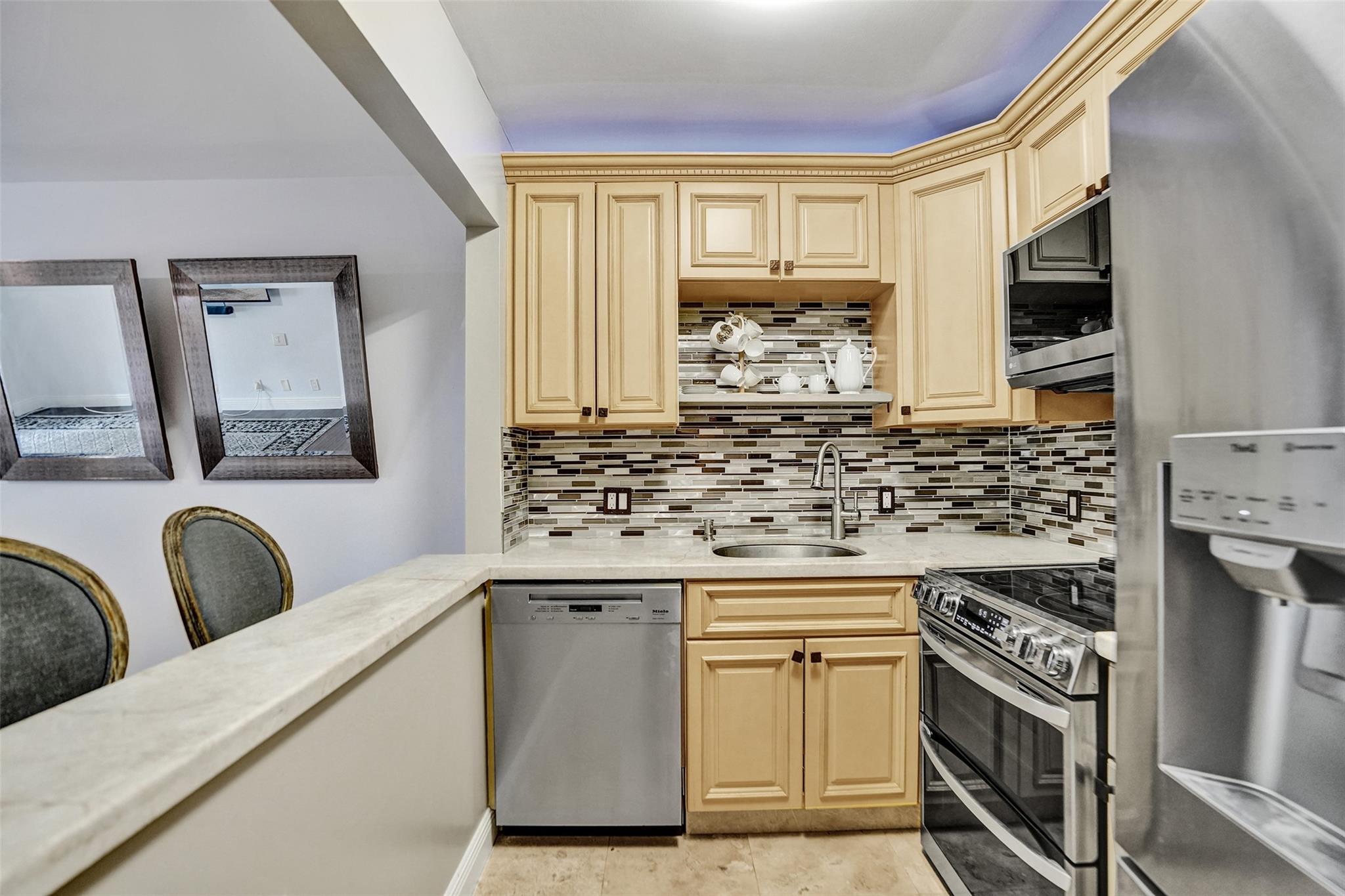 Discover this charming and upgraded 1-bed, 1-bath in the heart of South Florida's most up-and-coming city, Pompano Beach! This conveniently located 1st-floor unit offers a private entrance and includes a renovated kitchen featuring high-end stainless steel LG appliances, including a Miele dishwasher. The layout includes a large living room and primary bedroom with a generously sized walk-in closet. This condo also features an updated bathroom, impact windows, and beautiful floors throughout. The community offers access to a pool, clubhouse, BBQ area, activity paths, and more! Additional highlights include proximity to the beach and waterfront restaurants. Pompano Beach has a multitude of high-end investments in place, making this a great investment opportunity!*Furniture can be removed*