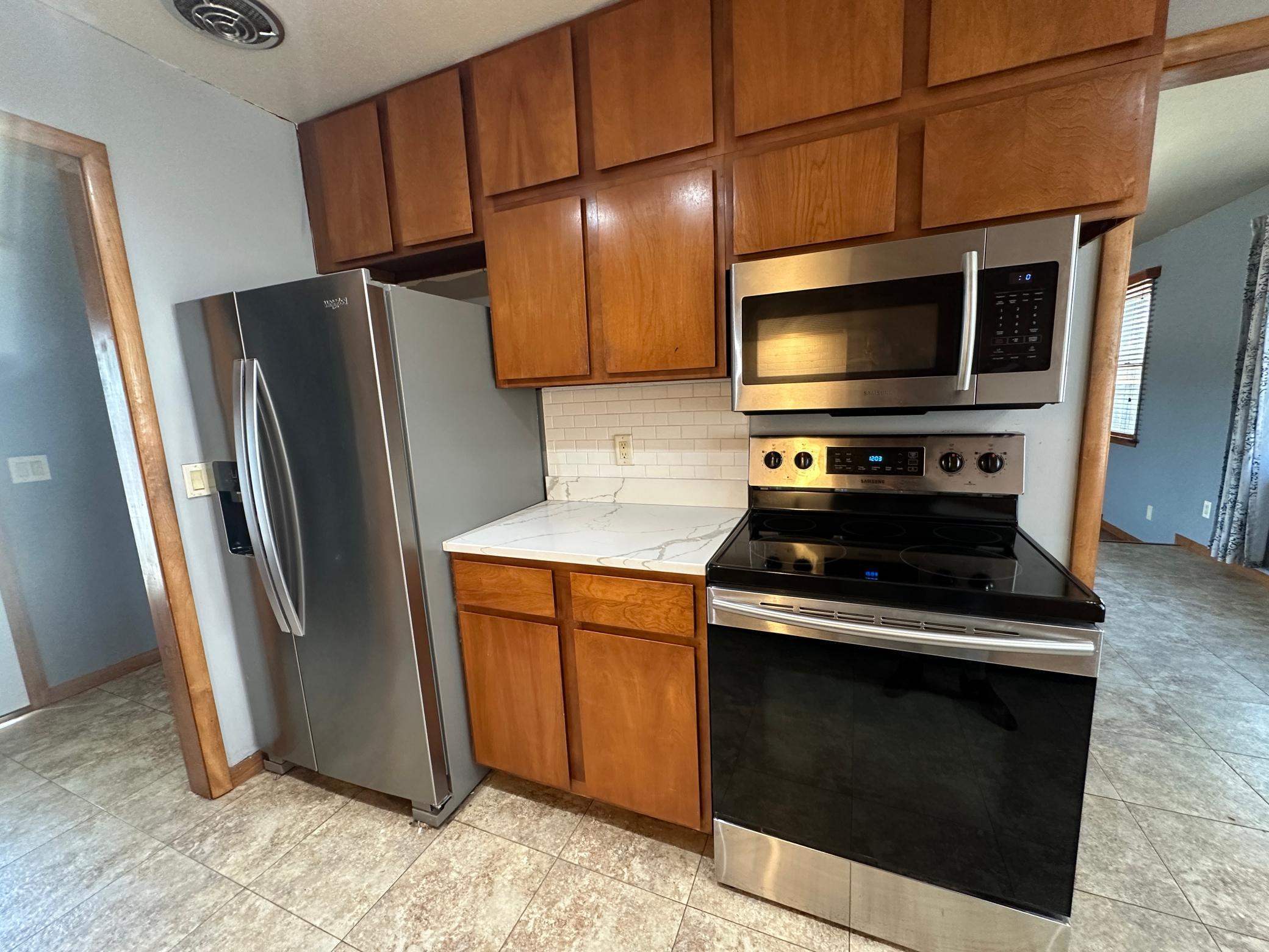 Updated 4-bedroom, 3-bath home with finished basement and numerous recent improvements. Main level offers three bedrooms, including a private primary suite with walk-in closet and bath, and a full guest bath. The kitchen features abundant cabinetry, hallway pantry, new stone countertops, tile backsplash, plus a new sink and faucet and newer stainless steel appliances. Laminate flooring throughout provides easy maintenance.The finished lower level includes a theater-style family room, fourth bedroom, and bath. Recent upgrades include new roof (2025), new sewer line to street, new sidewalk (2026), cement board siding with shake accents, and new side garage door. Radon mitigation system installed in 2016.Outdoor amenities include a front porch, spacious backyard patio, fenced yard, and 10 x 12 garden shed. Convenient location near parks and schools. Move-in ready with great space inside and out.