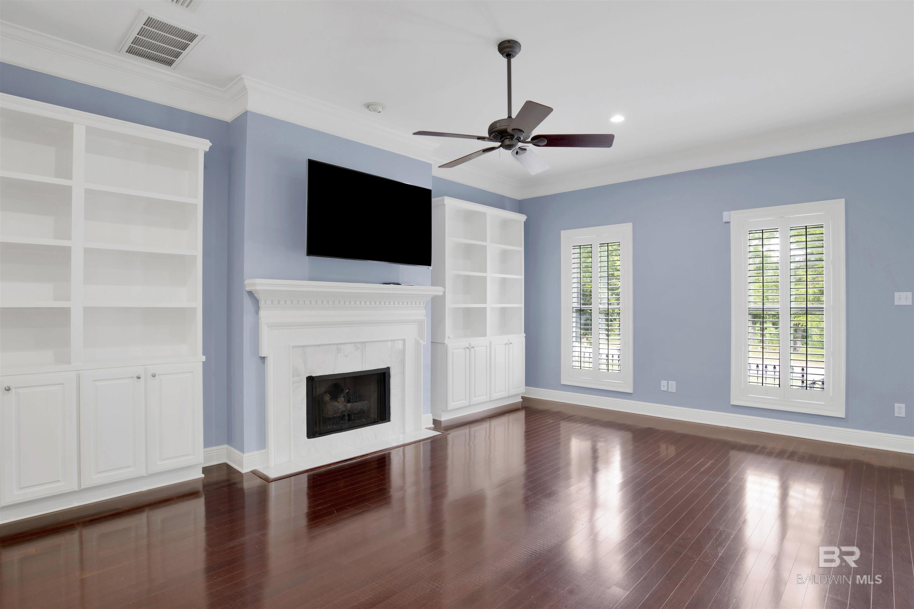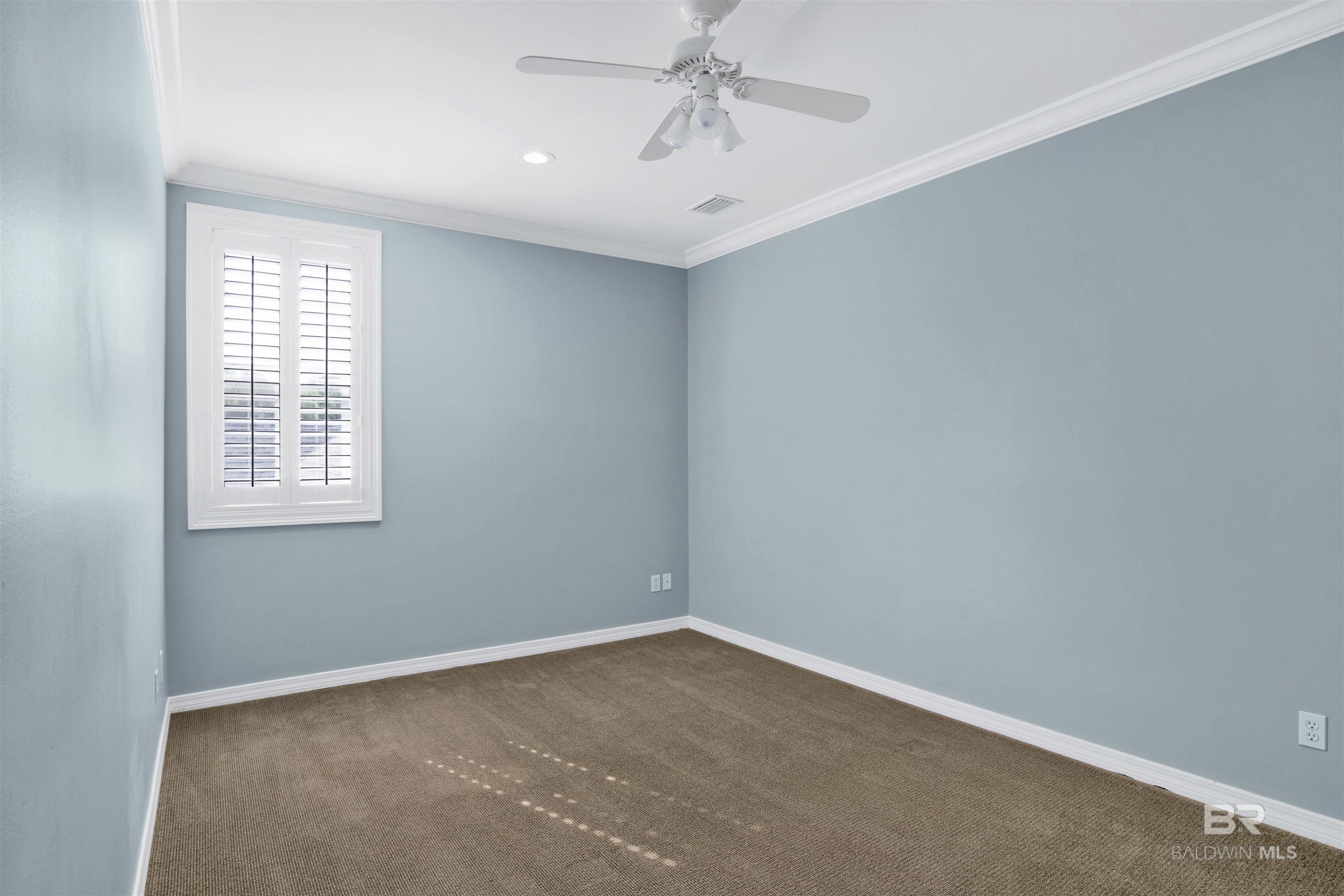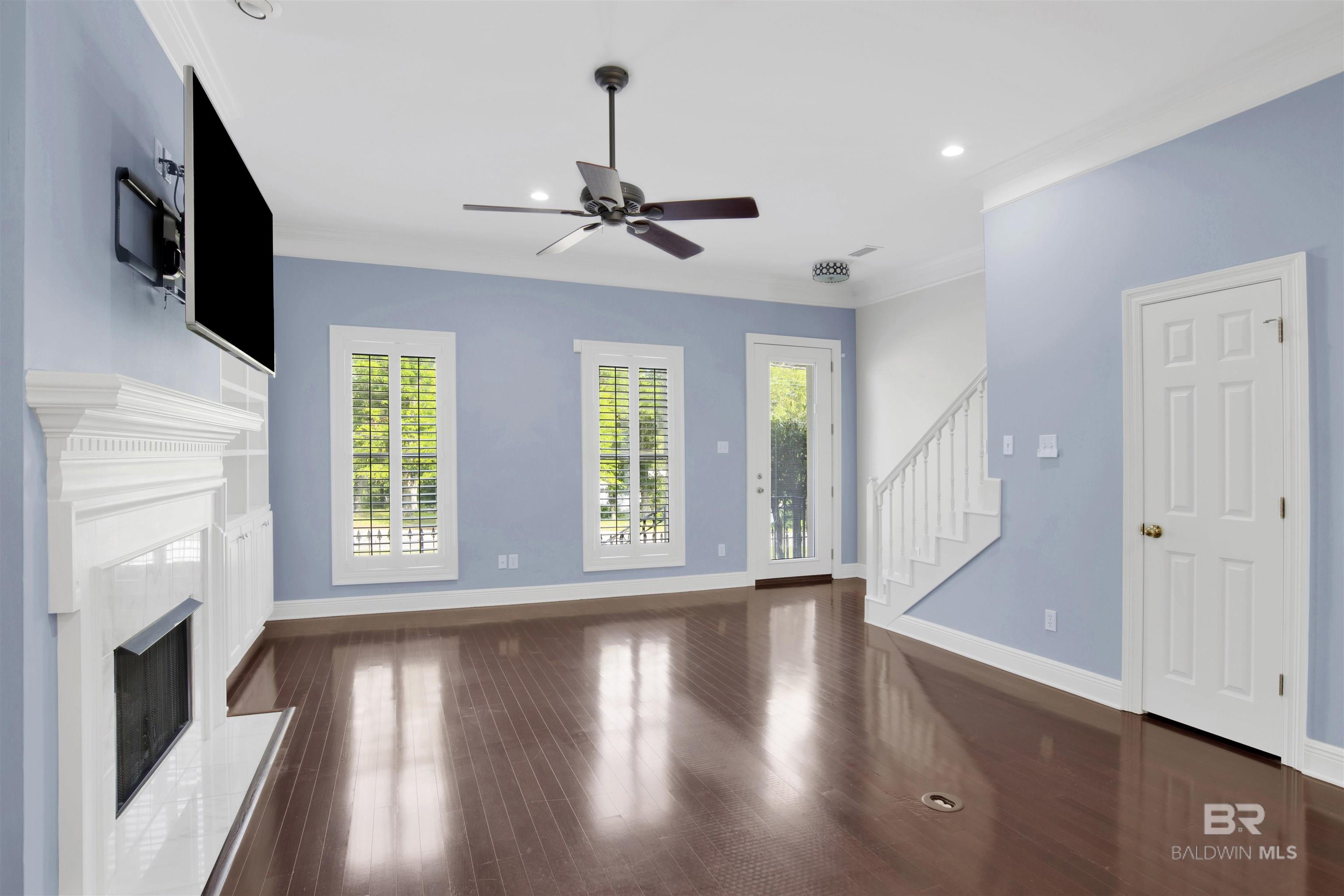 Welcome to coastal living at its finest! Enjoy views of Mobile Bay from this 3-bedroom, 2.5-bath condo with a dedicated office space, located just across from Fly Creek Marina. Located in Fairhope, just moments from the marina and convenient to shopping, dining, and local amenities! This residence offers a combination of comfort, quality, and coastal charm. Interior features include plantation shutters, crown molding throughout, a mix of hardwood and carpet flooring, and built-in cabinetry in the living room, which also features a gas fireplace for added ambiance. The kitchen is a standout with granite countertops, gas range, ample cabinet space, pantry, a small island, and breakfast bar, making it ideal for everyday functionality and hosting. The main-level suite includes French doors leading to the patio, vaulted ceilings, a large walk-in closet, and a bathroom featuring a soaking tub, walk-in tile shower, granite countertops, and white cabinetry. Upstairs, two additional bedrooms share a Jack-and-Jill bathroom, both with white cabinets, and the front bedroom includes a private balcony offering additional outdoor space. Buyer to verify all information during due diligence. All information deemed accurate but not guaranteed.