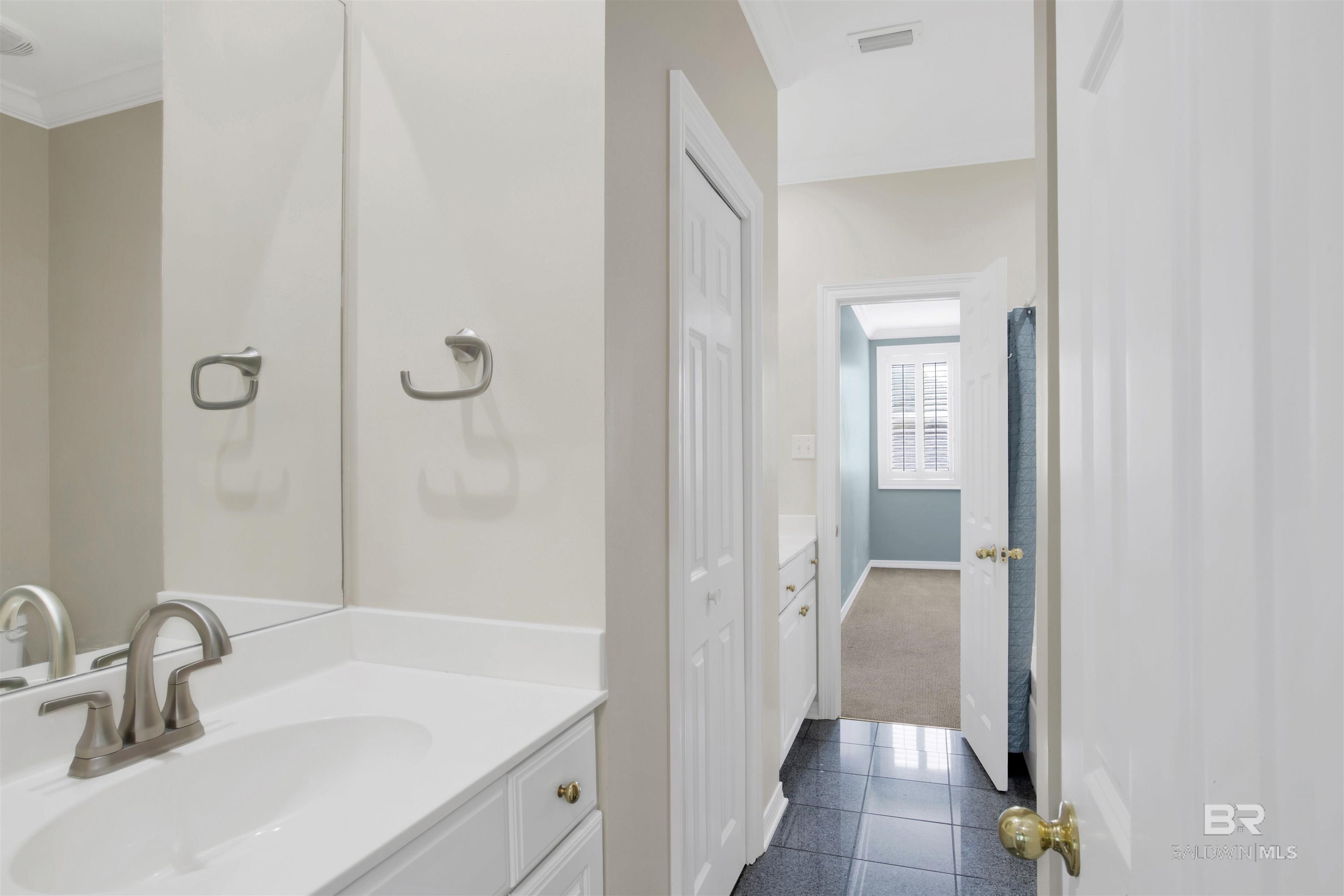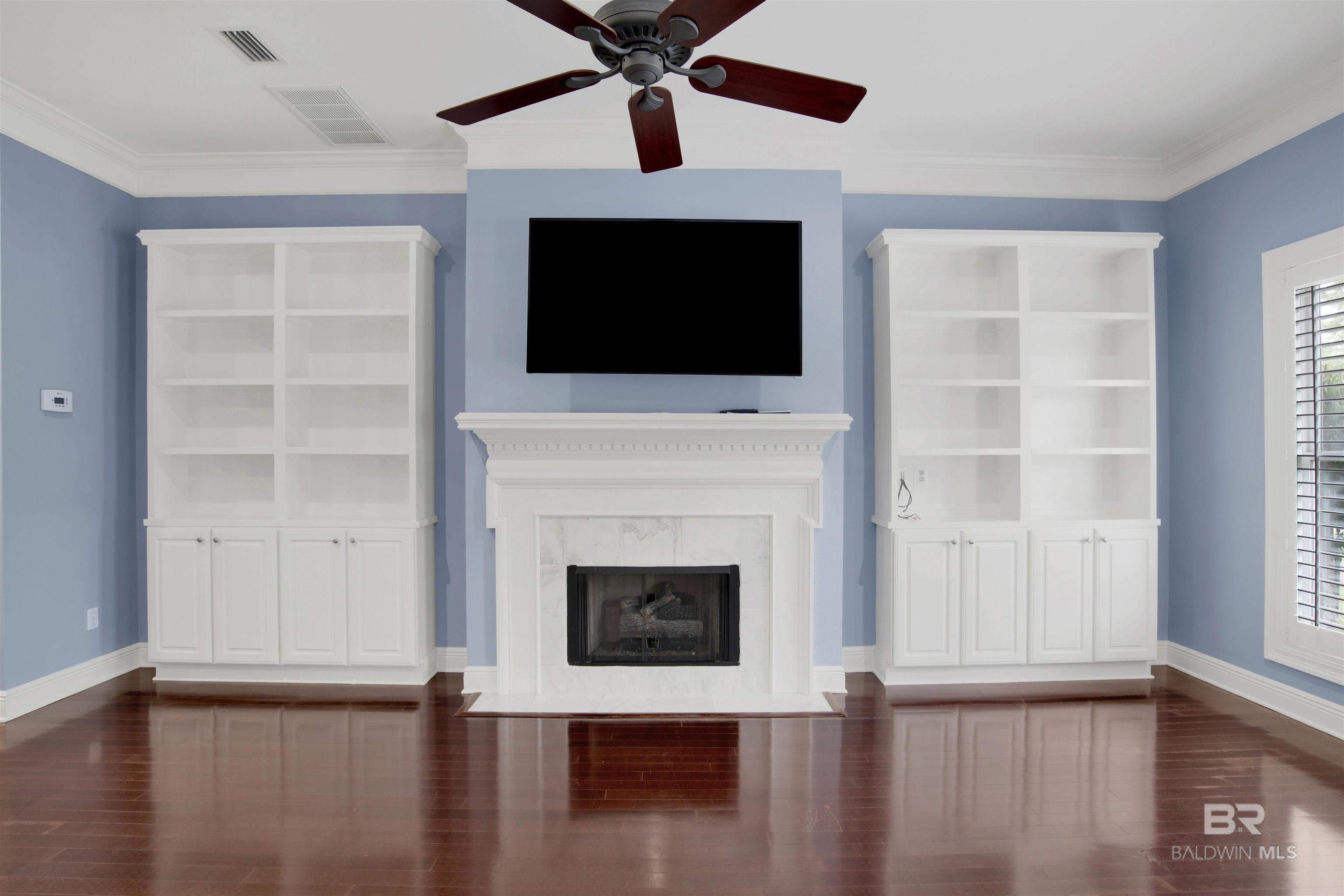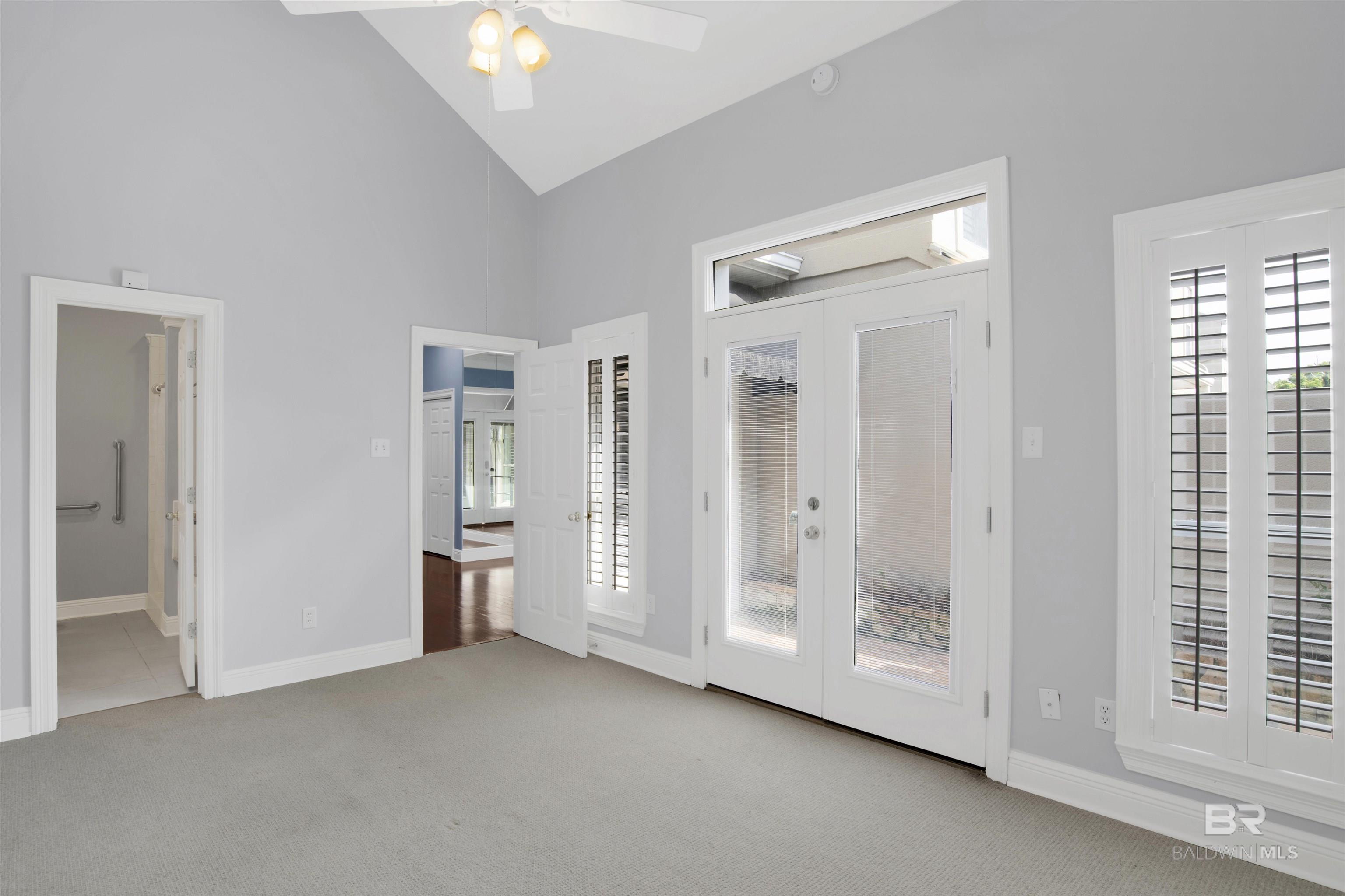 Welcome to coastal living at its finest! Enjoy views of Mobile Bay from this 3-bedroom, 2.5-bath condo with a dedicated office space, located just across from Fly Creek Marina. Located in Fairhope, just moments from the marina and convenient to shopping, dining, and local amenities! This residence offers a combination of comfort, quality, and coastal charm. Interior features include plantation shutters, crown molding throughout, a mix of hardwood and carpet flooring, and built-in cabinetry in the living room, which also features a gas fireplace for added ambiance. The kitchen is a standout with granite countertops, gas range, ample cabinet space, pantry, a small island, and breakfast bar, making it ideal for everyday functionality and hosting. The main-level suite includes French doors leading to the patio, vaulted ceilings, a large walk-in closet, and a bathroom featuring a soaking tub, walk-in tile shower, granite countertops, and white cabinetry. Upstairs, two additional bedrooms share a Jack-and-Jill bathroom, both with white cabinets, and the front bedroom includes a private balcony offering additional outdoor space. Buyer to verify all information during due diligence. All information deemed accurate but not guaranteed.