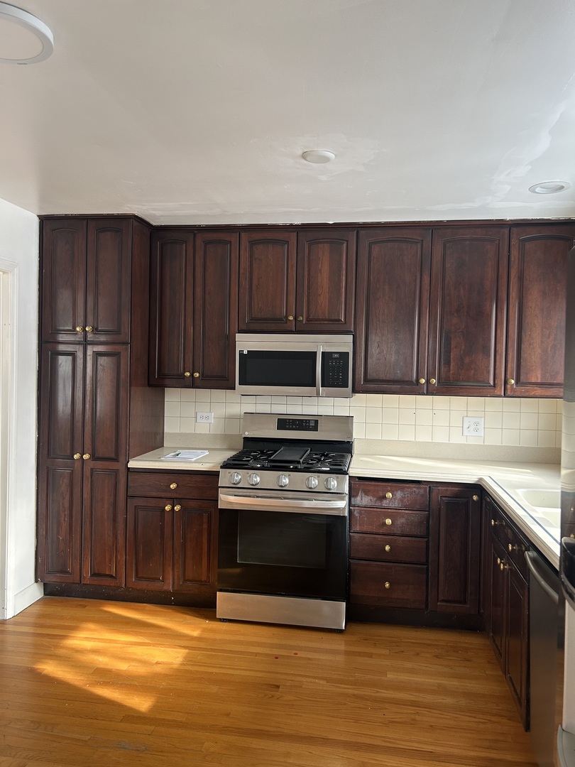 Spacious home featuring a beautiful kitchen, long concrete driveway, and two-car garage. Enjoy a fully fenced yard and a convenient location near public transportation, the library, and post office. Just minutes from major highways and shopping. Freshly painted throughout with brand-new microwave, stove, and dishwasher. New flooring and modern light fixtures recently installed. New windows will be added as weather permits, with a new roof and gutters scheduled for replacement.