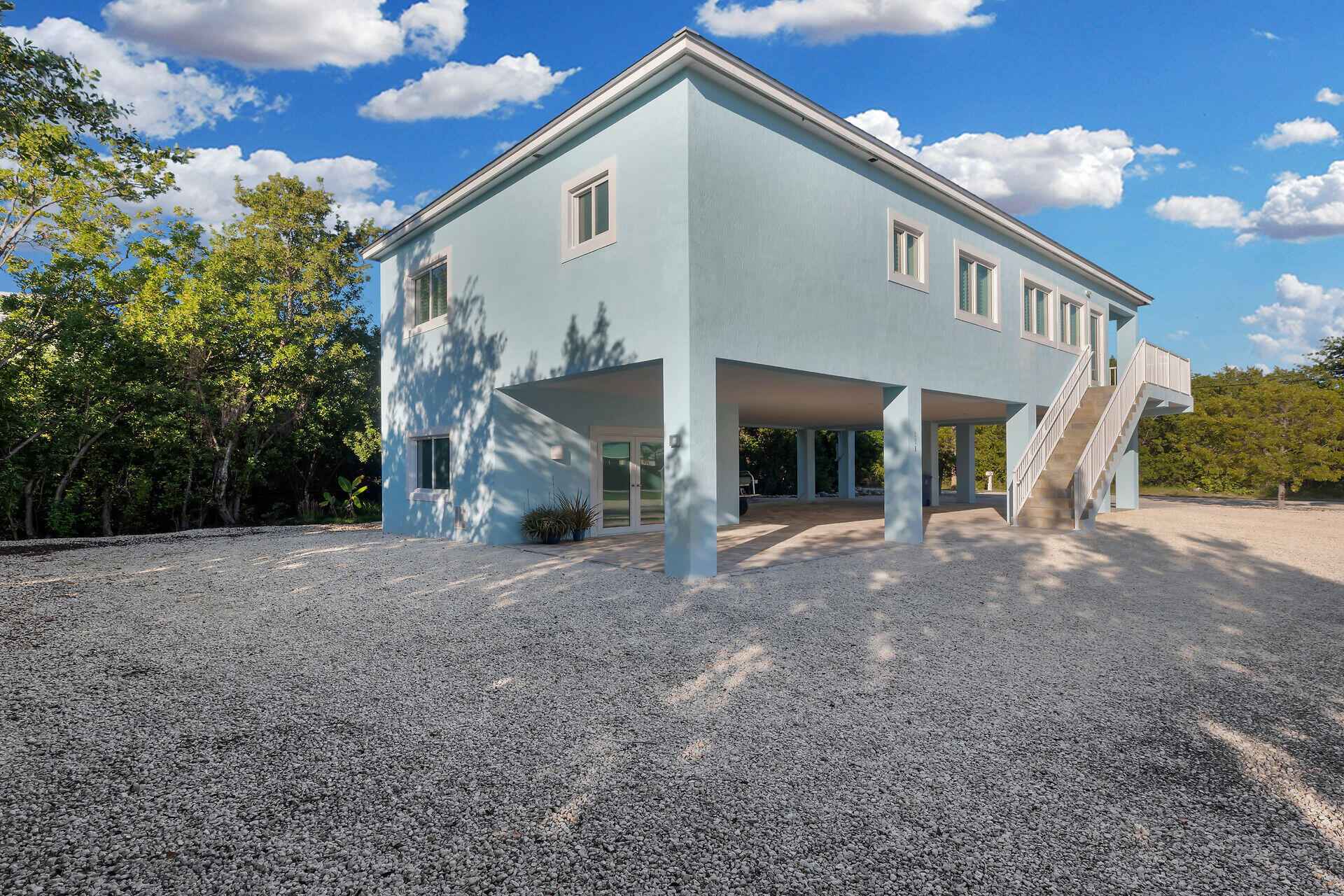 Perfectly positioned on a prime corner lot directly across from Club Duck Key, this newer-construction residence delivers a refined blend of contemporary design, quality craftsmanship, and relaxed island living. Built in 2021 with elevated CBS construction, a metal roof, and full impact windows and doors, the home offers both elegance and peace of mind in one of Duck Key's most desirable neighborhoods.Nearly 1,500 square feet of thoughtfully designed living space showcases soaring nine-foot ceilings, cove architectural details, recessed lighting, engineered laminate flooring, and crisp plantation shutters. The open-concept layout is anchored by a designer kitchen featuring quartz countertops, a statement island, white soft-close cabinetry, glass tile backsplash, and stainless appliances--ideal for entertaining and everyday living.The primary suite is a private retreat with a spa-style bath, soaking tub, dual vanities, and walk-in closet. Two additional bedrooms and a beautifully appointed guest bath provide comfort and flexibility. A dedicated laundry room with utility sink, cabinetry, beverage refrigerator, and instant hot water enhances convenience.Outdoor living impresses with an expansive covered carport, brick pavers, large enclosed storage room, and a covered tiled balcony perfect for morning coffee or sunset entertaining. Just steps from Club Duck Key with optional membership, enjoy access to a resort-style heated and chilled pool, hot tub, tennis, pickleball and basketball courts, marinas, dining, and a golf-cart-friendly lifestyle.