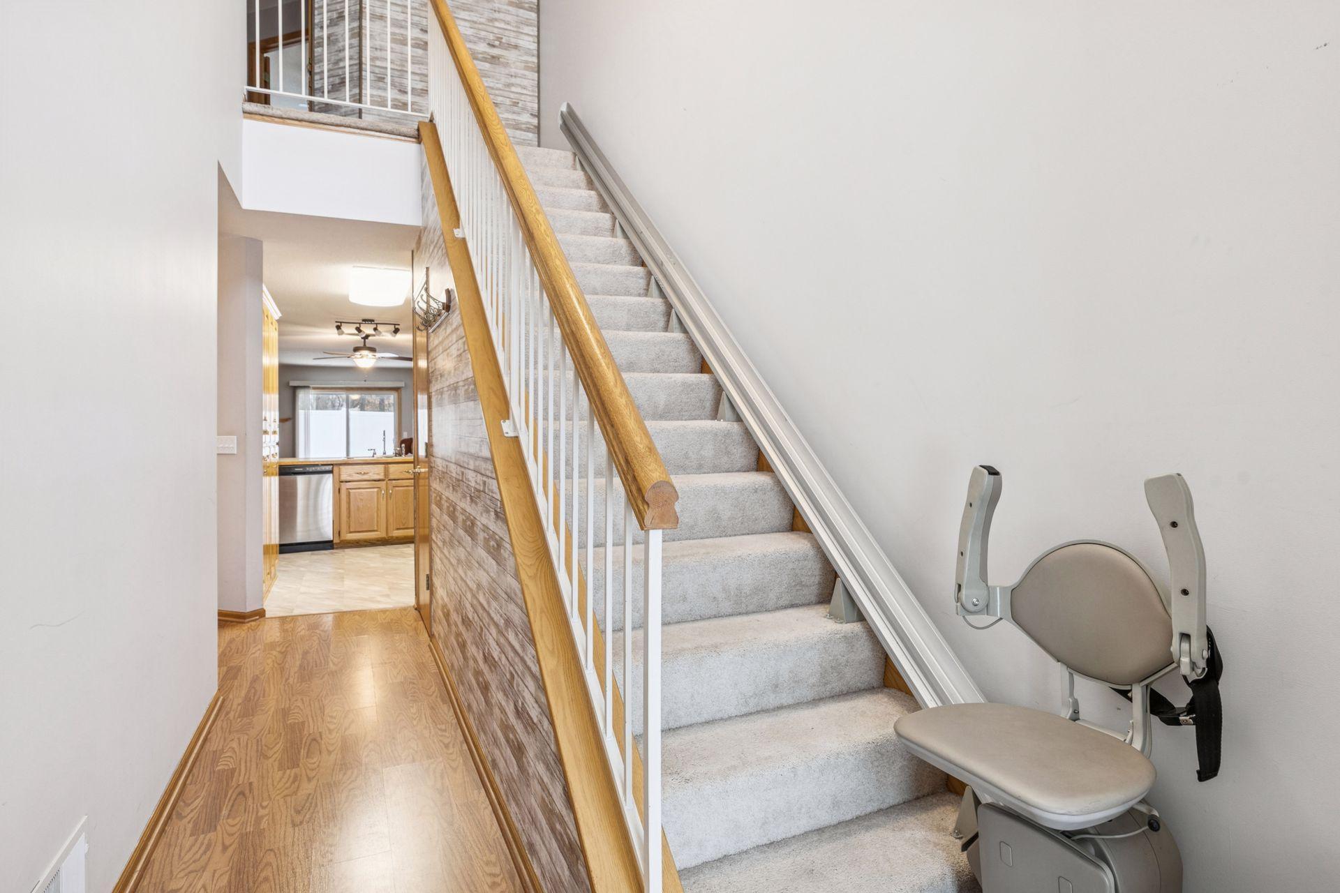 Welcome to 1012 18th Ave SE in Forest Lake, a peaceful and well-kept 55+ townhome community close to everything the area offers. Enjoy bright, spacious main-level living featuring a comfortable living room with a gas fireplace and a sliding door that opens to your private patio. The main-floor primary suite includes a walk-in closet and a full bathroom with a therapeutic walk-in tub, enhanced with lighting and audio. A convenient stair chair lift leads to the upper level, where you'll find three additional bedrooms, large closets, and a full bathroom. With abundant storage, thoughtful features, and a fantastic Forest Lake location near shopping, restaurants, healthcare, and lake access, this townhome offers comfort, convenience, and space in a welcoming community. Come see how easy life can be here!