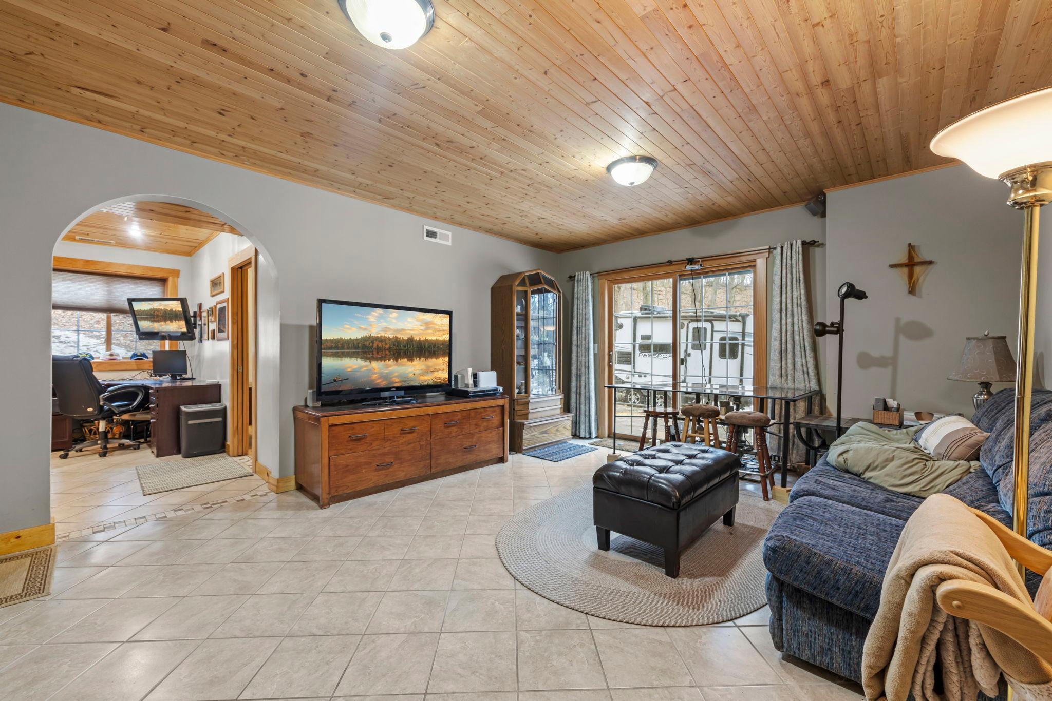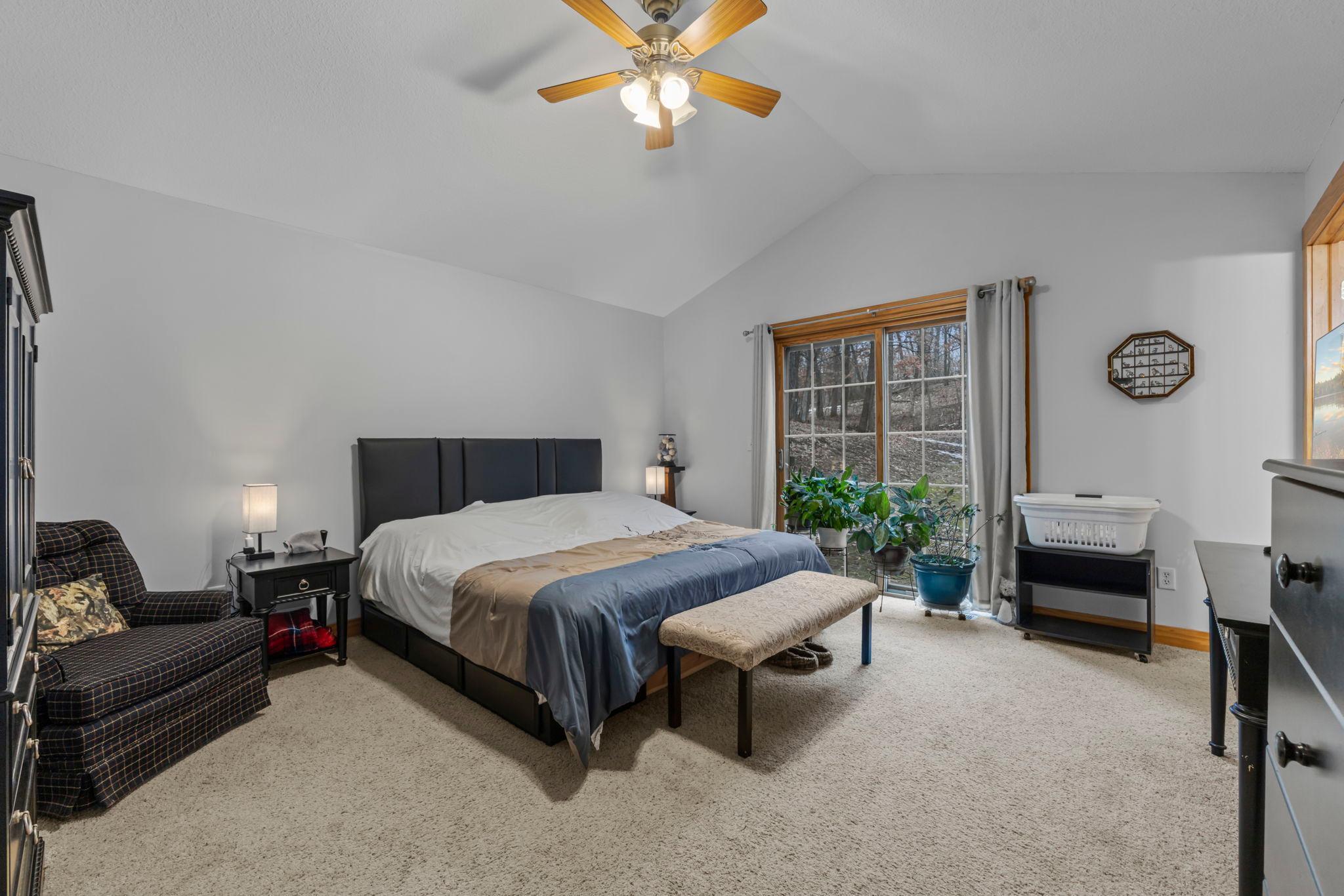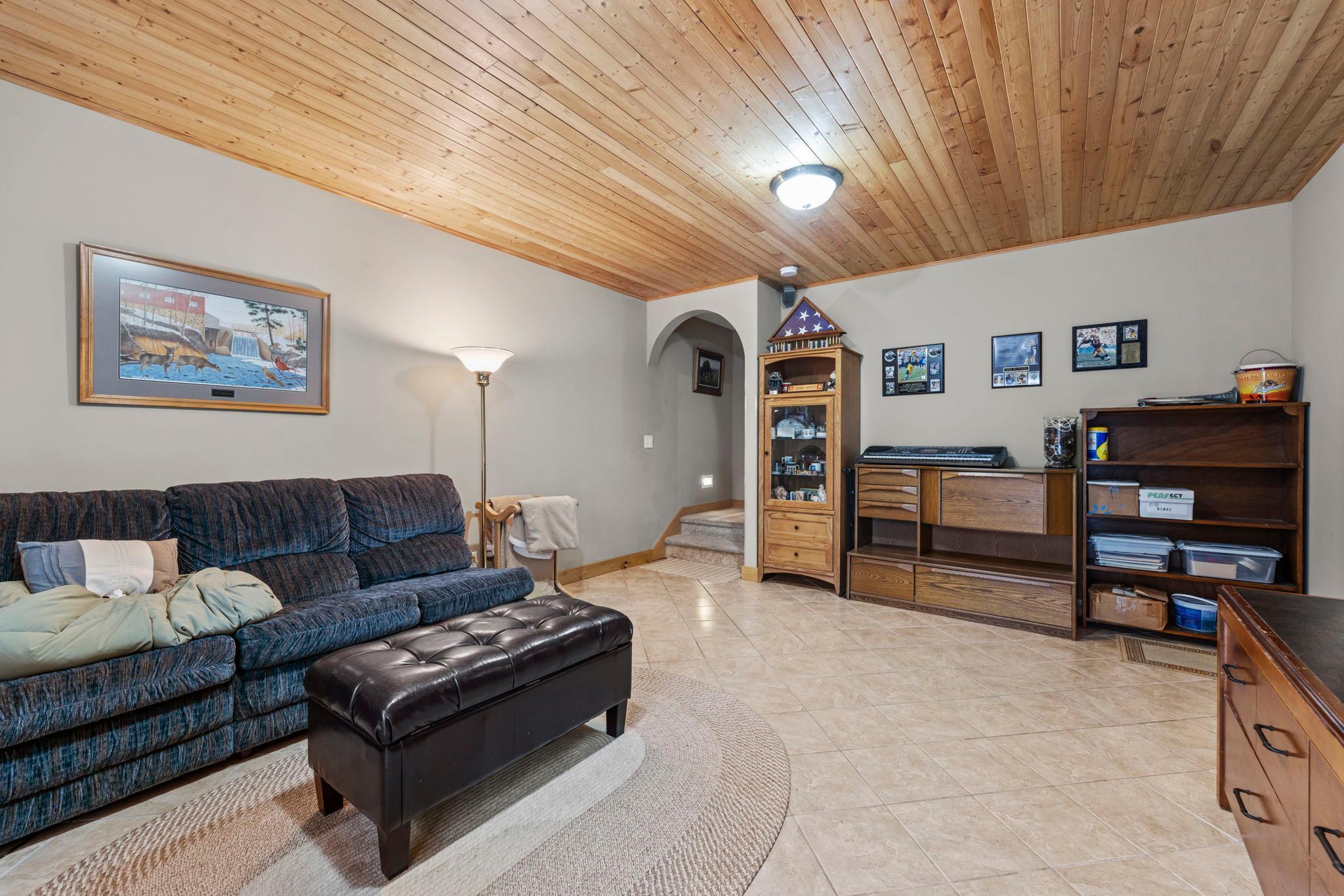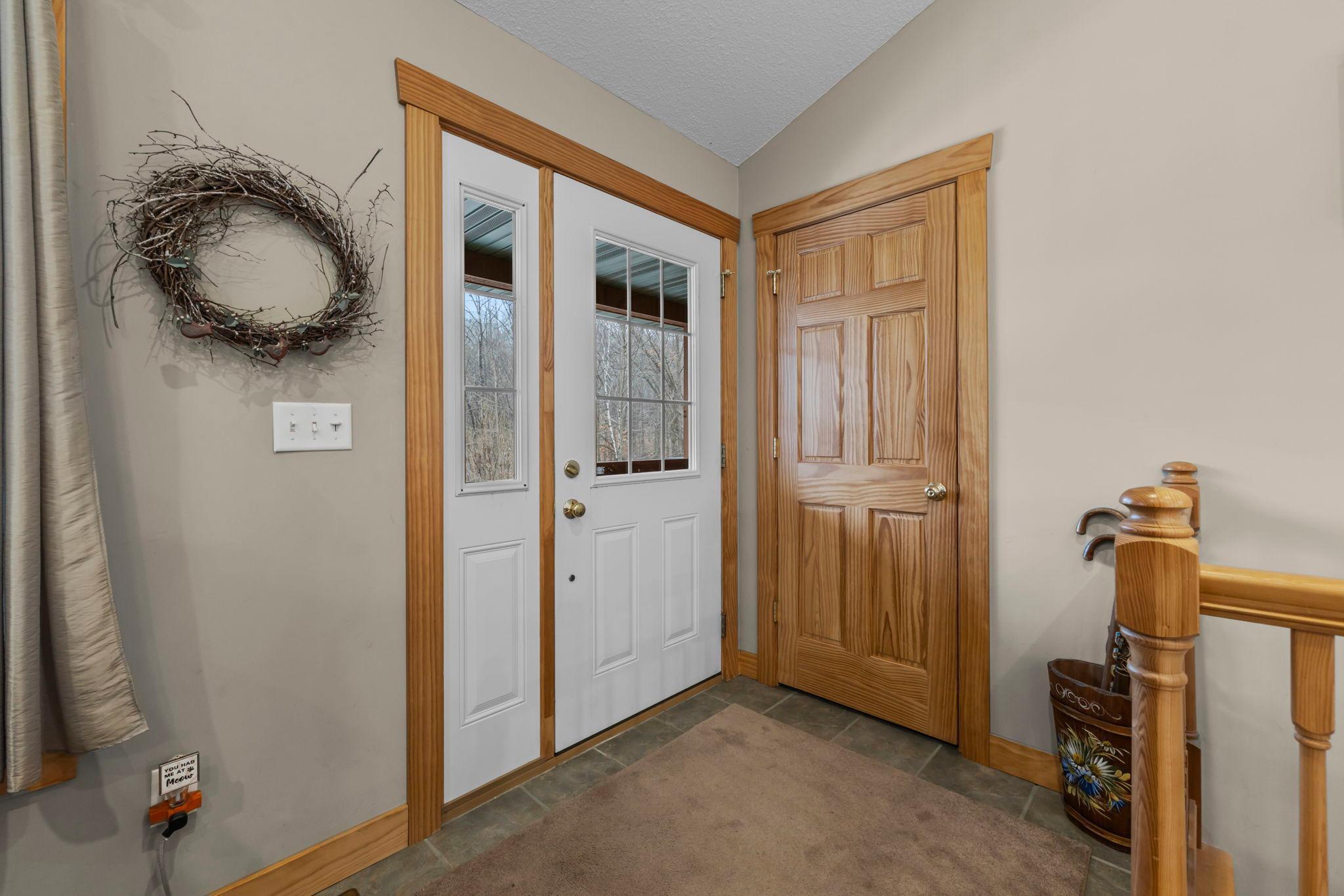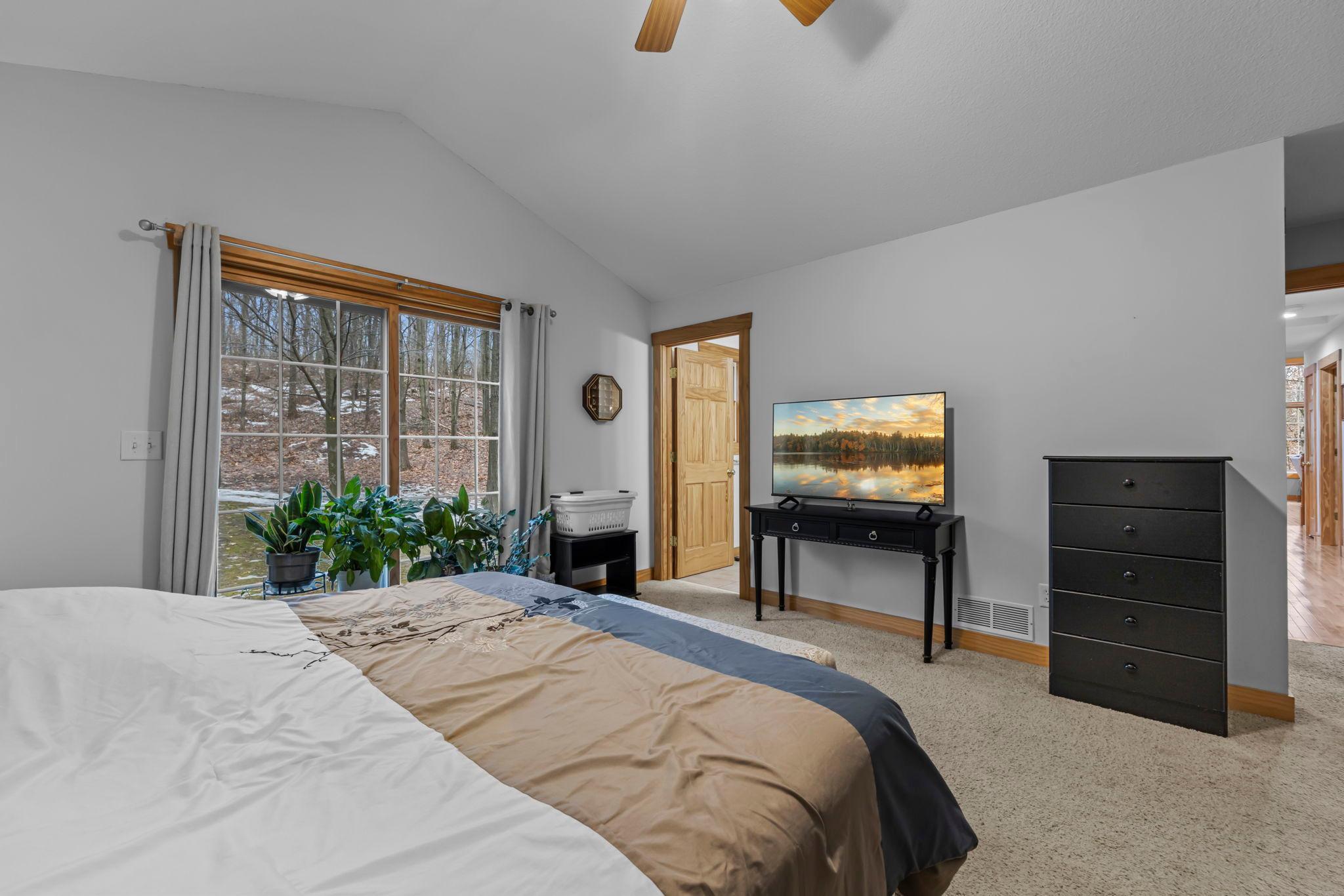 Tucked at the end of a private road, this peaceful country home located on 2 acres offers the perfect blend of privacy, nature, and comfort. Surrounded by mature trees and abundant wildlife, youll enjoy regular visits from deer, pheasant, squirrels, and songbirds, creating a truly serene setting. The inviting front porch is a perfect spot to enjoy morning coffee while taking in the quiet surroundings. Inside, the home features a beautiful open-concept layout with a vaulted ceiling and large windows that fill the living, dining, and kitchen areas with natural light. The kitchen is highlighted by lovely hickory cabinetry and flows seamlessly into the main living spaces, ideal for everyday living and entertaining. The main floor has two bedrooms, including a private owners suite with a walk-in closet and its own bathroom, along with convenient main-floor laundry. The finished lower level expands your living space with a comfortable family room featuring a walk-out patio door, a third bedroom, full bathroom, office space, and additional storage room. The attached 2-car garage is insulated. Major updates including a new roof in 2025, freshly stained cedar siding in 2025, plus newer appliances, AC and furnace in the past 5 years. Nature lovers will appreciate that DNR land adjoins the back of the property, offering direct access to a path leading to the renowned Ice Age Trail, perfect for hiking and enjoying the outdoors. Offering privacy, modern comforts, and a stunning natural setting while still being close to town, this property is truly atreasure. See 3D walk-through video and drone video!