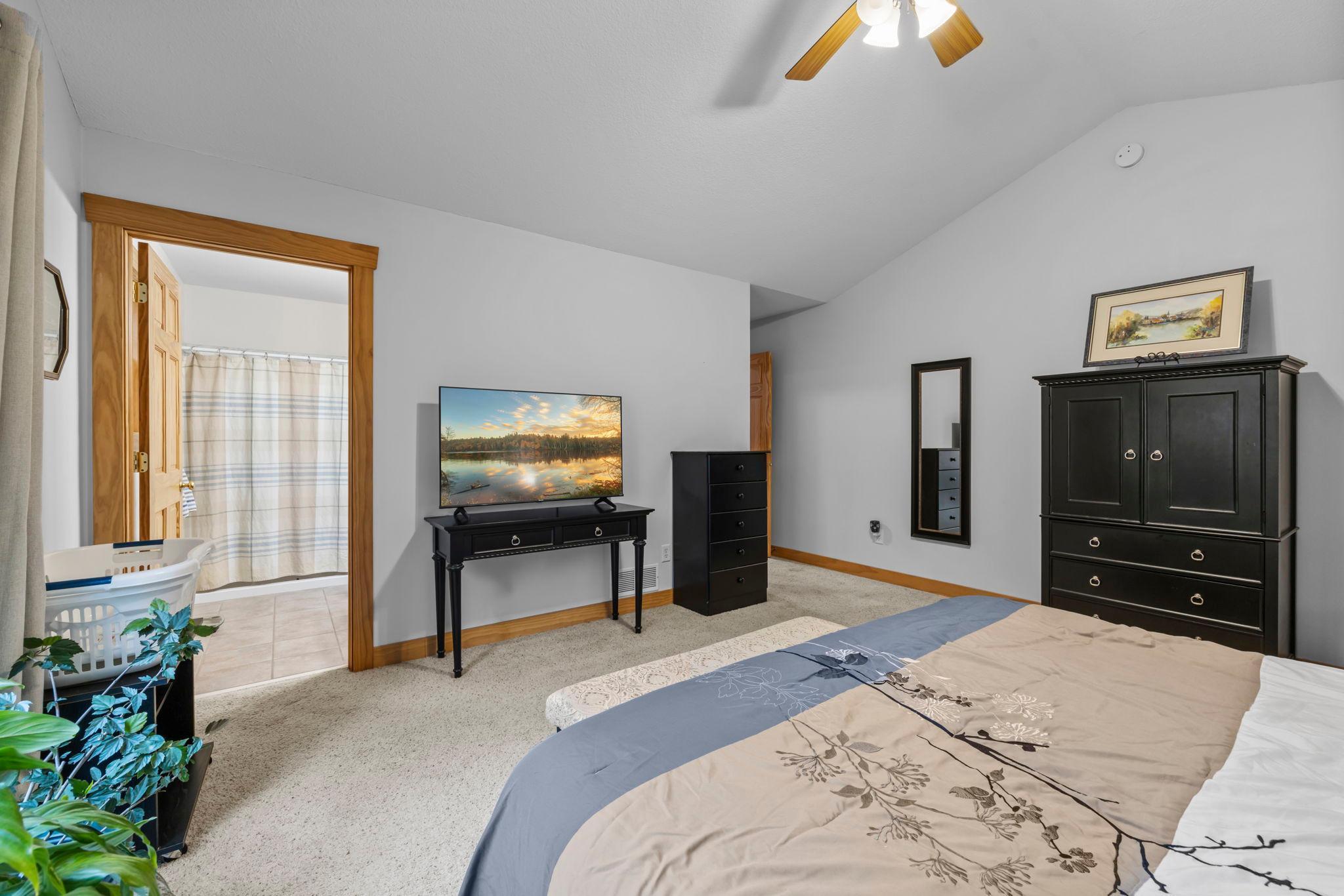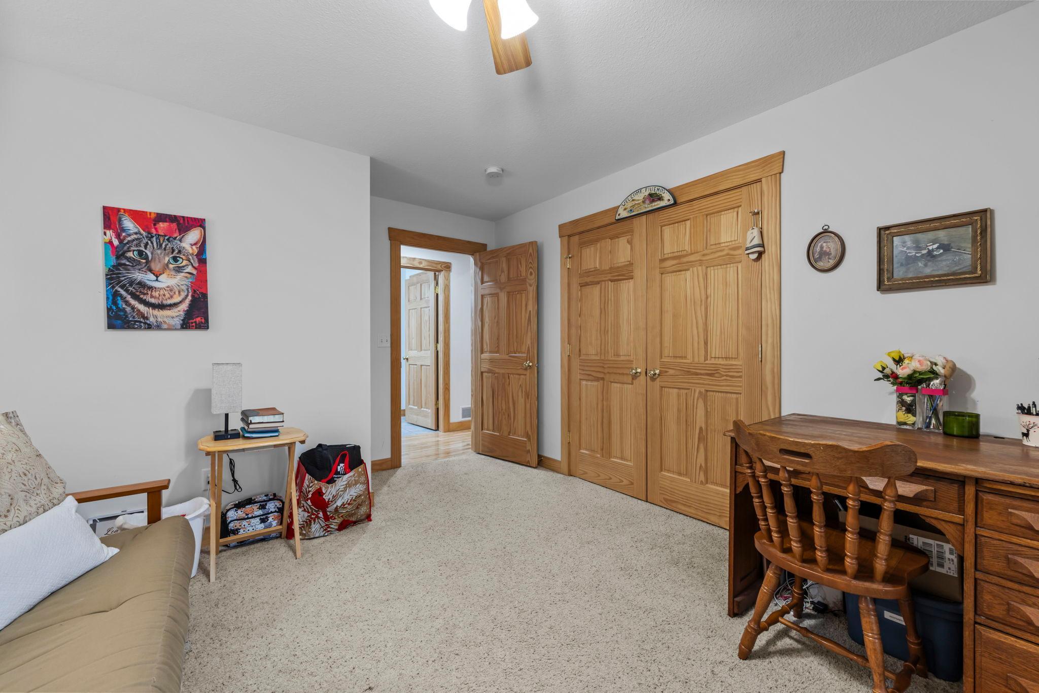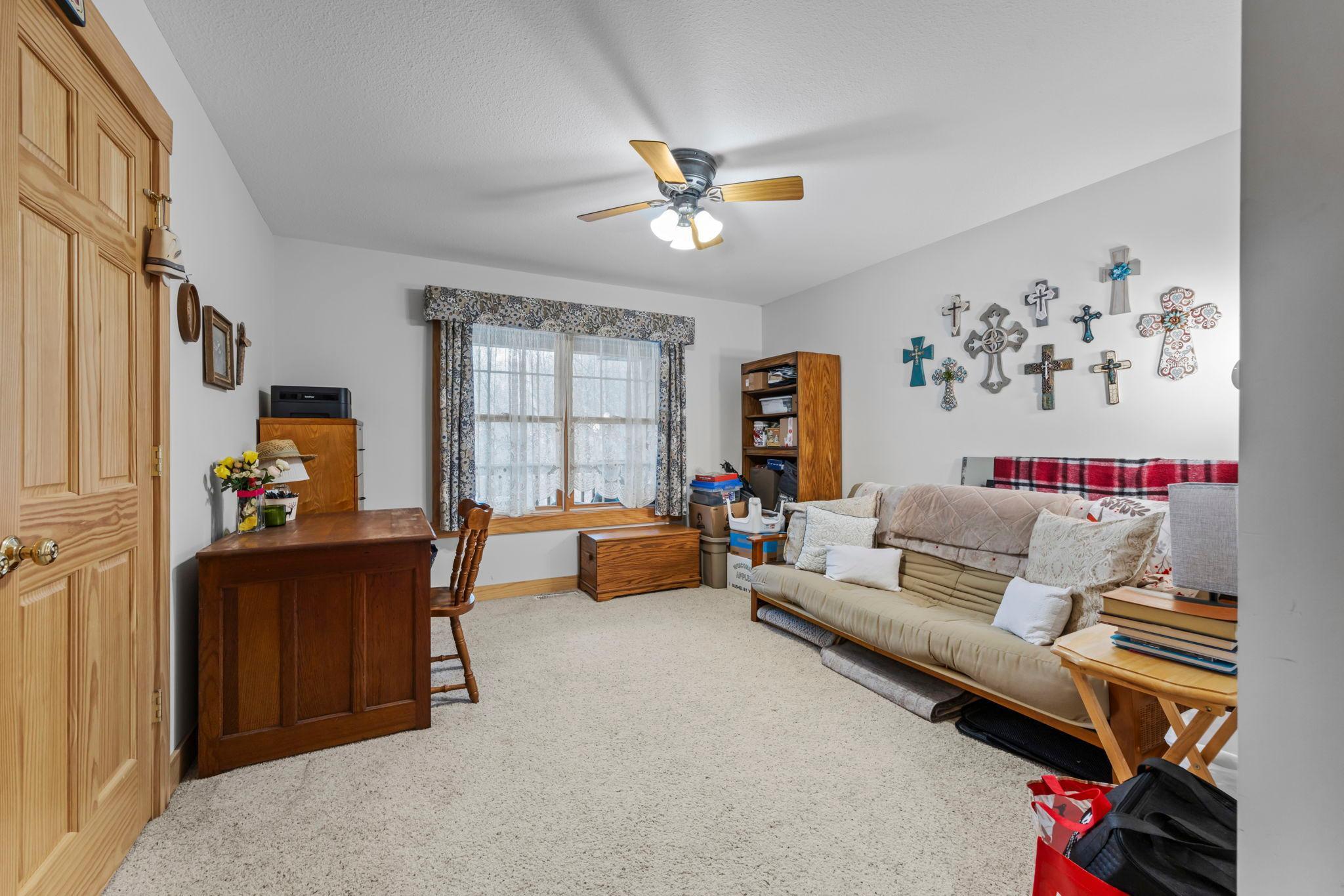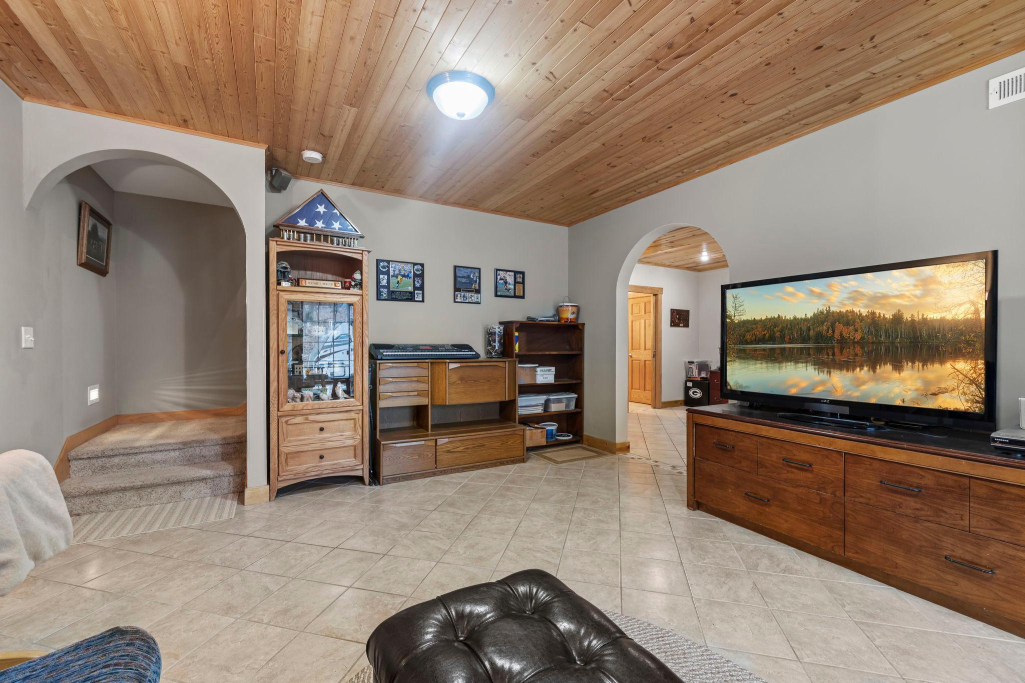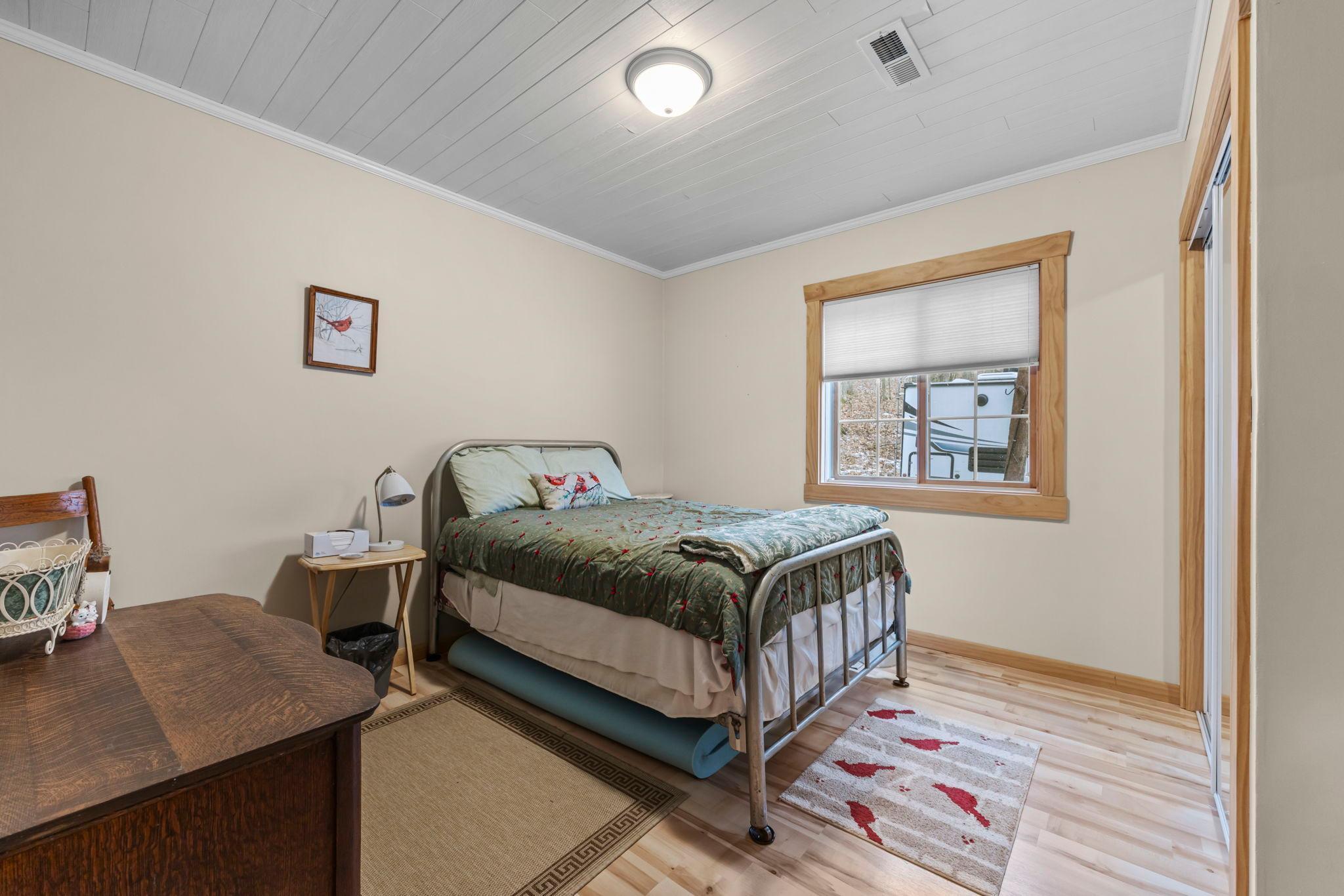 Tucked at the end of a private road, this peaceful country home located on 2 acres offers the perfect blend of privacy, nature, and comfort. Surrounded by mature trees and abundant wildlife, youll enjoy regular visits from deer, pheasant, squirrels, and songbirds, creating a truly serene setting. The inviting front porch is a perfect spot to enjoy morning coffee while taking in the quiet surroundings. Inside, the home features a beautiful open-concept layout with a vaulted ceiling and large windows that fill the living, dining, and kitchen areas with natural light. The kitchen is highlighted by lovely hickory cabinetry and flows seamlessly into the main living spaces, ideal for everyday living and entertaining. The main floor has two bedrooms, including a private owners suite with a walk-in closet and its own bathroom, along with convenient main-floor laundry. The finished lower level expands your living space with a comfortable family room featuring a walk-out patio door, a third bedroom, full bathroom, office space, and additional storage room. The attached 2-car garage is insulated. Major updates including a new roof in 2025, freshly stained cedar siding in 2025, plus newer appliances, AC and furnace in the past 5 years. Nature lovers will appreciate that DNR land adjoins the back of the property, offering direct access to a path leading to the renowned Ice Age Trail, perfect for hiking and enjoying the outdoors. Offering privacy, modern comforts, and a stunning natural setting while still being close to town, this property is truly atreasure. See 3D walk-through video and drone video!