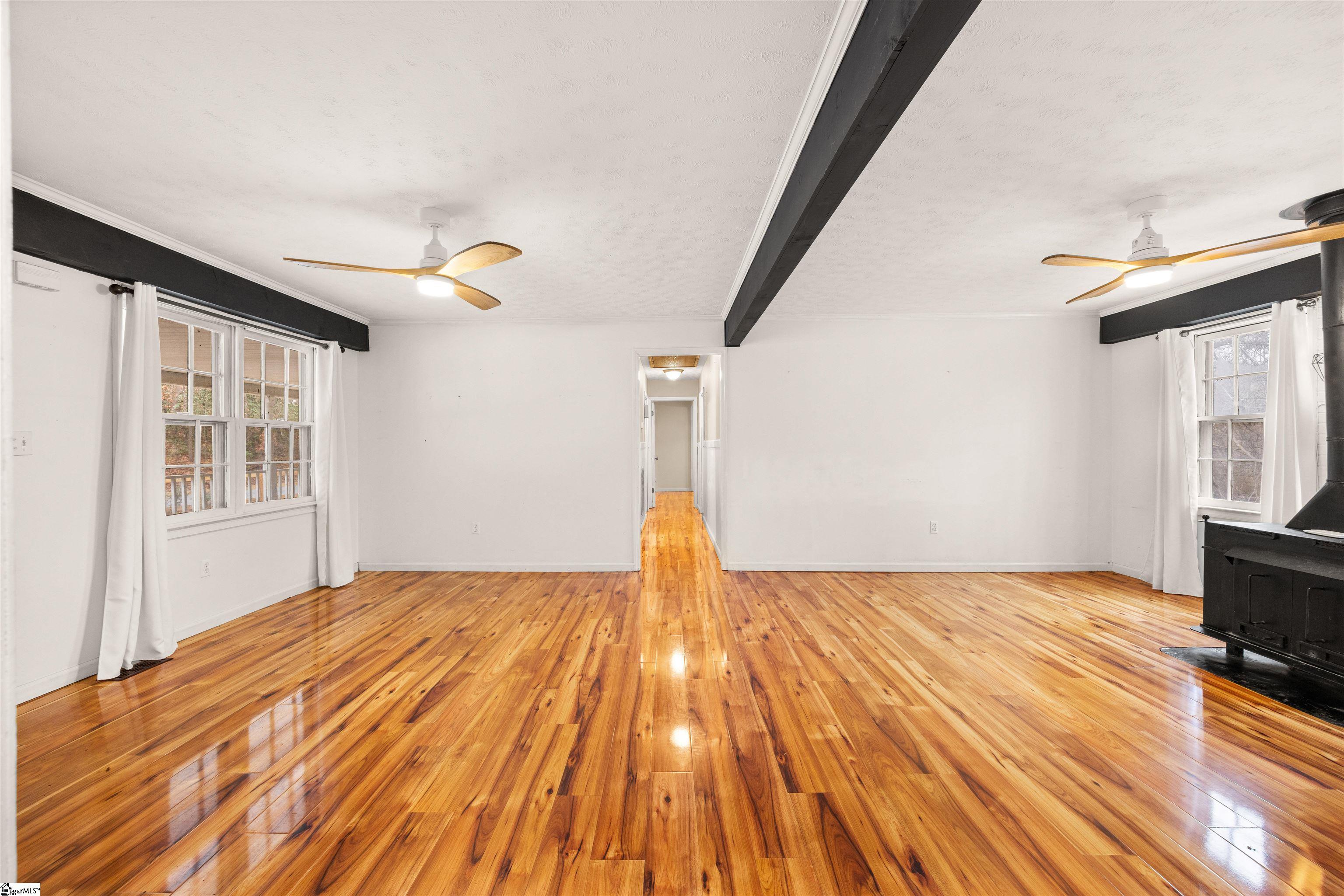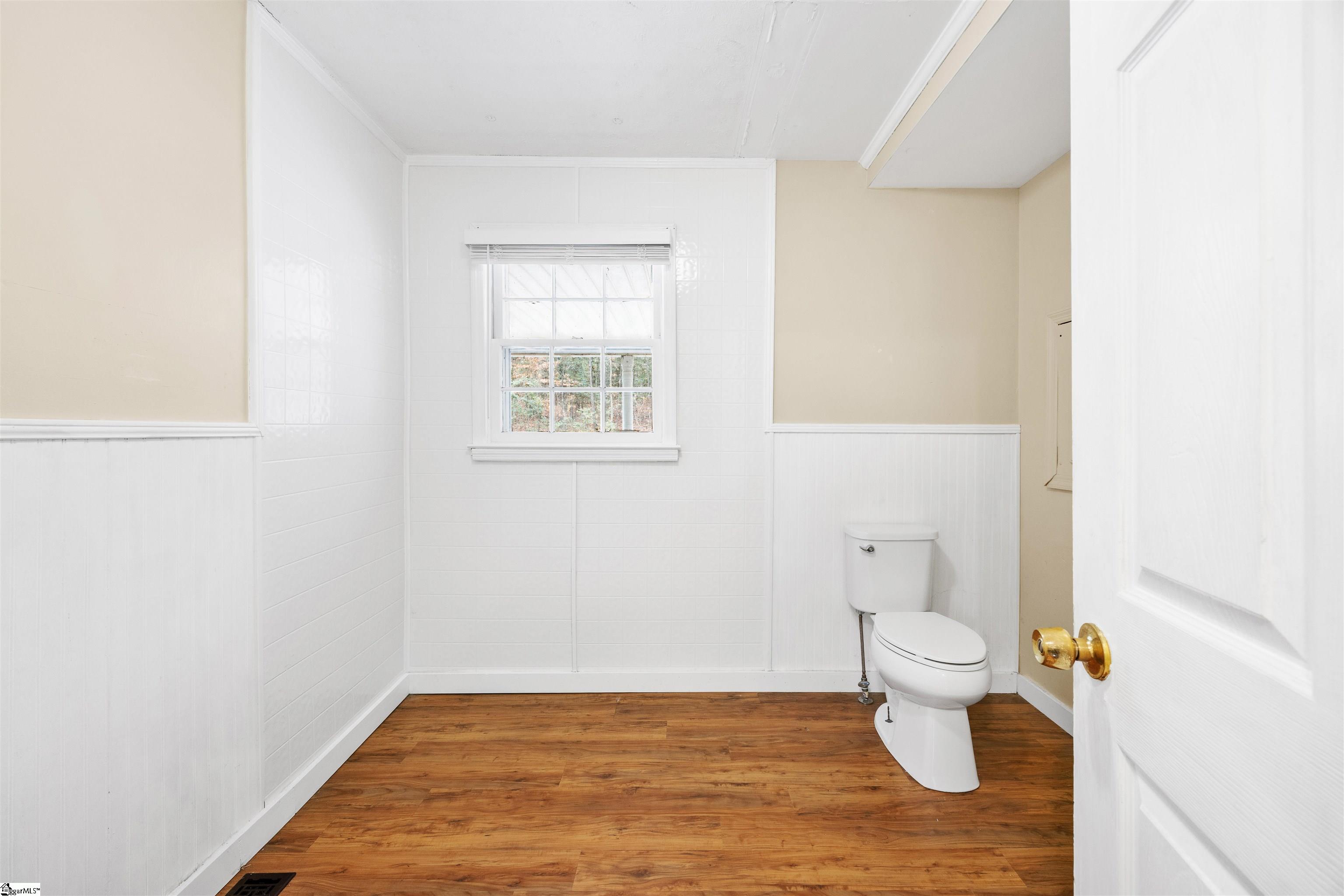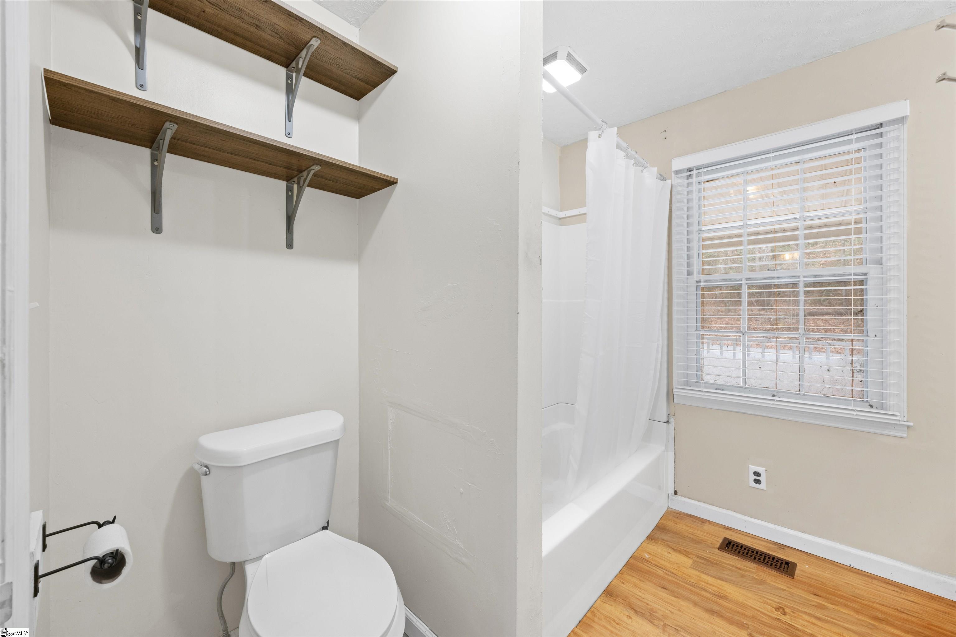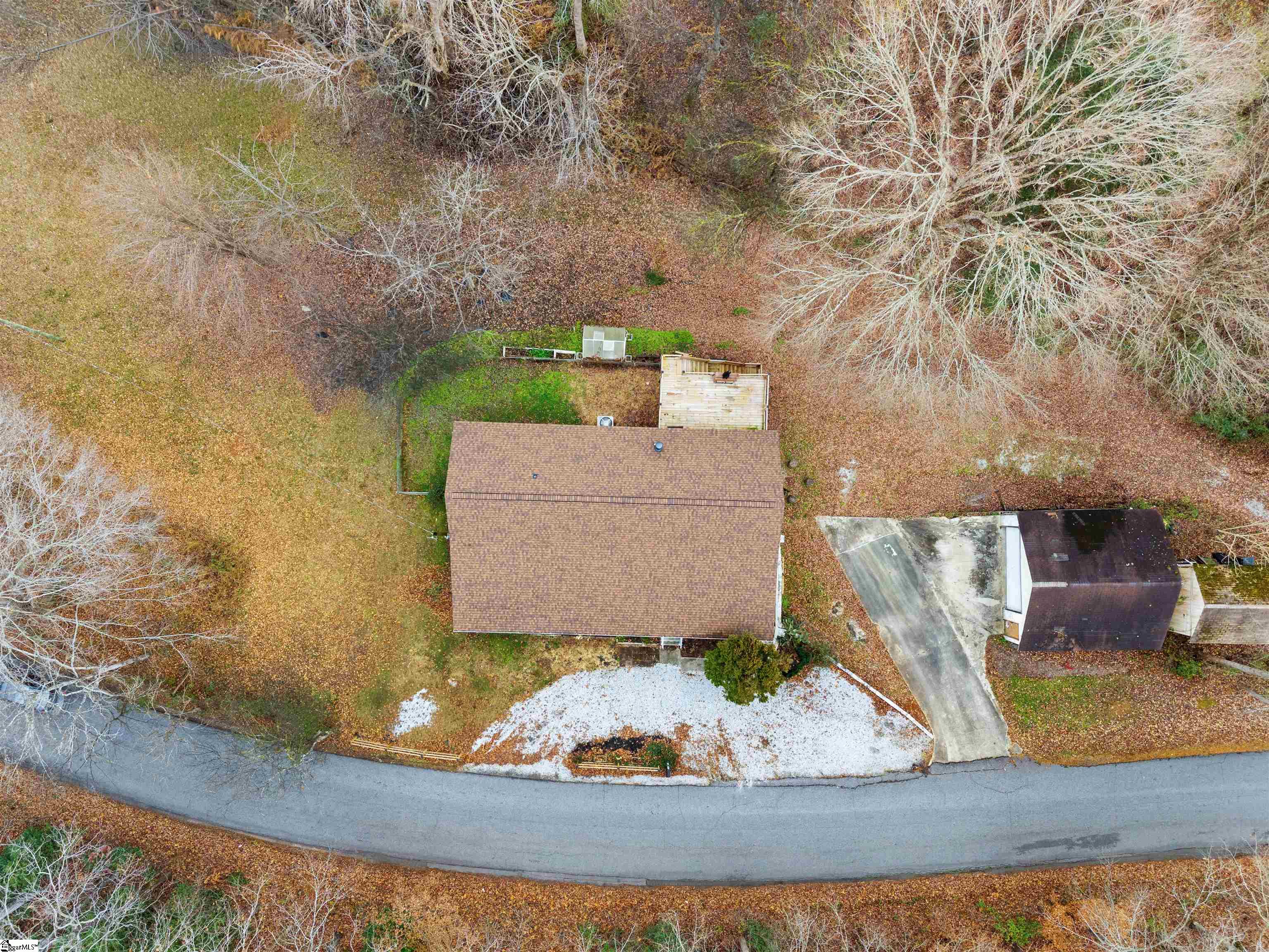Picturesque country home with an active creek and a wooded lot, offering a huge front porch for outdoor living and a deck on the backside that would be perfect for entertaining, all just minutes from Five Forks or Pelham Rd in Simpsonville. The 2-bedroom, 1.5 bath with a huge walk-in huge could be altered to accommodate a third bedroom, and the plumbing is available for the half bath to be completed to a whole bath. If you need extra space or want a large workshop, you'll love the 24x24 detached garage. This property is being sold AS-IS.