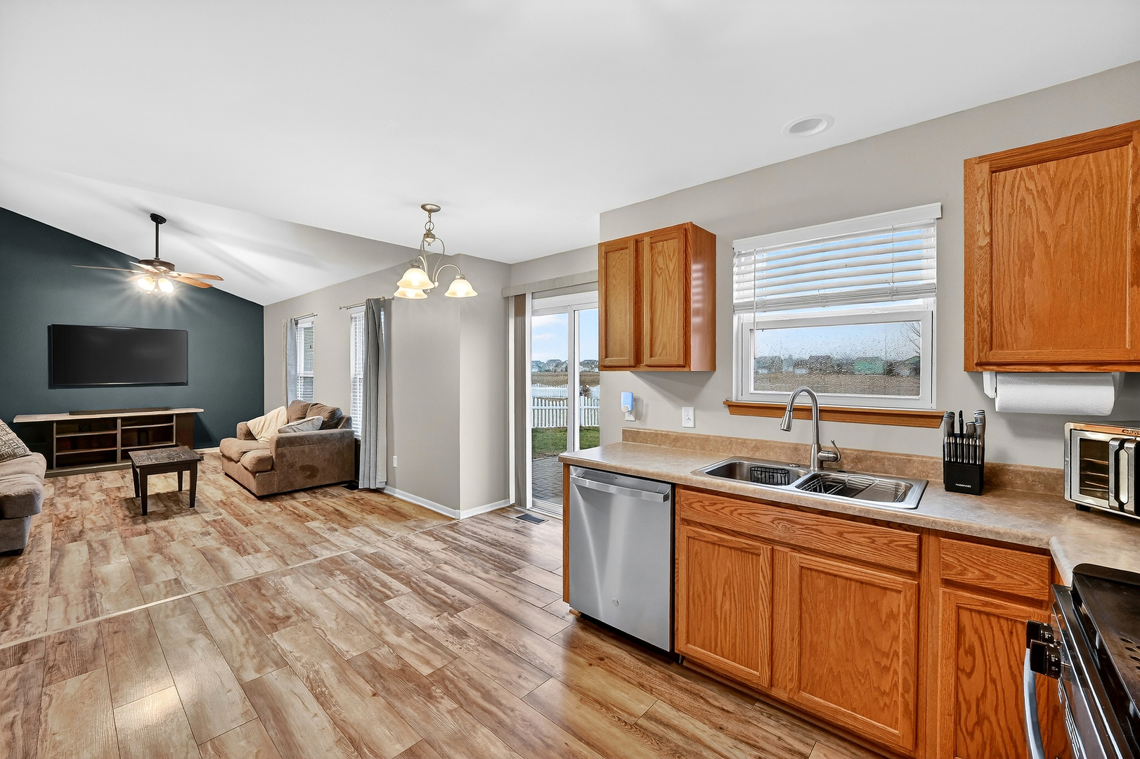Welcome to this 4 Bedroom, 2.5 Bath Prairie Springs, two story home with fabulous views backing up to 22 Acre Pond! Recently updated with new kitchen appliances, new flooring and rec room in basement, this spacious home has so much to offer. Main floor boasts a formal living room w/brick to ceiling WB/gas fireplace, dining room, eat in kitchen that opens to the living room with sliders to the back yard. Kitchen features oak cabinets, plenty of counter space, pantry, & all appliances stay! Kitchen opens to 20X12 vaulted family room w/Ceiling fan. 2nd Floor features laundry closet w/washer/dryer, linen closet, hall bath w/double vanity & 4 Bedrooms. 17X12 primary bedroom overlooks pond w/great views, features private bath w/double vanity & linen closet, 7X5 walk in closet & small sitting area. Basement has a 28X20 rec room & storage area. Backyard has brick paver patio & shed on concrete slab. Roof new in 2016 and new flooring in 2025! This lovely home is waiting for a new owner to enjoy all it has to offer.