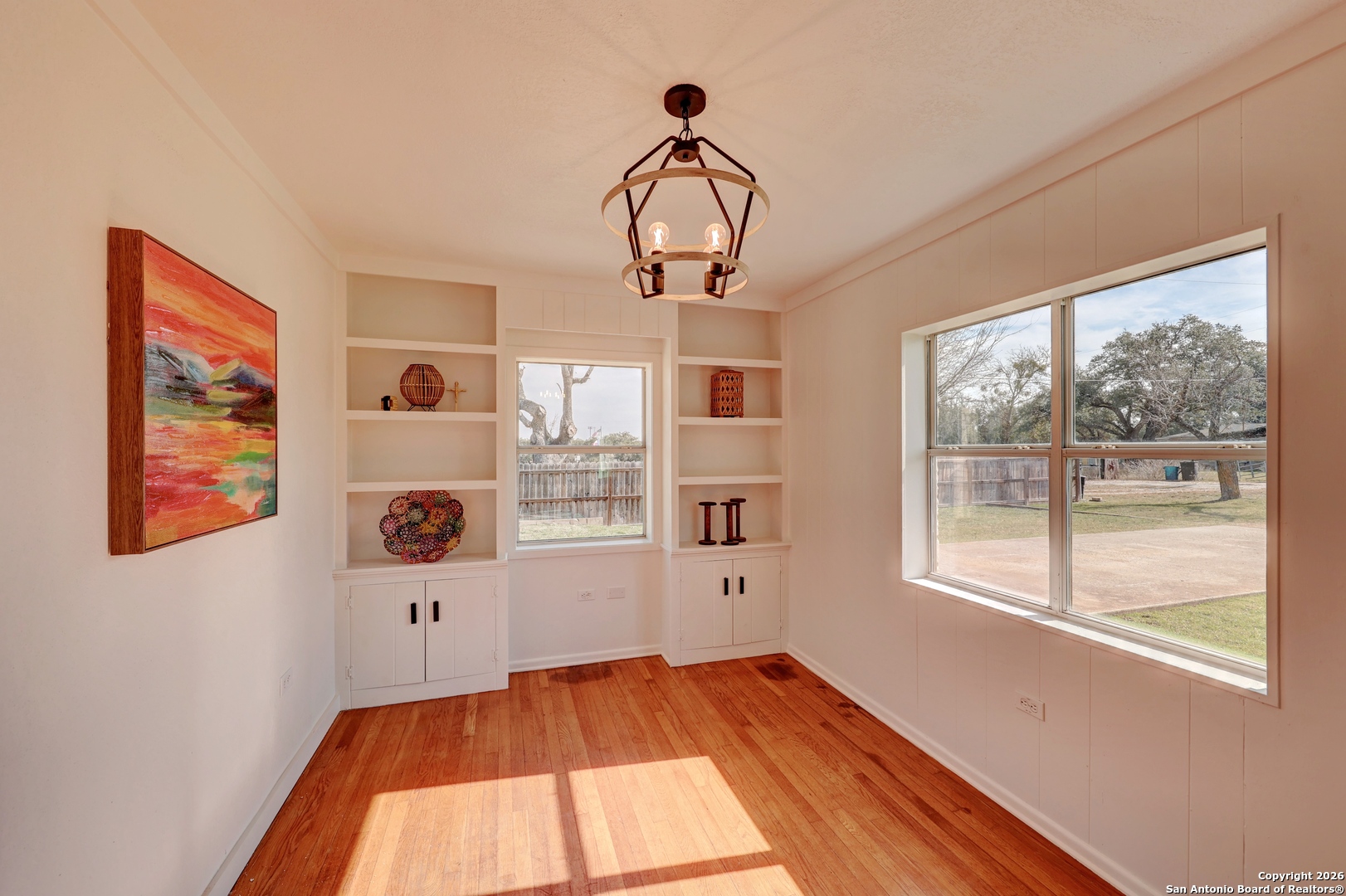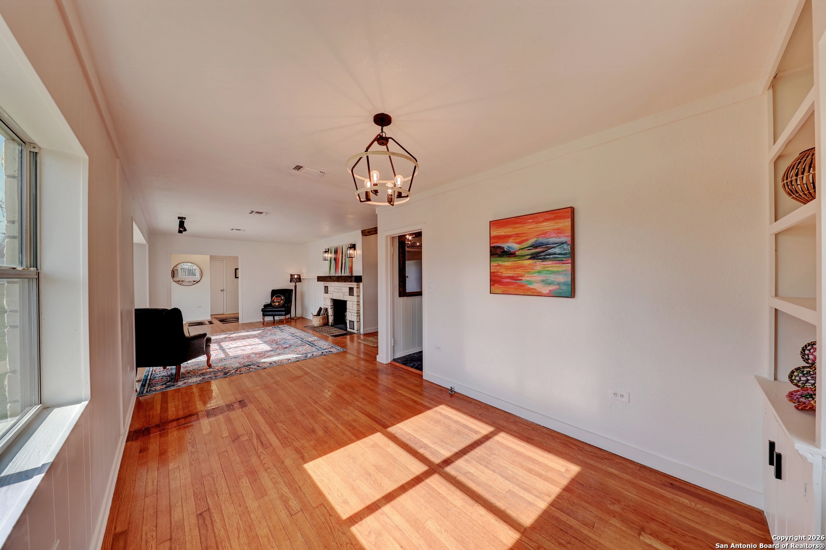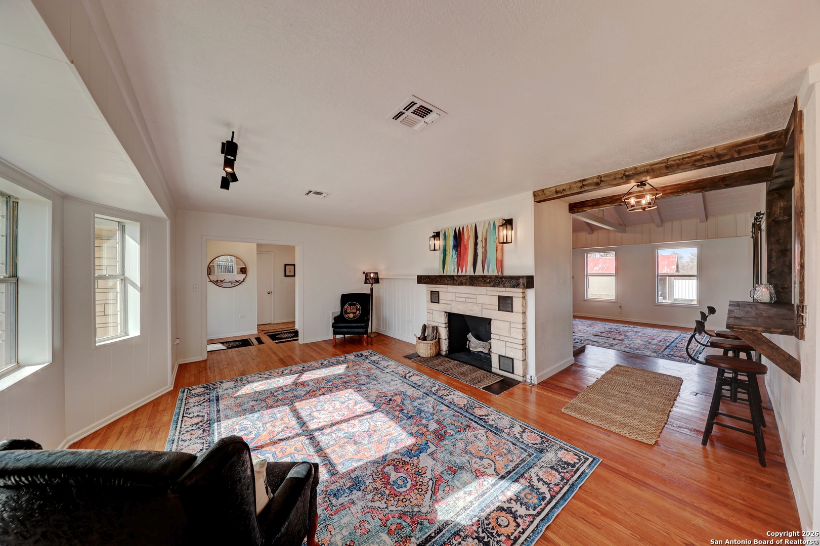 Hill Country charm, space to breathe, and endless possibilities-right in the heart of Harper. Set on an acre and ideally located between Fredericksburg and Kerrville, this inviting Hill Country home blends timeless character with thoughtful updates while offering privacy and room to grow. A fence on three sides provides a sense of seclusion, creating a peaceful retreat with the convenience of nearby dining, wineries, shopping, and medical care. The charming stone exterior and durable metal roof create instant curb appeal, welcoming you into sun-filled living spaces accented by original hardwood floors and two striking rock fireplaces. Oversized windows fill the home with natural light, while rustic wood details and beams add warmth and authenticity throughout. With 1,882 square feet, this 2-bedroom, 2-bath home offers flexible living with multiple spaces that allow for up to three bedroom possibilities, including built-in bunkettes ideal for hosting family and guests or creating a third sleeping area, office, or flex room. Multiple living areas provide plenty of space to relax or entertain, complemented by recent updates to electrical, plumbing, and septic systems for peace of mind. Outside, two large pecan trees shade the expansive yard, perfect for gatherings, gardening, or embracing a more self-sufficient lifestyle-yes, there s room for chickens. In addition to the garage and storage shed, the impressive 888 sq ft party barn/workshop truly sets this property apart. Whether you envision a studio, entertaining space, hobby shop, or future conversion, the potential is unlimited. Originally built in 1950 with additions completed in 2008, this one-of-a-kind property delivers classic Hill Country charm, privacy, and versatility in a location that s hard to beat.