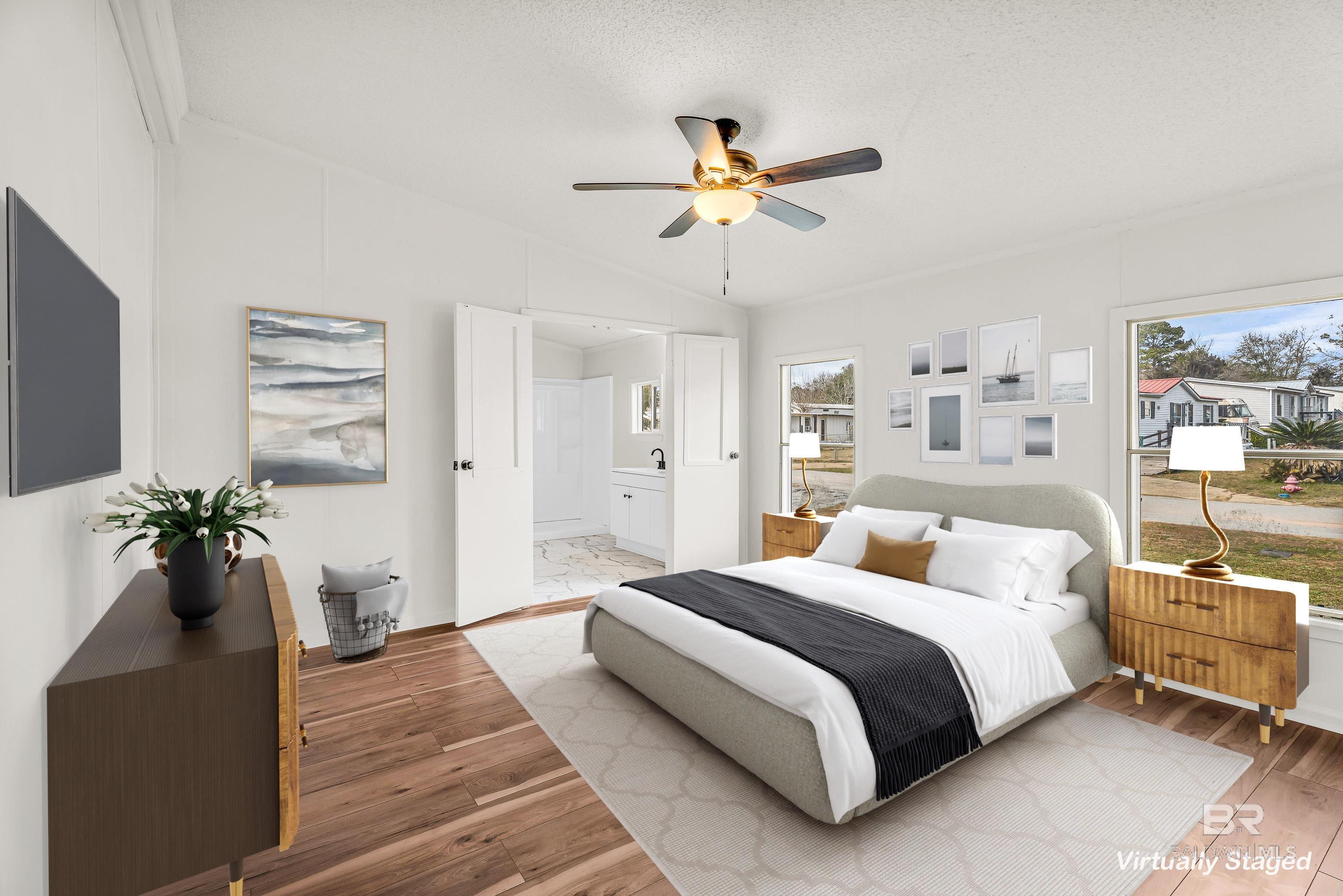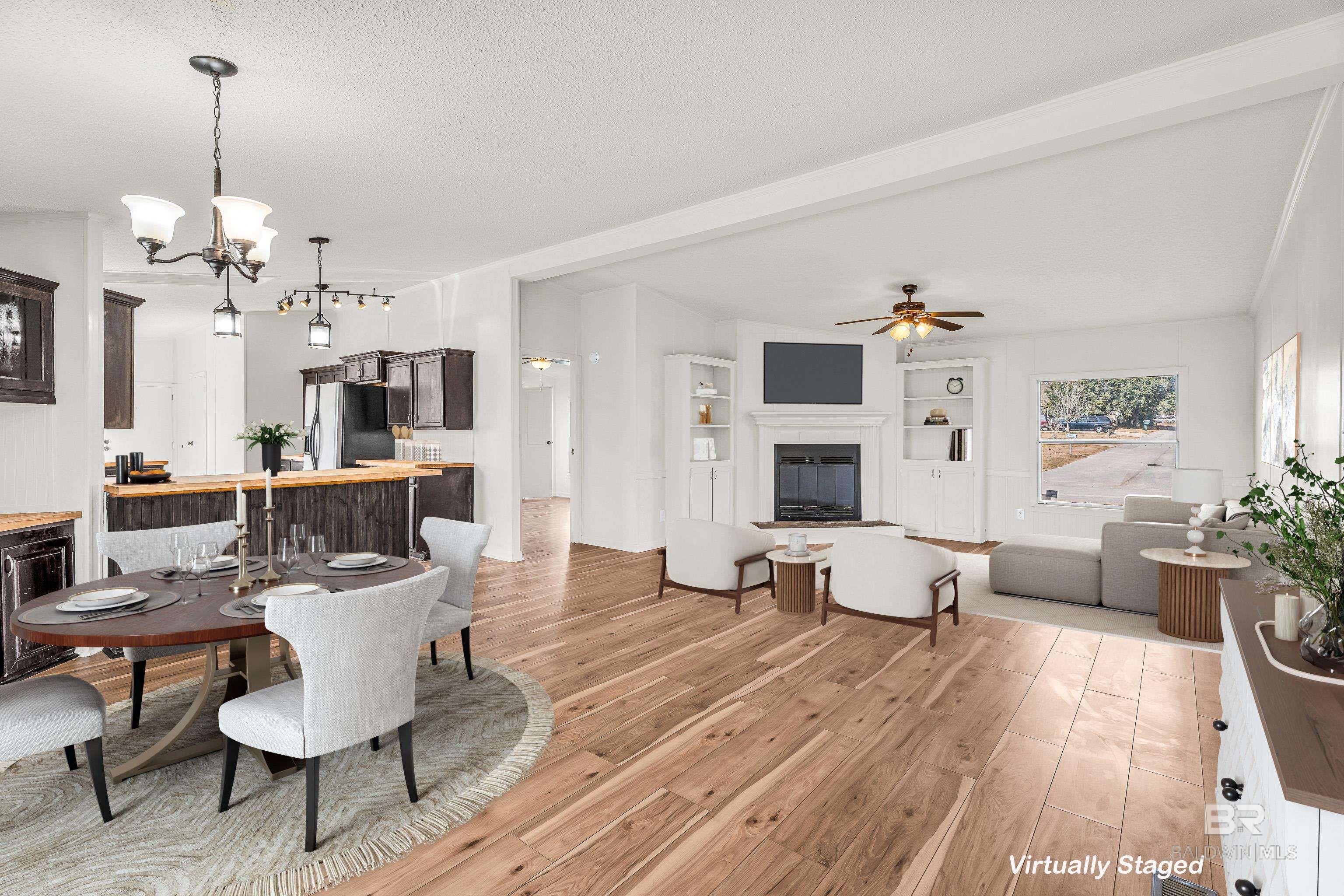 This home is eligible for FHA/VA/USDA financing!! Welcome to 102 S Wren Ln in Robertsdale, a beautifully renovated 3 bedroom, 2 bath home that is truly move-in ready. This property is de-titled and attached to owned land (real property), offering added value and financing flexibility. From the moment you step inside, youll appreciate the fresh updates throughout, including all new flooring and paint that give the home a bright, modern feel. The kitchen and baths have been thoughtfully refreshed with butcher block countertops throughout, adding warmth and character while still keeping things practical and timeless. The primary bathroom has been fully upgraded, creating a comfortable retreat youll enjoy at the end of the day.Outside, the improvements continue with new gutters, new shutters, and new skirting, boosting both curb appeal and functionality. Every update was done with care, making this home an easy choice for buyers looking to avoid projects and enjoy peace of mind.The location truly sets this home apart. Centrally located in Baldwin County, youre just minutes from shopping, dining, everyday conveniences, and a short drive to the beautiful Gulf Coast beaches. Whether youre commuting, running errands, or heading out for a weekend on the water, everything is right within reach.If youre looking for a fully updated home in a prime location, 102 S Wren Ln is ready for its new owner. Buyer to verify all information during due diligence.