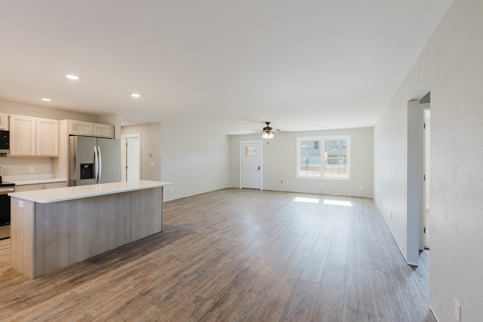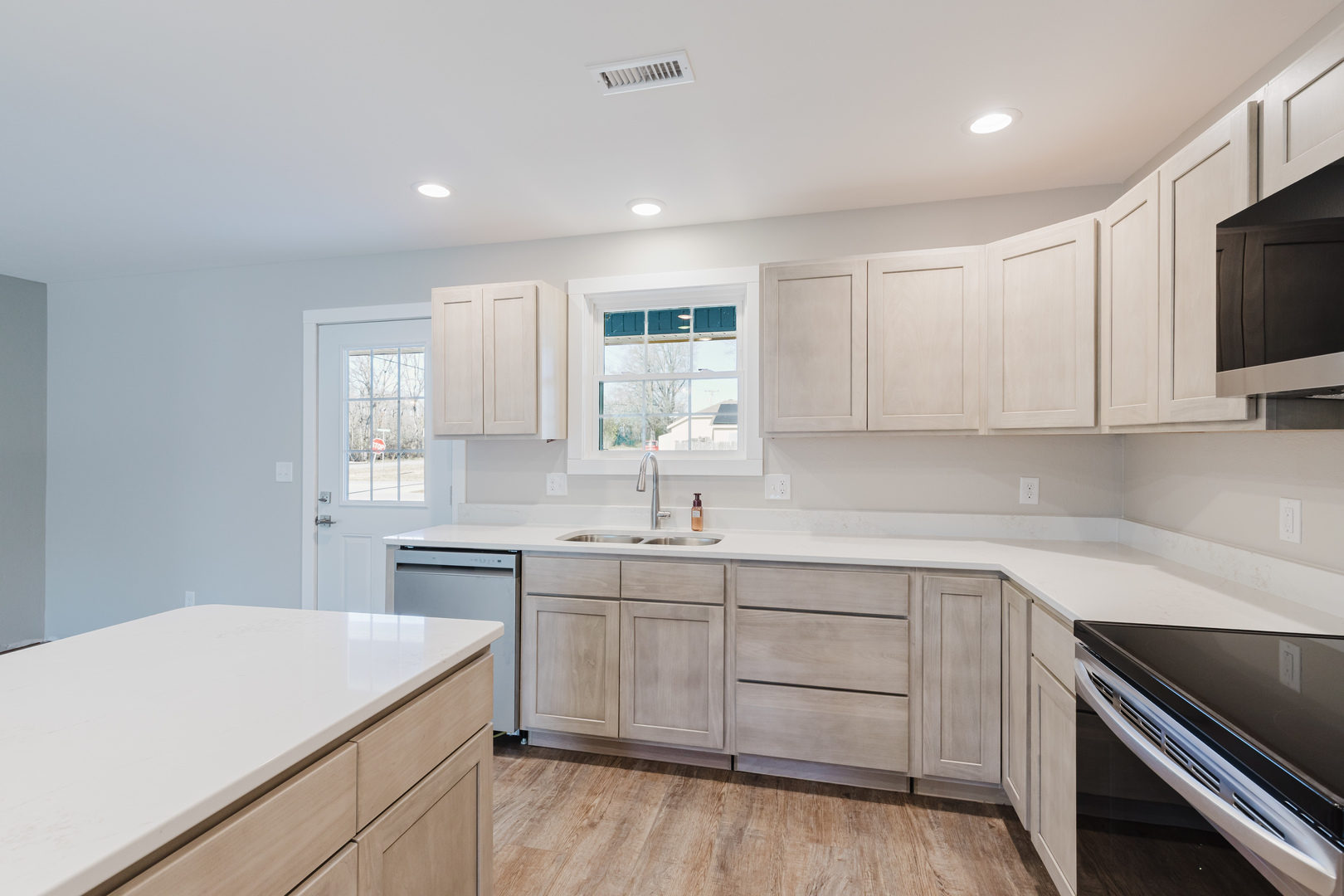 Brand New Construction on a Corner Lot This beautiful 3-bedroom, 2-bath home features a desirable split floor plan, quartz countertops in the kitchen along with stainless appliances, and luxury vinyl flooring throughout- with cozy carpeted bedrooms for added comfort. The Master has a shower w/ 2 separate vanities and a huge walk-in closet. Modern design meets everyday functionality in this must-see home! Updated photos will be soon for this home is almost ready for its buyers.