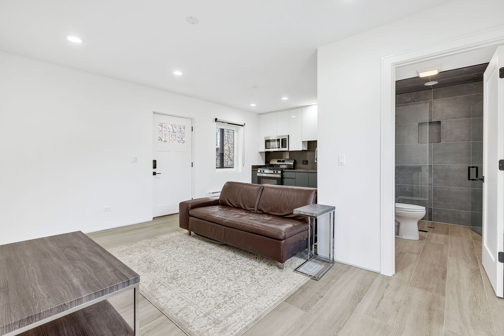 Welcome to the epitome of modern living in Oak Park! This building combines style, convenience, and comfort seamlessly; just blocks from the CTA Green Line, Metra, and Lake Street, with easy access to parks, cafes, and Oak Park's iconic architecture. Rent includes water, trash, exterior maintenance, security cameras, and bike storage. Completely rehabbed 1-bedroom, 1-bathroom unit offers luxurious porcelain hardwood floors throughout, an open and user-friendly floor-plan, a modern bathroom complete with walk-in shower and lighted mirror, and a chef's kitchen with quartz countertops, stainless steel appliances, and top-end cabinets perfect for culinary enthusiasts. On-site exterior parking space is also available for $100/month, with additional storage options upon request. Unit available on May 1, 2026. Don't miss your chance to experience the best of Oak Park living!