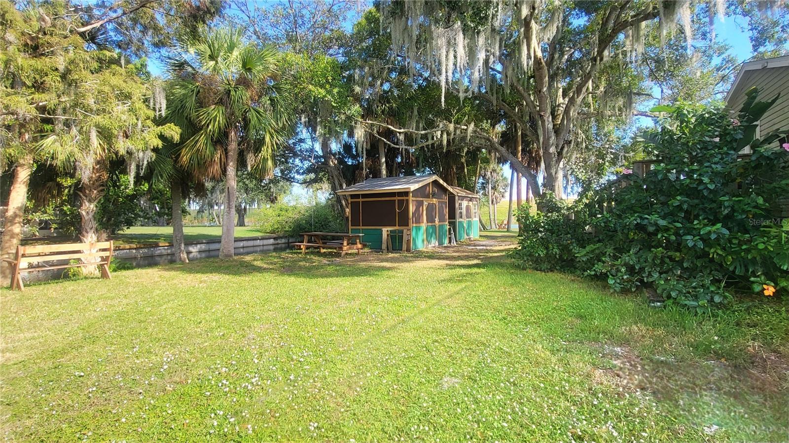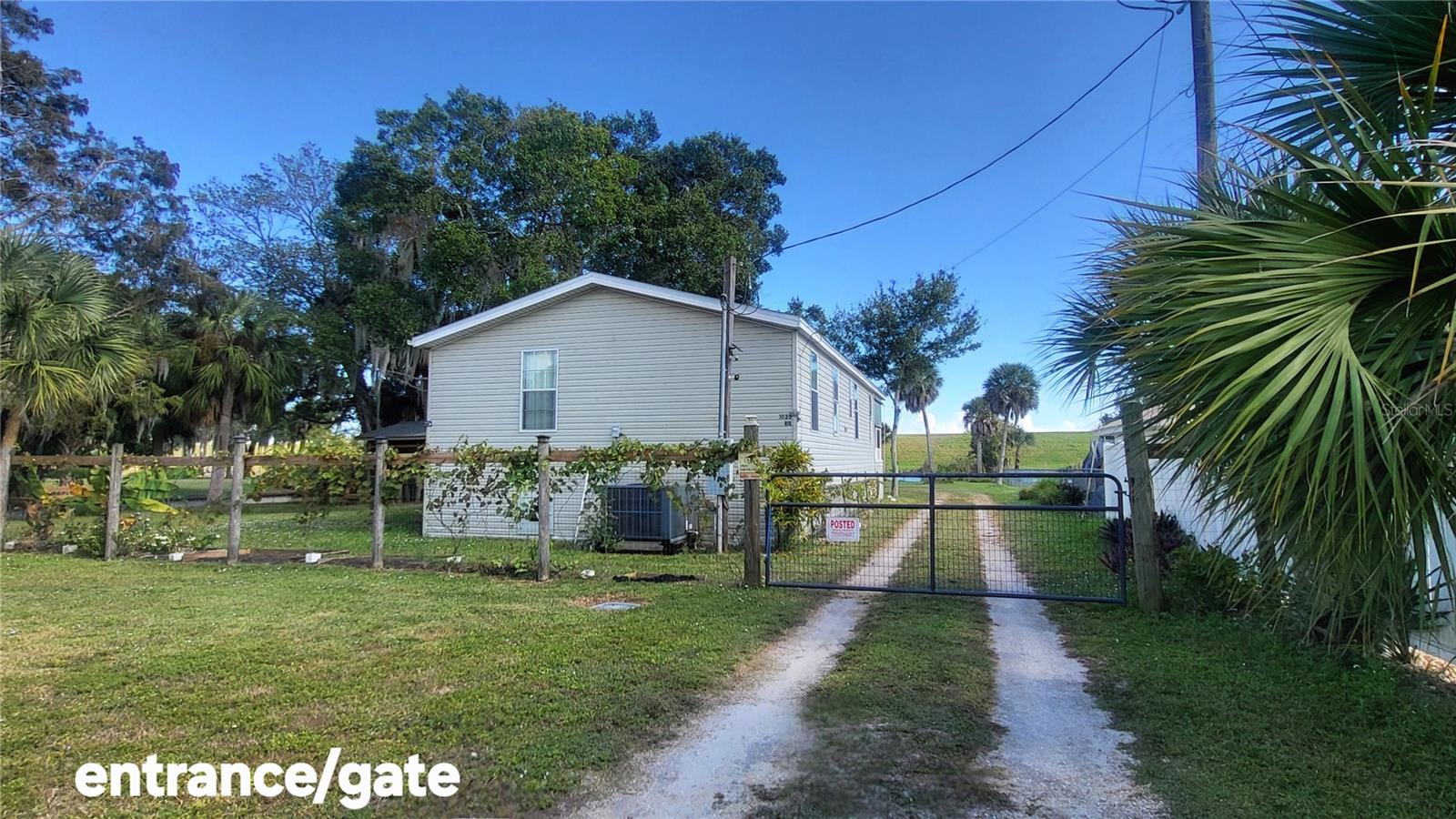 LAKE OKEECHOBEE RIM CANAL. Relaxing on your front porch, you'll never tire of having the luxury of a birds-eye view of the wide, 8' deep canal on one side and the 24' deep blue Rim Canal straight ahead (just a stone's throw to the Fisheating Creek Lock to get directly onto Lake Okeechobee). The landscape offers shade trees, exotic banana trees, flowering shrubs and wildflowers that attract butterflies. The Leucistic White Squirrels are truly a delight to watch frolic and play. It's like a day in the park, but every day! Two large sheds offer ample storage including loft fishing pole holders. Fenced on two sides including a wide entrance gate. The roof is 2022, AC is 2020 w/10-yr warranty. This 2/2 DWMH has solid decking, an open floorplan and a sliding door to the screened porch. The safe, new riding mower, 12' rowboat, canoe, woodchipper and much more convey. If you're fishing in Lakeport, then you'll love this catch!