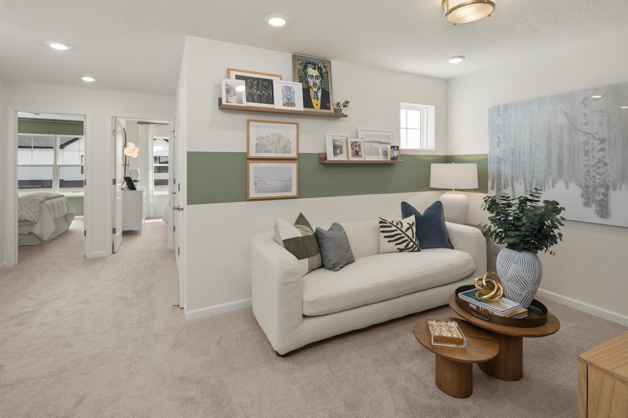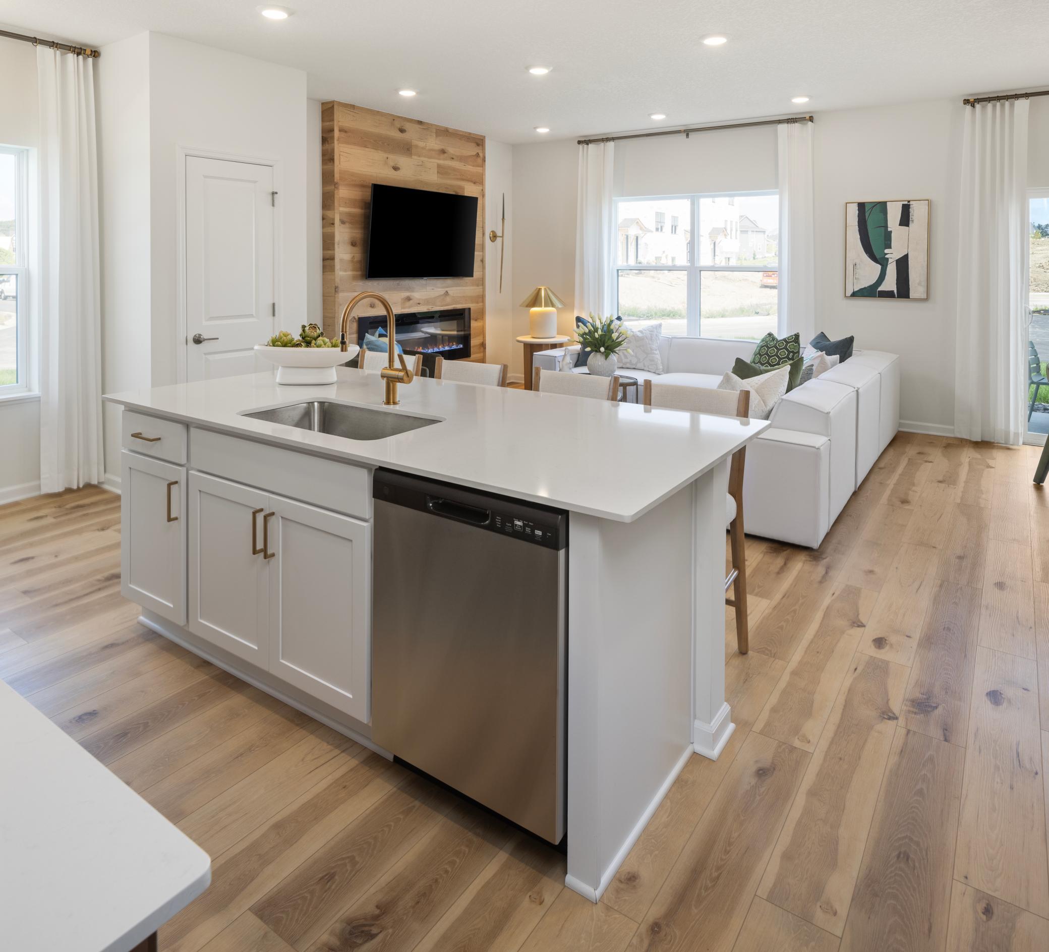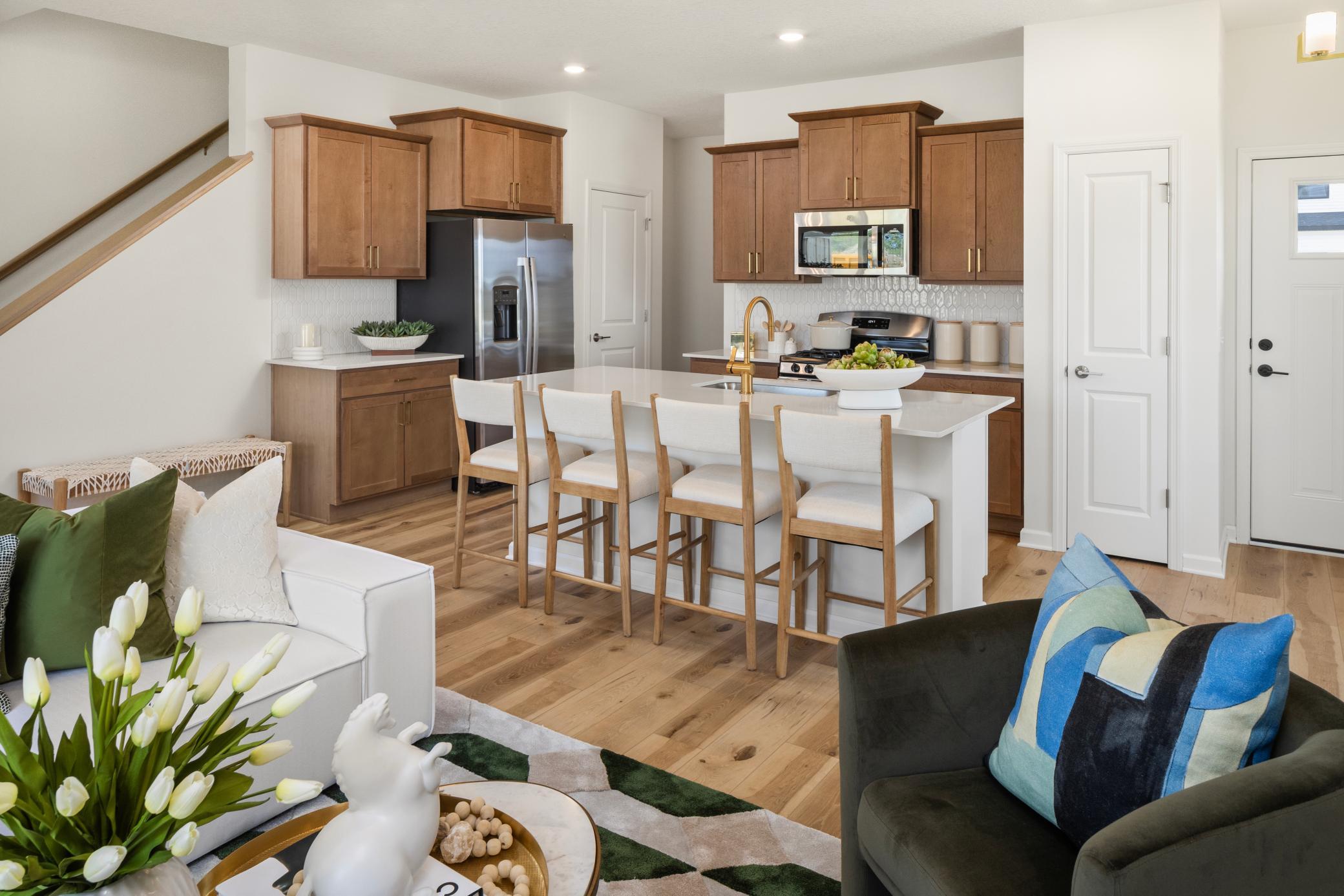 Stunning end unit new construction townhome with an open concept design and modern, elevated finishes throughout. This spacious layout features 3 bedrooms, 2.5 baths, an upper level loft, and convenient upstairs laundry. The main floor is finished with LVP flooring throughout, creating a seamless and durable living space.The designer kitchen showcases stained cabinets paired perfectly with a modern white island, and matte gold hardware, complemented by gold light fixtures carried consistently throughout the home. A sleek, modern electric fireplace anchors the main living area for a warm, contemporary touch.Please note: Model is not for sale, but we have only 2 more of this floorplan left in the community. Surrounded by wetlands, parks, and lakes, this neighborhood offers beauty and convenience, located less than 10 minutes from downtown Victoria and Chaska. We are now down to our last few buildings! Dont miss one of the final opportunities!!
