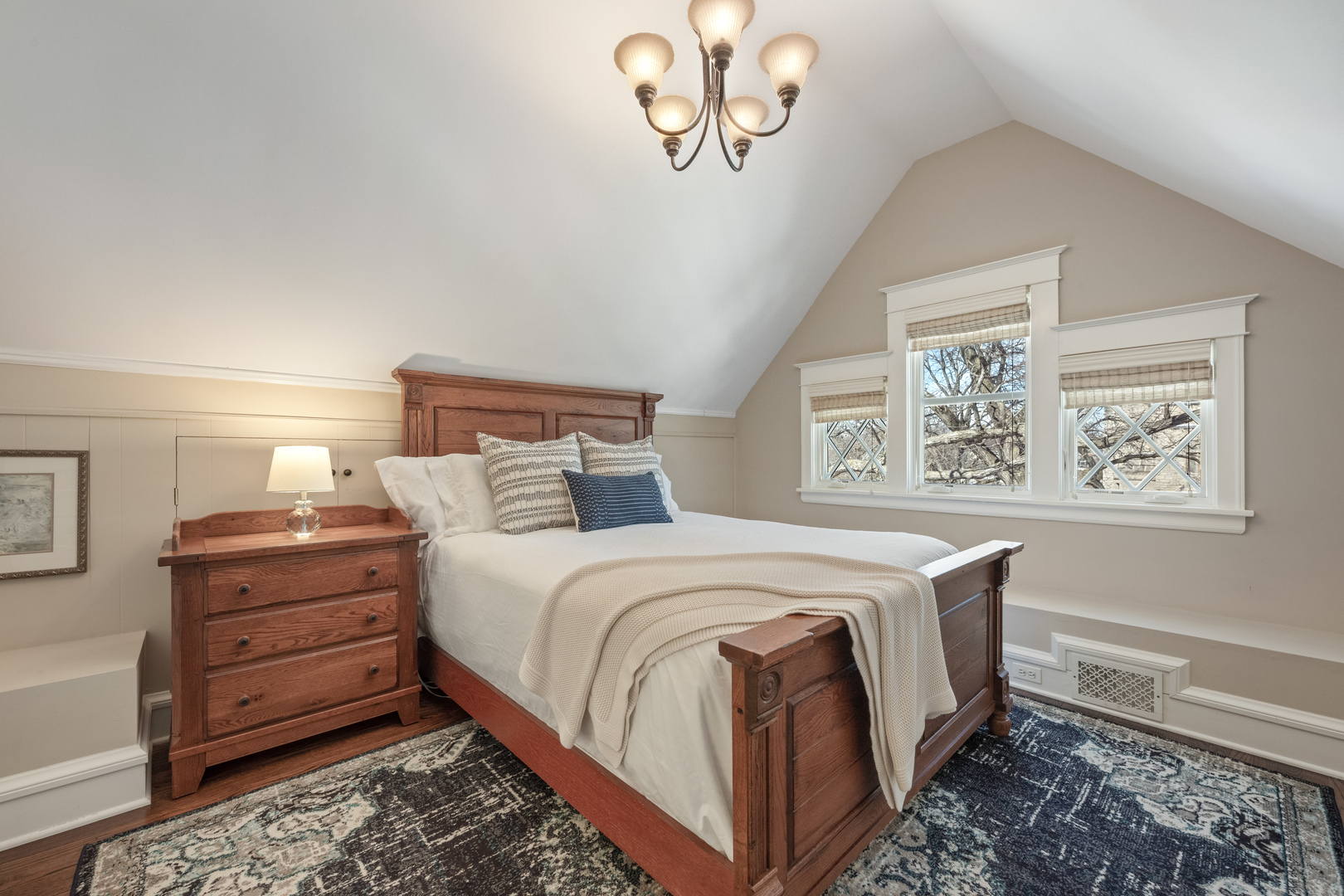 East Wilmette Beauty! Ideally located in one of Wilmette's most sought-after neighborhoods, this home offers exceptional walkability to downtown shops and restaurants, top-rated schools, the Metra, and the beach. Charming wide front porch, tall ceilings, and timeless vintage details are seamlessly blended with modern amenities. The thoughtfully designed open floor plan is filled with natural light throughout. The gourmet kitchen with stainless steel appliances opens to the family room, breakfast nook, and convenient mudroom-perfect for everyday living and entertaining. Four bedrooms are located on the second floor, along with a spacious laundry room and abundant storage closets. The expansive primary suite features vaulted ceilings, windows on three sides, and separate his-and-hers closets. The elegant primary bath includes a classic clawfoot tub, heated floors, dual sinks, and a separate shower. The third floor offers a private treetop bedroom and full bath, ideal for guests, a home office, or a quiet retreat. The dug-out finished basement with heated floors provides exceptional additional living space, including a media area, and bar for entertaining. A full bath, exercise room, and additional laundry area complete the lower level. Outside, enjoy a long private driveway, a secluded backyard with a patio, and a two-plus-car garage. An unbeatable East Wilmette location combining convenience, charm, and lifestyle. Welcome home!