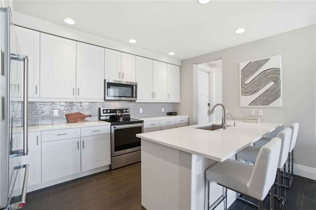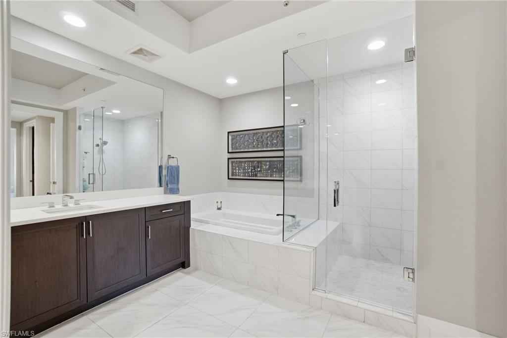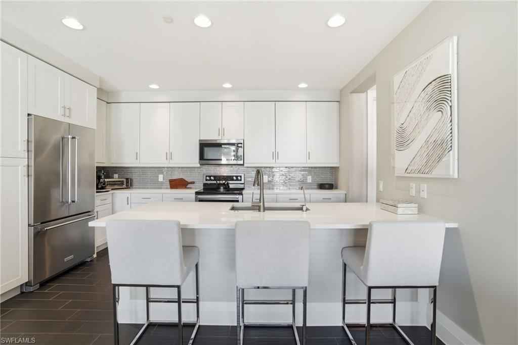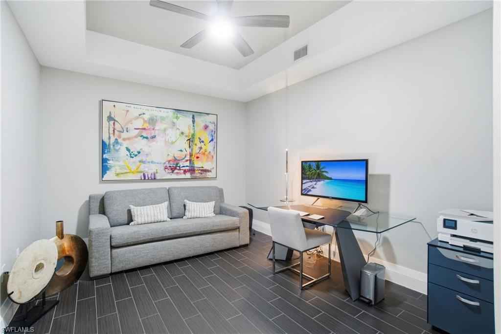 Welcome to 1030 3rd Avenue S., #517 in Naples Square, where luxury living awaits! This stunning residence offers two bedrooms, a versatile den, two full bathrooms, and a powder room within 1,823 square feet of thoughtfully designed indoor space. Step into the spacious and bright open living area, anchored by a gourmet kitchen that is sure to impress. Enjoy cooking and entertaining with expansive quartz counters, a large breakfast bar, a beautiful tile backsplash, upgraded cabinetry, and sleek appliances. The main bedroom promises privacy and luxury with luxe carpeting, two walk-in closets, a spa level bathroom with separate soaking tub, shower and dual vanities, and direct access to the balcony. A second bedroom suite ensures visitors feel welcome with the comfort of a private bathroom. A versatile den space, with modern barn doors offers options for additional guests, quieter conversations, or a solitude space for meditation. A wall of glass sliding doors brings bright sunlight and leads to an extra-large balcony that is the perfect spot to relax and unwind. For added convenience, this property has an oversized laundry room, one assigned parking space, and a secure climate-controlled storage locker. Residents of 1030 3rd Ave S. share a lush tropical courtyard with pool, spa, fire-pit, BBQ grills and al fresca dining area. They also have access to a state-of-the-art fitness center, social room with 3 TVs, billiards and a catering kitchen; and an on-site manager. Walk or bike to Naplesx2019; pristine white, sandy beach, Baker Park and the Naples Greenway. This Naples Square residence offers a luxurious lifestyle that is truly not to be missed. Come and see for yourself the elegance and comfort that await you!