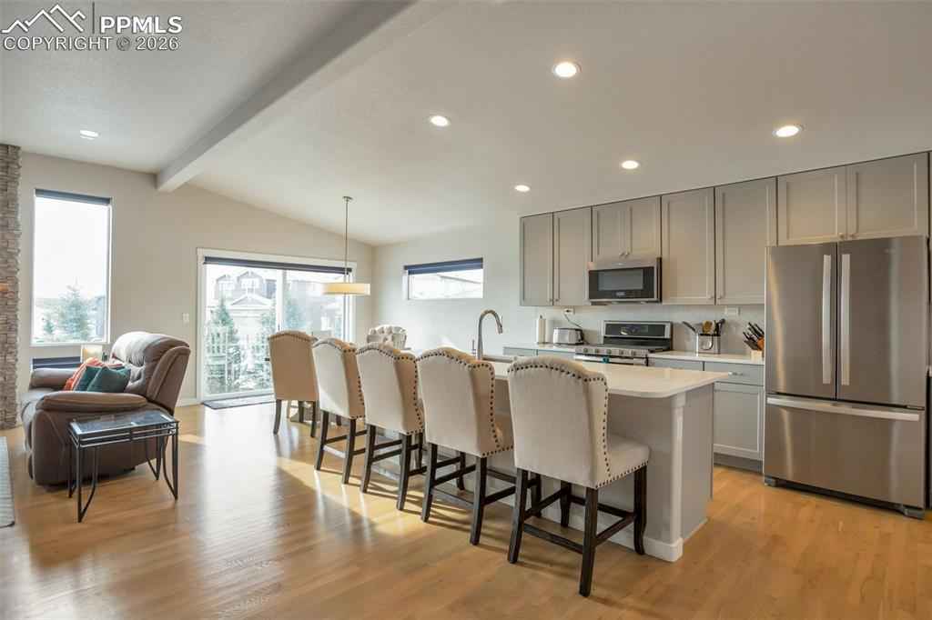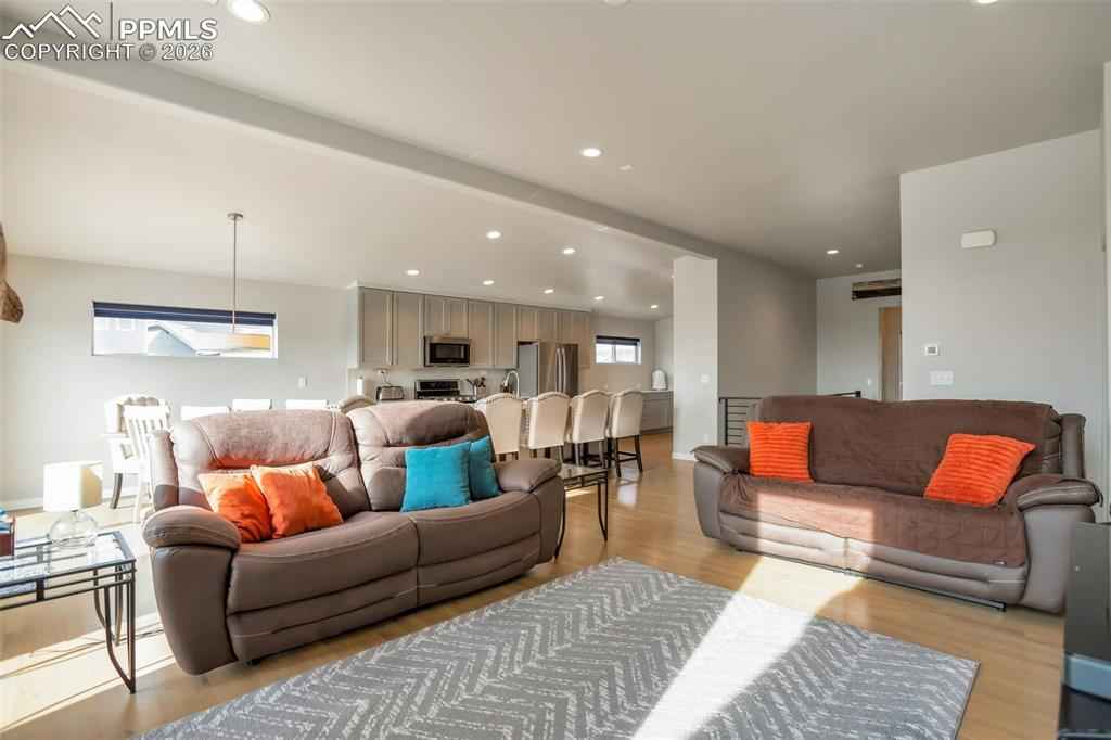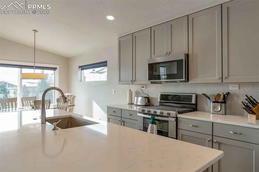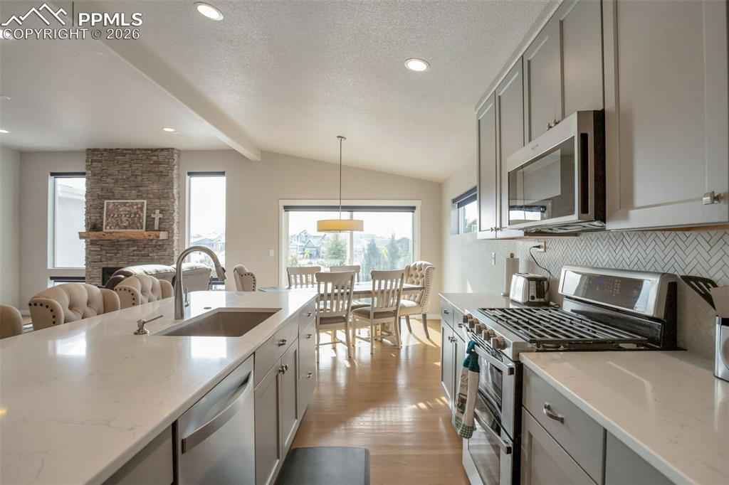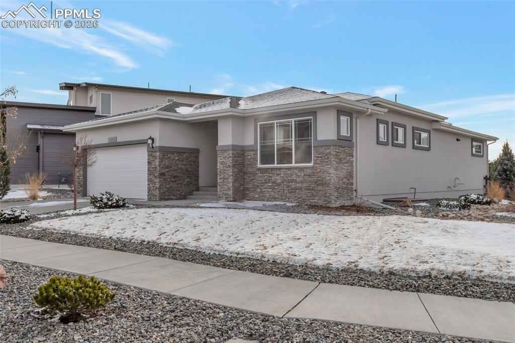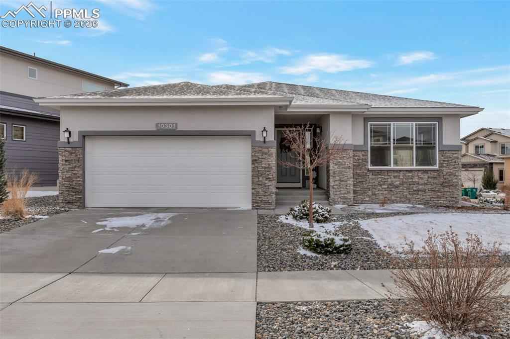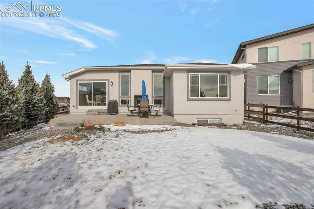 Stunning Keller Homes ranch in Cordera x2014; a sophisticated, family-friendly retreat with space for everyone. Built in 2019 and meticulously maintained, this 5-bed, 4-bath home offers elegant living with real white oak hardwood floors, high ceilings, and quartz countertops throughout. The floorplan is designed for both everyday life and entertaining: a double-sided fireplace anchors the living room and extends to the covered back patio, creating seamless indoor/outdoor ambiance. Two primary suites x2014; one on the main level and one in the finished basement x2014; provide excellent multi-generational or guest living options.xD;xA;xD;xA;The fully finished basement expands usable living space and includes flexible rooms for media, play, or home office. Practical luxury abounds in the mudroom, as you enter from the 3 car tandem garage with durable tile floors, this is your laundry room, also pre-plumbed for a sink. Outside, enjoy a fenced backyard for kids and pets which backs up to green space with gate access. Community amenities elevate everyday living with two pools, a fitness center, garden areas, miles of walking trails, mountain bike trails, a pond and meeting rooms. Built with durability in mind, the home features a Class-4 hail resistant roof. Located in D-20 schools. This home combines upscale finishes, thoughtful functionality, and unbeatable neighborhood conveniences. Welcome home to Cordera living.