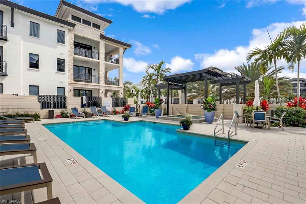 Rarely available Alton model in Naples Square! This beautifully maintained residence offers nearly 1,500 square feet of upscale living space with two bedrooms and two full baths, thoughtfully designed in a split-bedroom floor plan that balances privacy with an open, airy feel. Tile flooring throughoutx2014;no carpetingx2014;adds to the homex2019;s clean, modern aesthetic and easy maintenance. The gourmet kitchen features quartz countertops, a generous center island, and abundant natural light that flows seamlessly into the adjoining great room, ideal for both everyday living and entertaining. Step onto the spacious terrace to enjoy tranquil views overlooking the lush Naples Square community. Residents enjoy an array of amenities, including a resort-style pool and spa, outdoor grilling area, state-of-the-art fitness center, and an elegant social room. The residence includes one assigned deeded parking space plus additional parking for an additional vehicle in the secured under-building garage, a humidity-controlled storage locker, and convenient bike storage. Perfectly positioned in the heart of the vibrant Naples Design District, this premier home is just steps from Gulfshore Playhouse, 5th Avenue South, Baker Park, world-class dining and shopping, and Naplesx2019; renowned white-sand beaches.