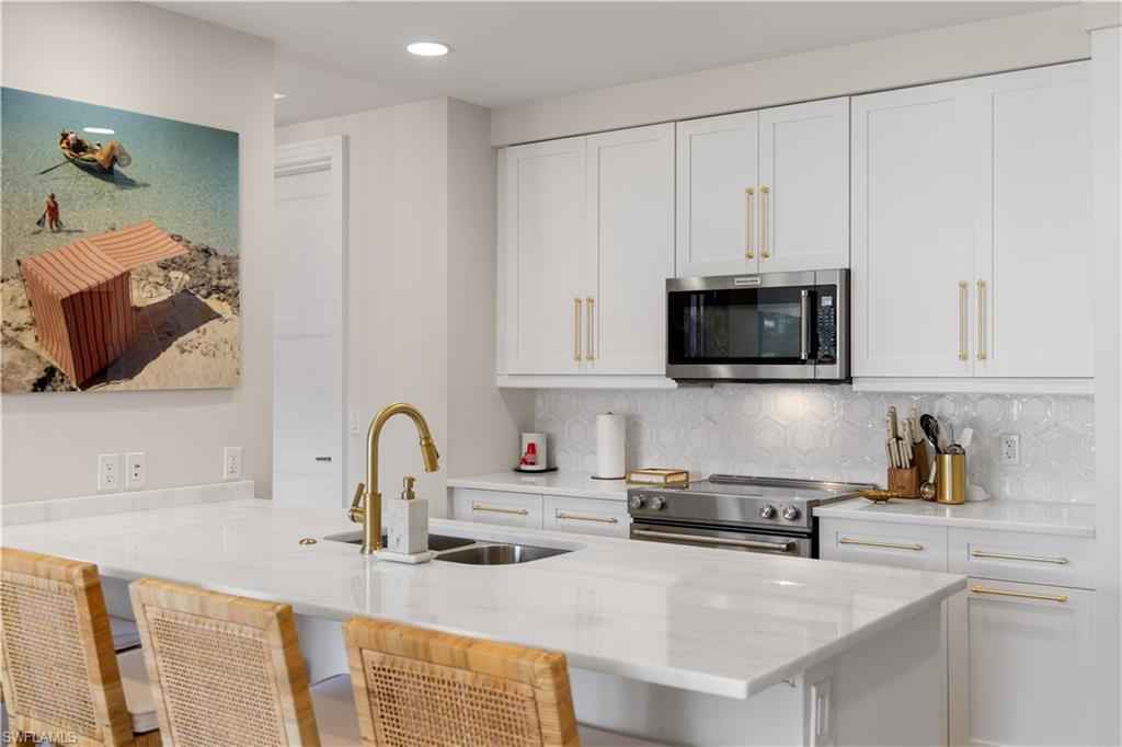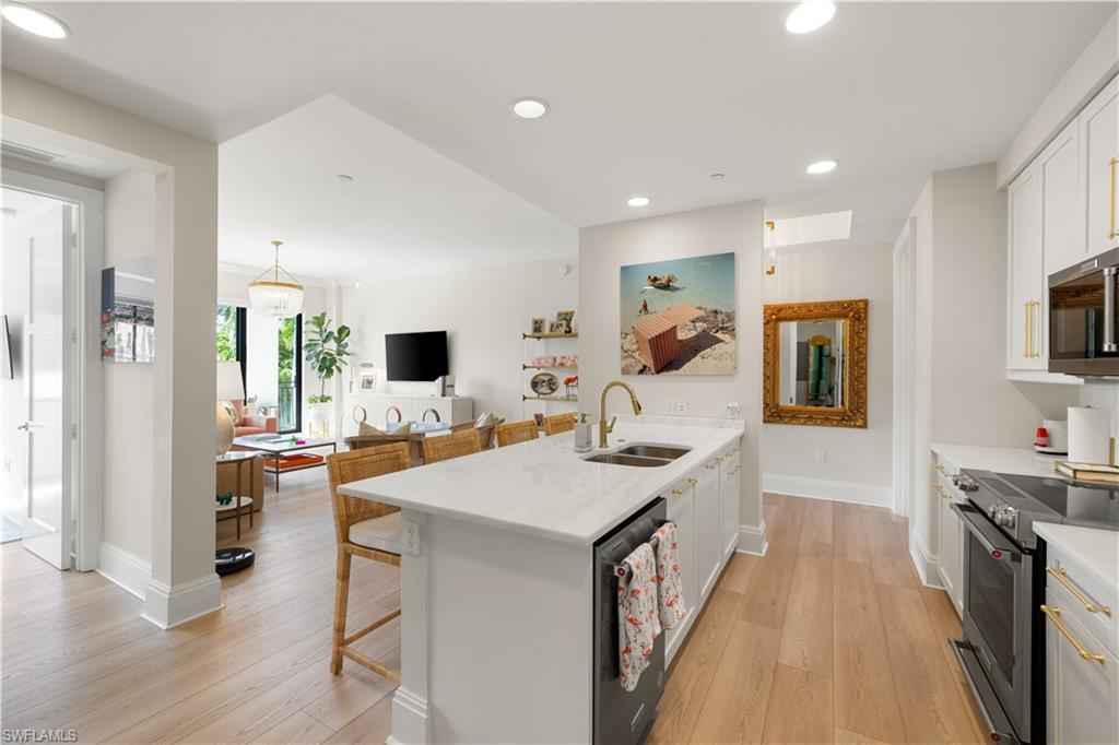 Unbeatable value in Naples Square! Presenting this aggressively priced gem in the highly acclaimed, amenity-rich Naples Square community, perfectly situated right in the heart of Downtown Olde Naples. This light-filled residence boasts a desirable Western exposure, providing breathtaking sunsets and a bright, inviting interior throughout the day. The thoughtfully designed split-bedroom floor plan is centered around an open-concept kitchen featuring ample storage, upgraded quartz countertops, custom backsplash, and newly enhanced cabinetry. Step onto the spacious patio for breathtaking sunset views, perfect for entertaining guests before strolling to the iconic 5th Avenue for an evening of fine dining and entertainment. Located just steps from the world-class amenities of Naples Square, this unit offers the ultimate in convenience and luxury. Schedule your private tour today and immerse yourself in the unmatched Downtown Naples lifestyle!