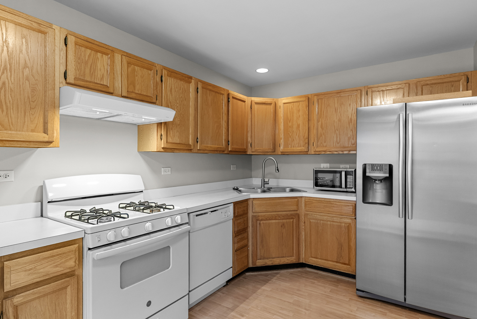 Beautiful, sunlit 2-story townhome available for immediate move-in in the sought-after Huntington Chase community of Elk Grove Village-freshly painted throughout, including the 2-car attached garage. Step into a grand two-story foyer with laminate hardwood floors and a dramatic sky bridge overlooking the entry and two-story living/family room, filled with natural light from floor-to-ceiling windows and anchored by a charming stone fireplace. The formal dining area flows into a spacious eat-in kitchen with direct access to a backyard patio-perfect for entertaining or relaxing outdoors. Upstairs features a generous primary suite with a large walk-in closet, dual vanities, and a private dressing area, plus a second bedroom with its own en-suite full bath and large walk-in closets, offering excellent privacy for family or guests. Enjoy the convenience of second-floor laundry, abundant closet/storage space, and an unbeatable location with excellent schools and easy access to Woodfield Mall, theaters, train station, and major highways including I-90, 53, 290, and 355-schedule your private tour today!!