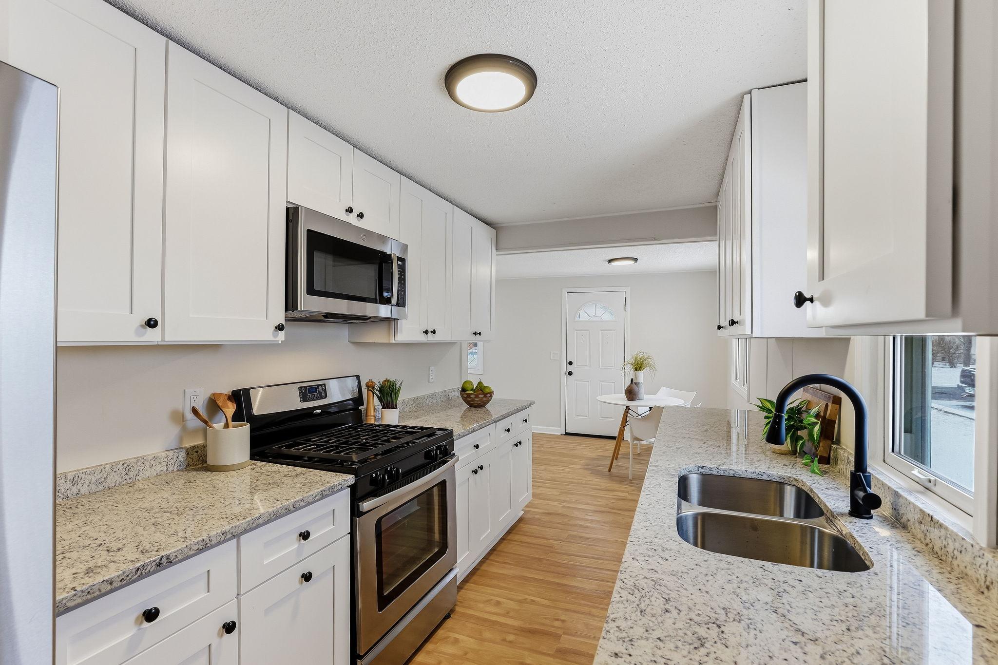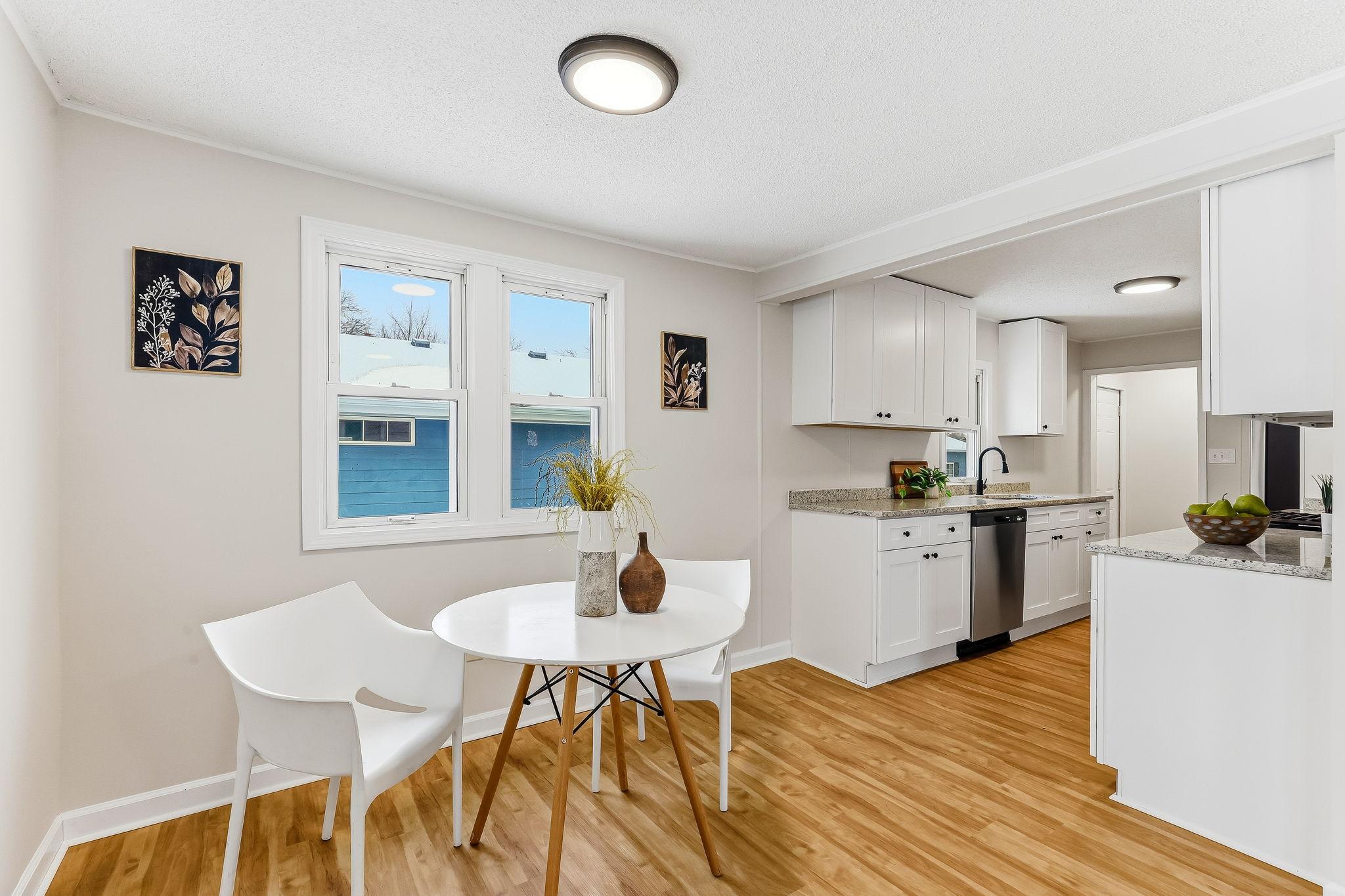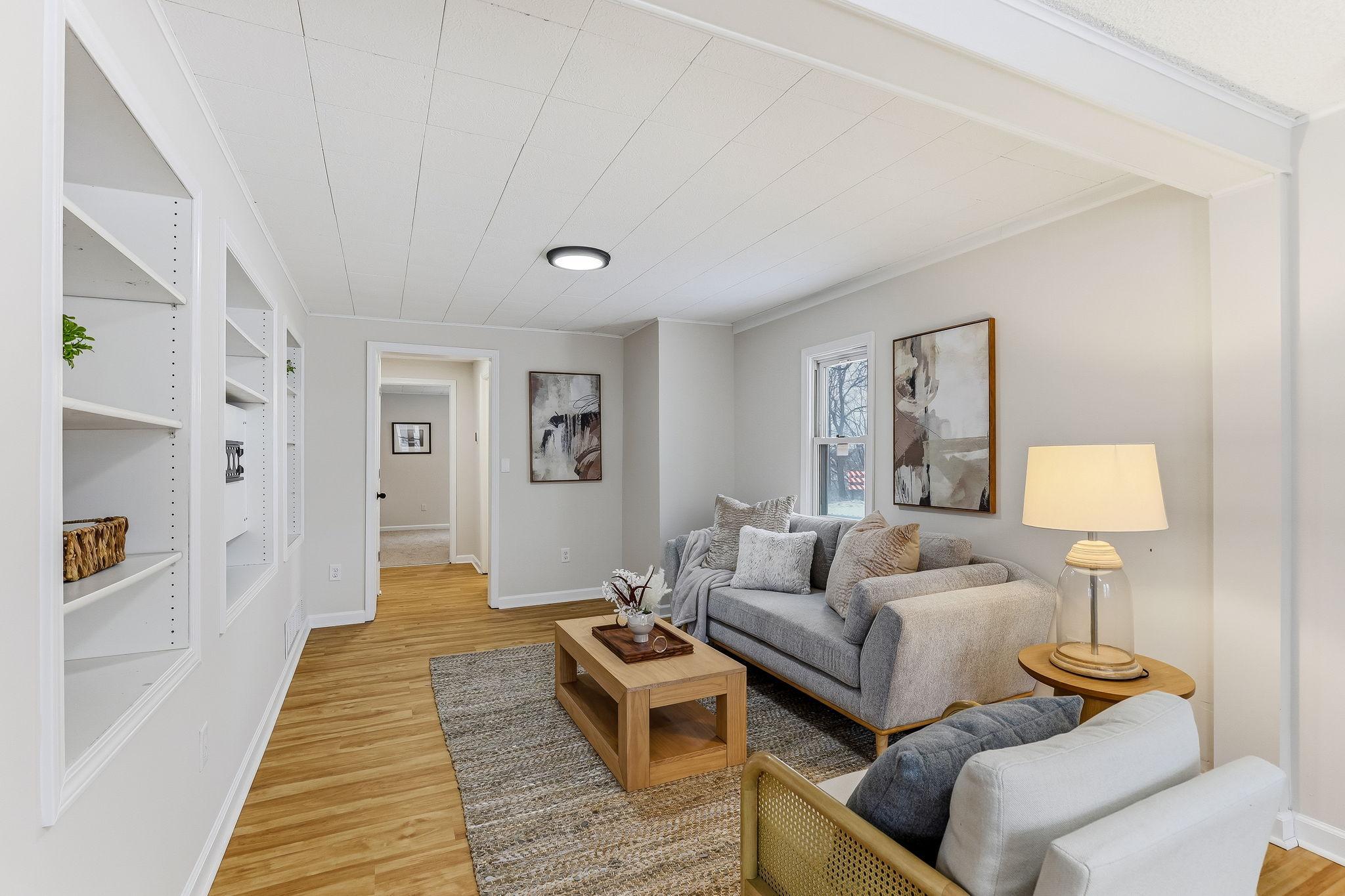 Step inside to a bright, refreshed ranch style home where the major updates are already done for you. The spacious living room welcomes you with abundant natural light and built-in shelving that adds both character and everyday functionality. The fully renovated kitchen features new stainless steel appliances, white shaker cabinets, and crisp white quartz countertops that create a clean, modern workspace. The full bathroom has been completely updated from top to bottom, while fresh paint, new lighting, new LVP flooring on the main level, and new carpet in both bedrooms make the entire home feel polished and move-in ready. The full basement is unfinished, giving you room to expand or customize in the future. Out back, the porch leads to the yard and a detached two-car garage with a deck off the backideal for enjoying the outdoors. If you're looking for a thoughtfully updated single-story home thats ready for you from day one, this one delivers.