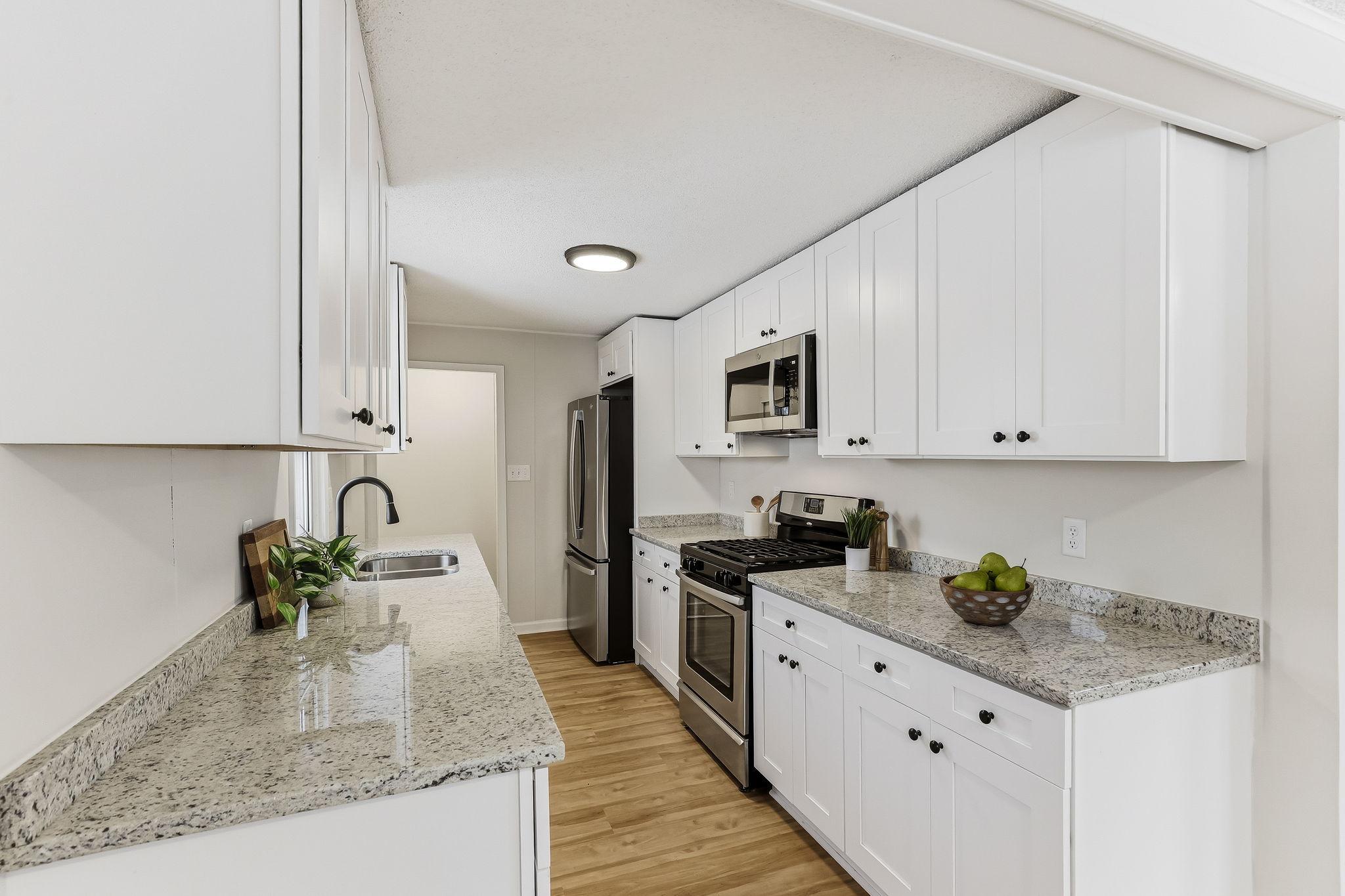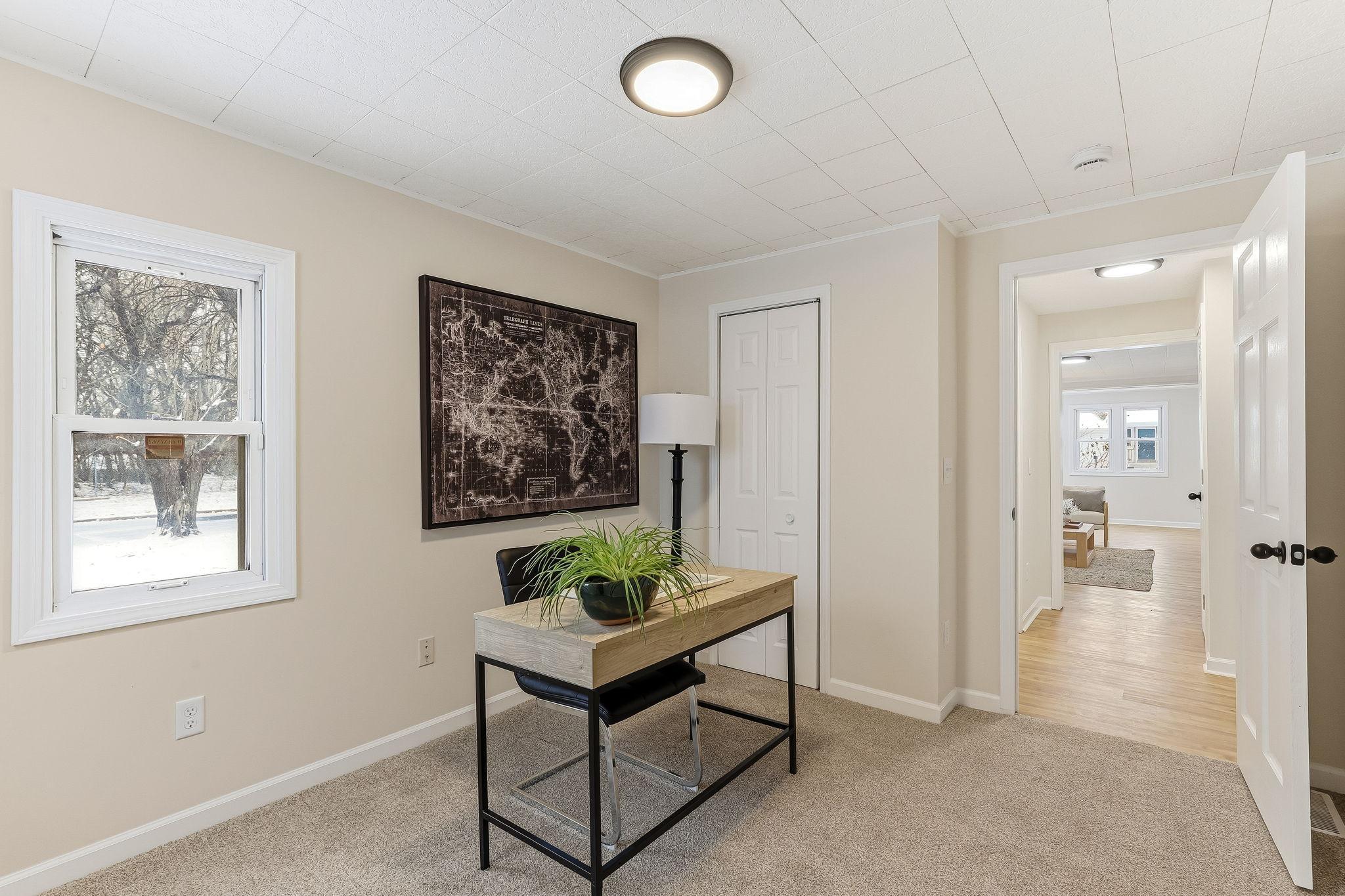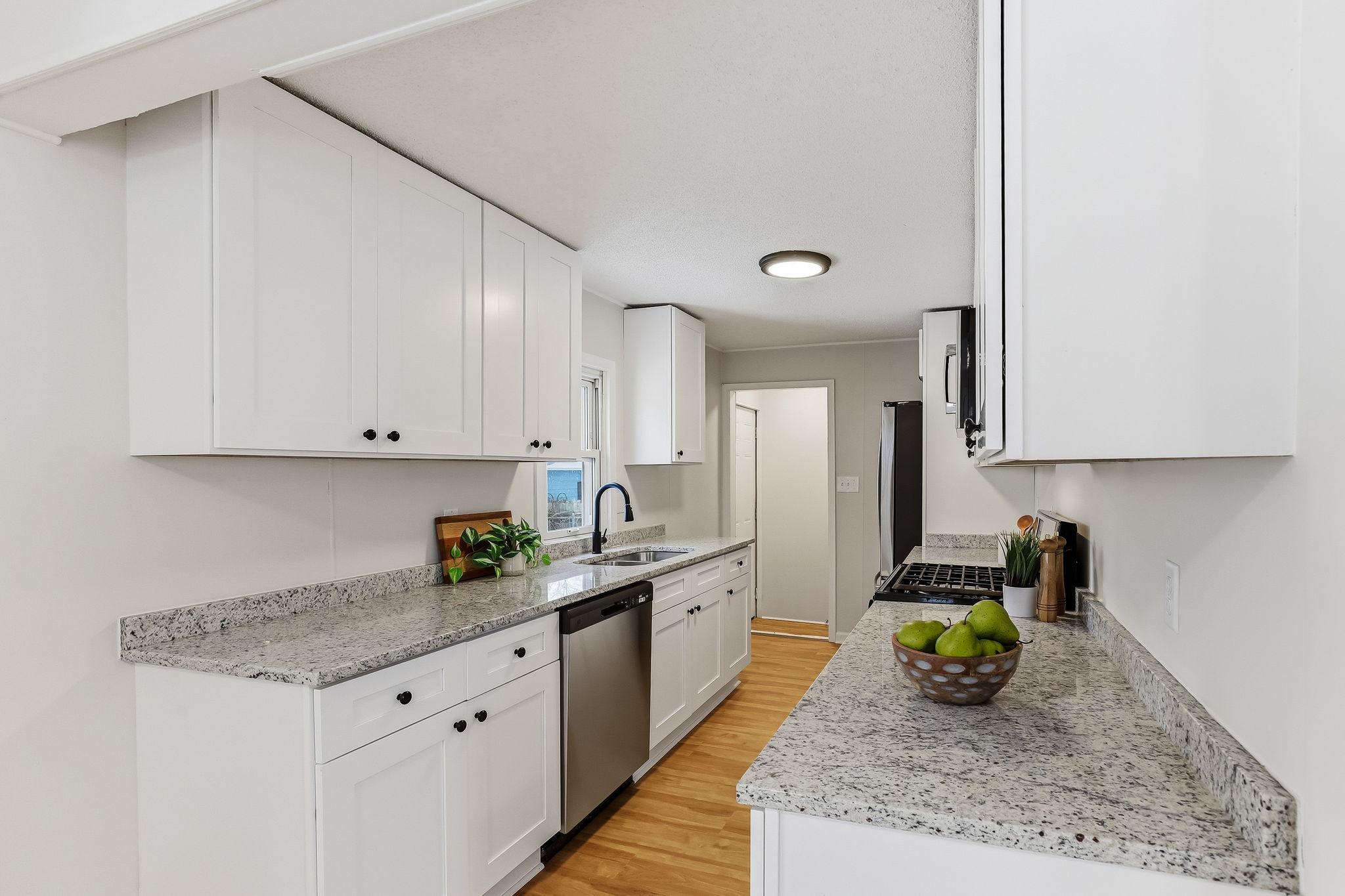Step inside to a bright, refreshed ranch style home where the major updates are already done for you. The spacious living room welcomes you with abundant natural light and built-in shelving that adds both character and everyday functionality. The fully renovated kitchen features new stainless steel appliances, white shaker cabinets, and crisp white quartz countertops that create a clean, modern workspace. The full bathroom has been completely updated from top to bottom, while fresh paint, new lighting, new LVP flooring on the main level, and new carpet in both bedrooms make the entire home feel polished and move-in ready. The full basement is unfinished, giving you room to expand or customize in the future. Out back, the porch leads to the yard and a detached two-car garage with a deck off the backideal for enjoying the outdoors. If you're looking for a thoughtfully updated single-story home thats ready for you from day one, this one delivers.