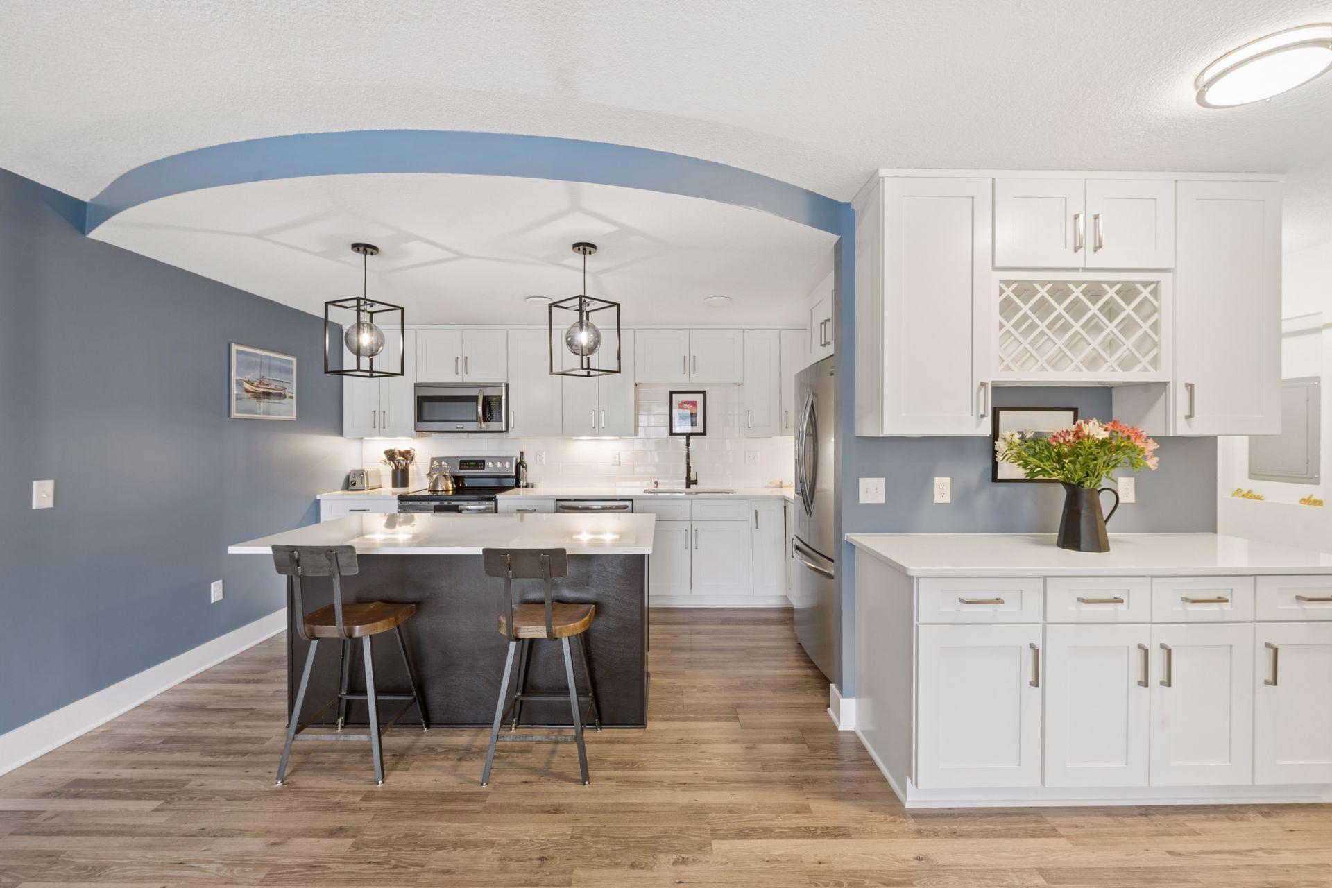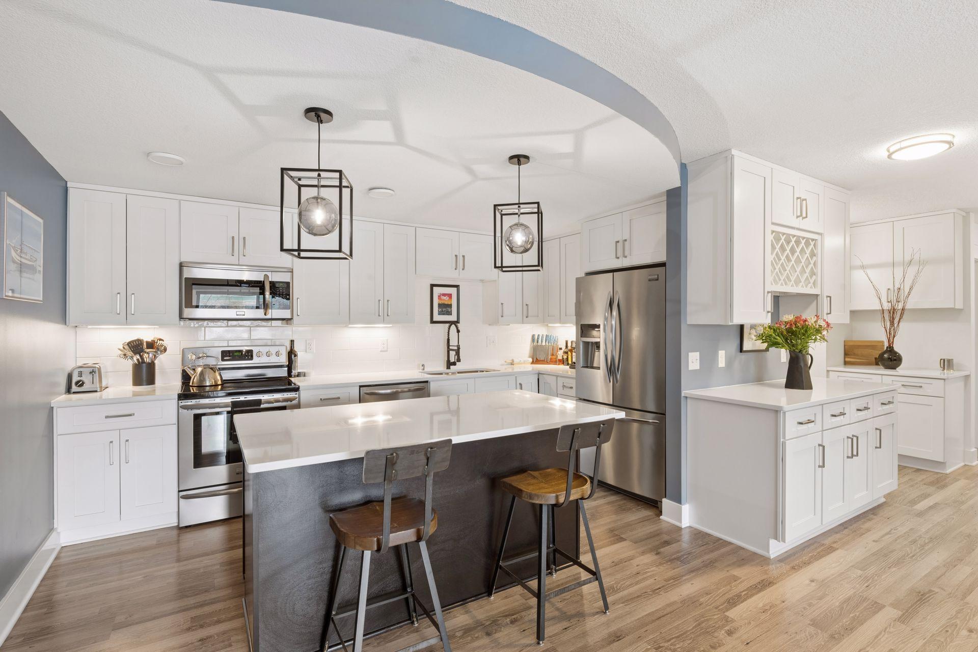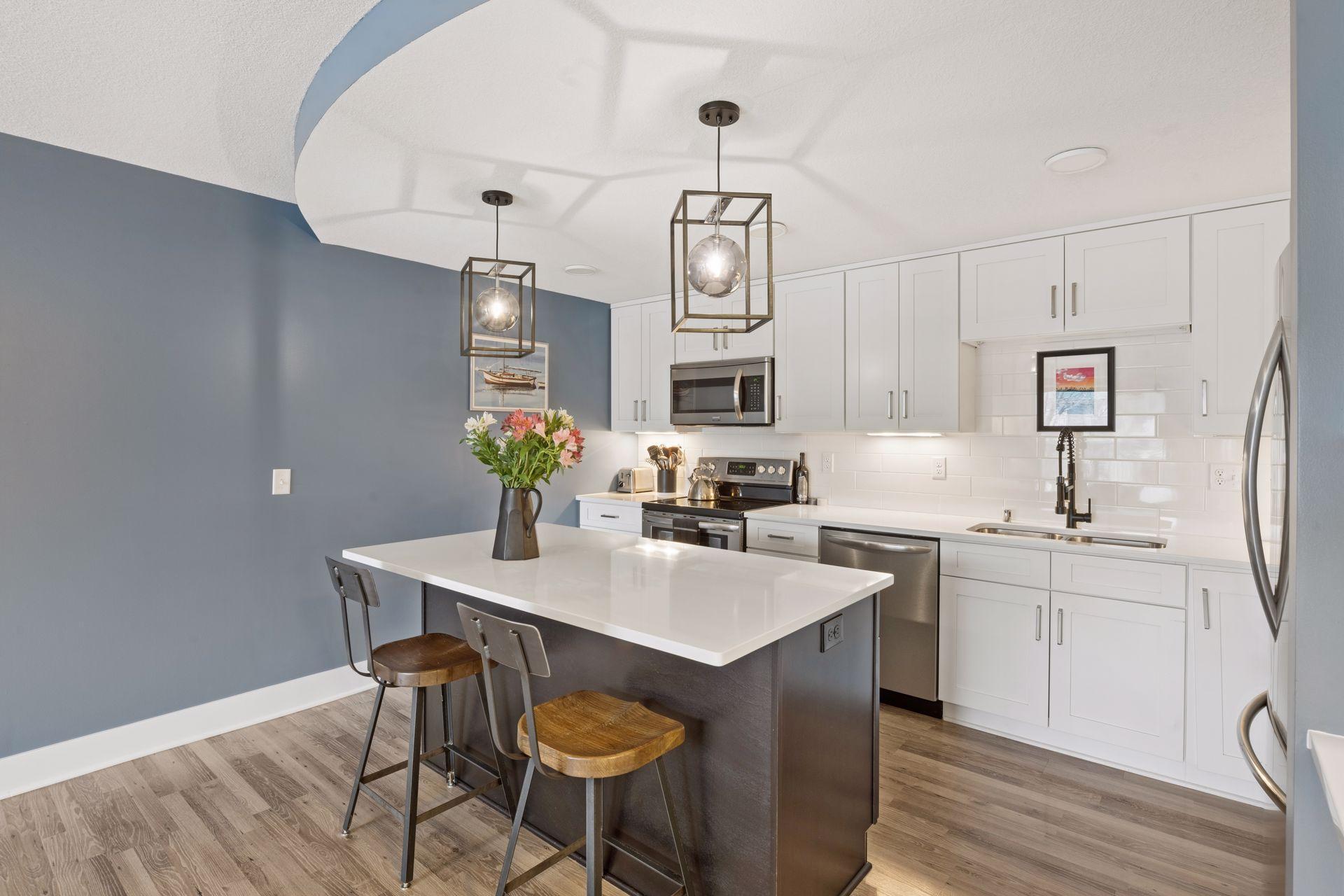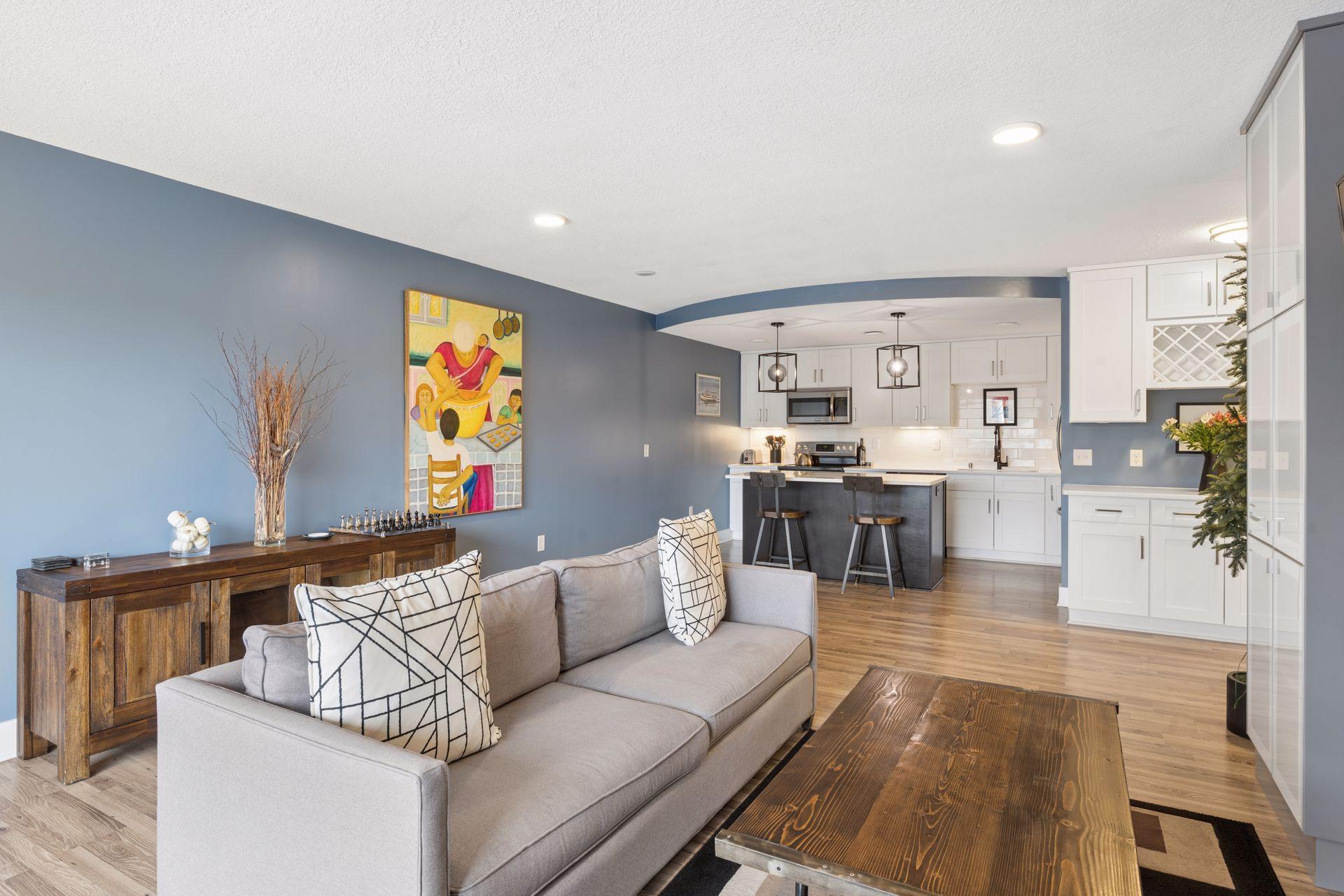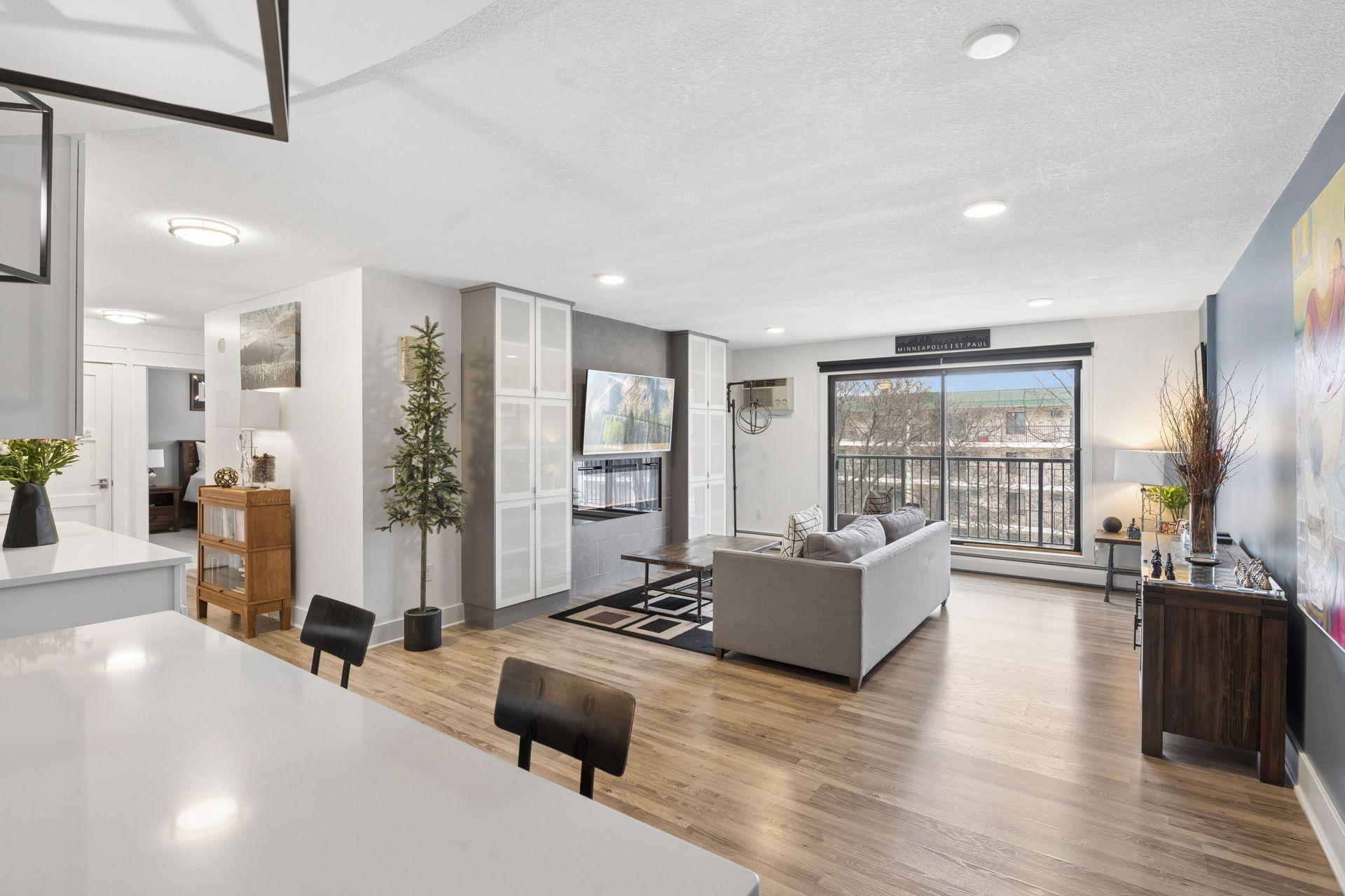 Dont miss this beautifully appointed top-floor luxury condo offered at an exceptional value. This 2-bedroom, 2-bath home features custom built-ins, abundant storage, and solid concrete construction for enhanced privacy. In-unit laundry is a huge bonus! The expansive 40 sq ft southeast-facing balcony provides a peaceful retreat. The primary suite offers a generous walk-through closet, a private bath with a quartz-topped double vanity, a tiled walk-in shower, updated window treatments, and direct balcony access. The kitchen is designed for both style and function, featuring quartz countertops, a large island, a tile backsplash, soft-close cabinetry, a wine rack, and stainless steel appliances. Heated indoor parking is included. HOA fee includes heat & water. Enjoy resort-style amenities, including indoor and outdoor pools, a sauna, a hot tub, a clubhouse, tennis courts, and exercise rooms. Convenient location less than 15 minutes to downtown and quick access to Hwy 100, 169, and 394. Aldi, Trader Joe's, Ridgedale, Target, Whole Foods, Costco & Lakewinds all within 5 miles. Special assessment of $114.67 ends June 2026. HOA dues adjust to $537.95 post assessment.