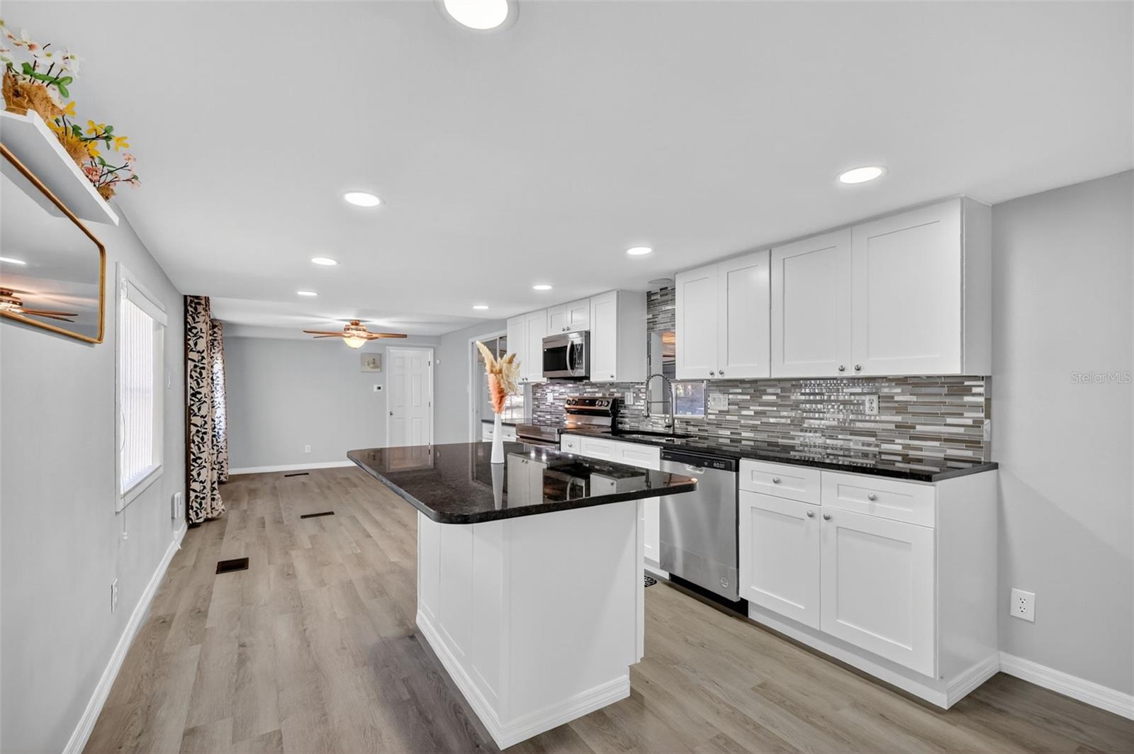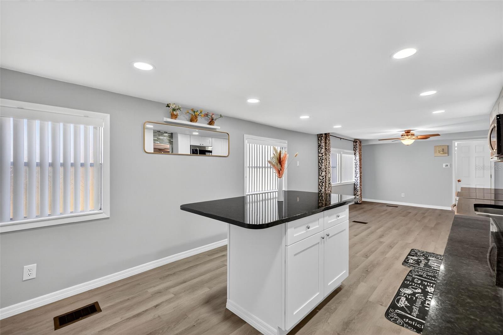 Looking for PEACE AND TRANQUILITY. That's what you'll find in LAKE WEIR VILLAGE. Not only will you find a quiet neighborhood, but you will also find this CUTE, Beautifully UPDATED mobile home on nearly one half an acre located minutes from Carney Island Boat Ramp!! This property, totally FENCED in, with 2 entry gates, 3 Storage Sheds/Workshops (w/electricity) and a 2 Car COVERED CARPORT, where there is plenty of room to park your RV or BOAT, as well as an outdoor shower. This 2BR/2BA mobile home is totally RENOVATED. LUXURY VINYL PLANK throughout the home. Can Lighting throughout the home. GRANITE COUNTERTOPS in Kitchen. Kitchen Island, great for serving breakfast, also with granite countertop. SOFT CLOSE CABINETS. This is a must see. CALL TODAY FOR YOUR PRIVATE SHOWING.