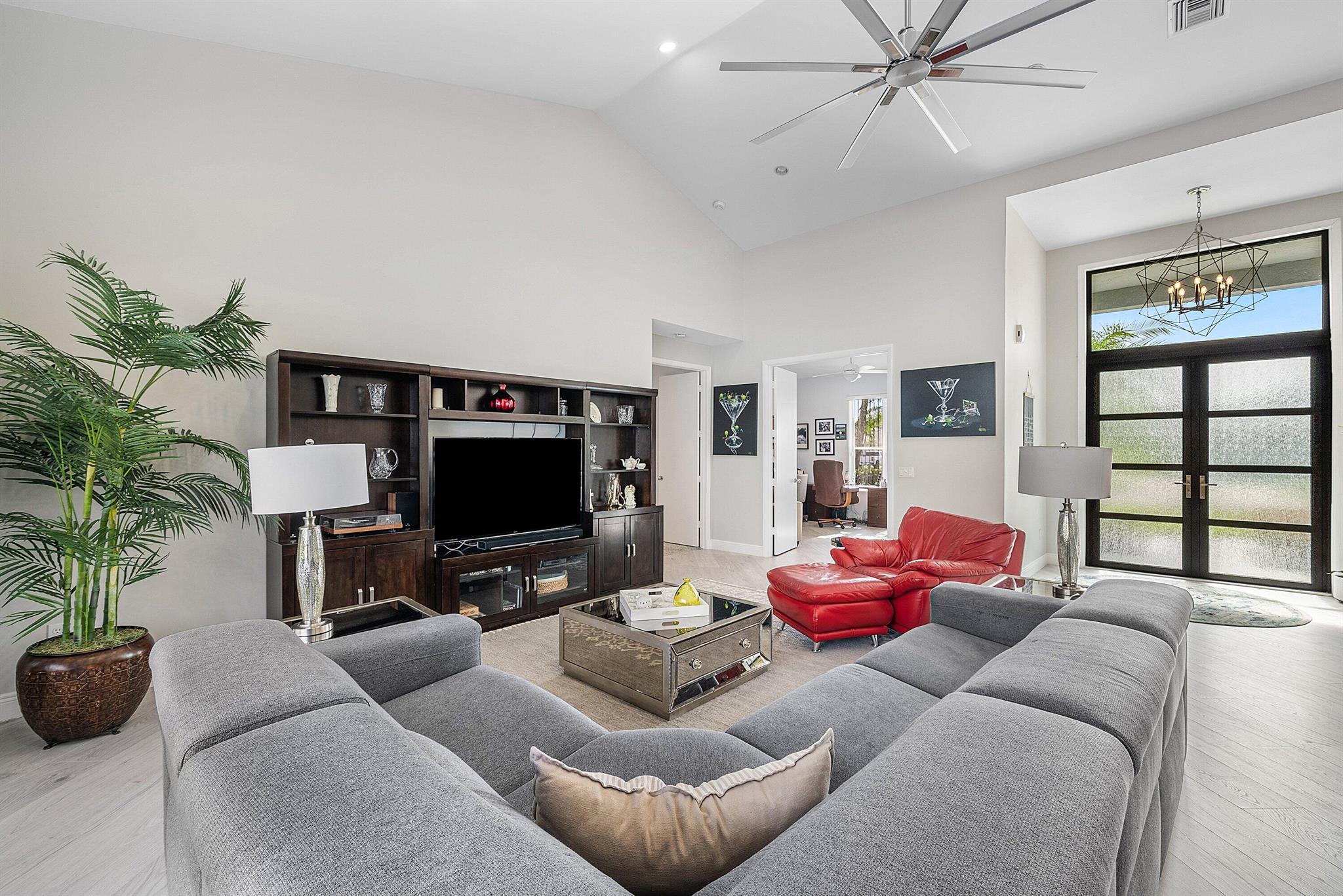 This stunning, updated home blends modern style with everyday luxury, offering over 2,700 sq. ft. of beautifully designed living space, including 3 bedrooms plus a convertible bedroom/den/office, 2.5 baths, and 2.5 garage spaces. Set on an ultra-private golf-front and preserved lot with its own recently updated heated pool, it is truly move-in ready From the moment you enter, the home makes an unforgettable impression. Oversized wall-to-wall sliders in the living room, breakfast area, and primary bedroom flood the space with natural light and deliver uninterrupted views of your personal paradise.Luxury vinyl flooring, no popcorn ceilings.