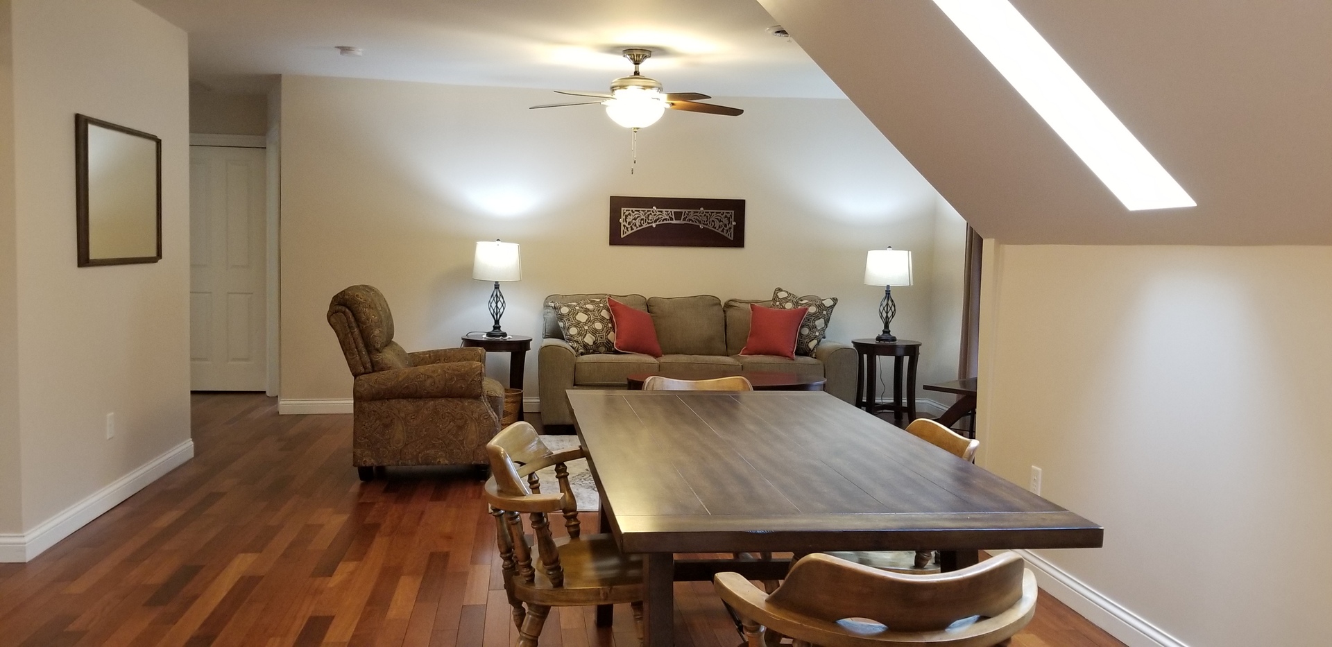 This quality plus, immaculate, 2 bedroom, 2 bath upstairs apartment is like no other you've seen!||| THIS UNIT COMES UNFURNISHED (ALTHOUGH THE PHOTOS HAVE FURNITURE IN THEM) || Approximately 1100 SF condo-like unit has a unique open floor plan with skylights, and gorgeous hardwood floors, stainless steel stove, fridge, microwave and dishwasher. Stackable washer and dryer furnished. Huge walk in closet in the master bedroom, and a jack and jill bath in the 2nd bedroom. 1 car garage included -Plus tons of other storage for your personal items. TENANTS ARE RESPONSIBLE FOR ALL UTILITIES. Dogs considered on a case by case basis - 30# maximum weight - NO CATS - THIS IS TRULY A MUST SEE if you "want the best"~~~~ Credit application required plus a $35 fee for each applicant on the lease. Minimum credit score 650. Pets upon landlord approval..AVAILABLE FEBRUARY 25, 2026 -