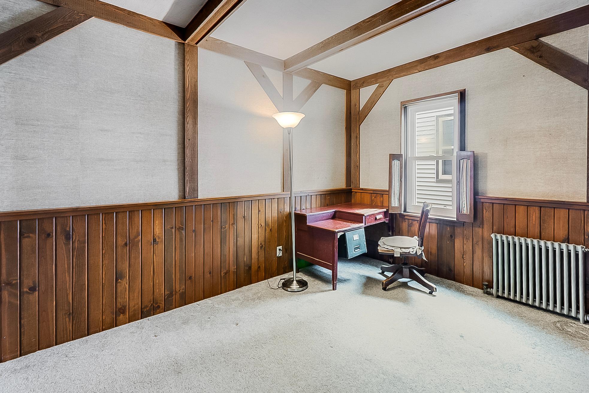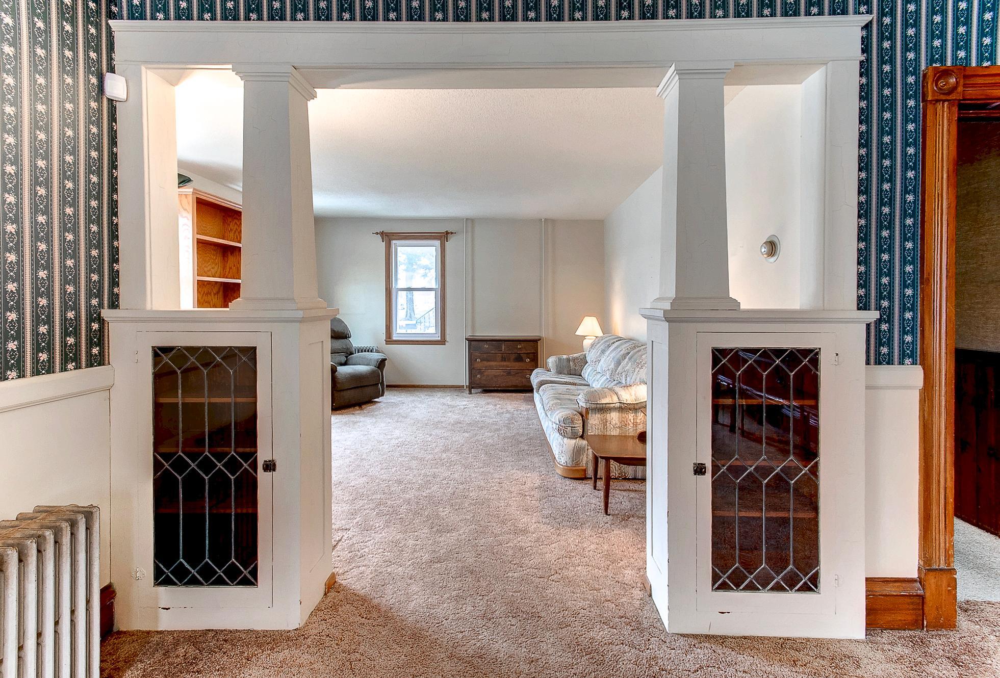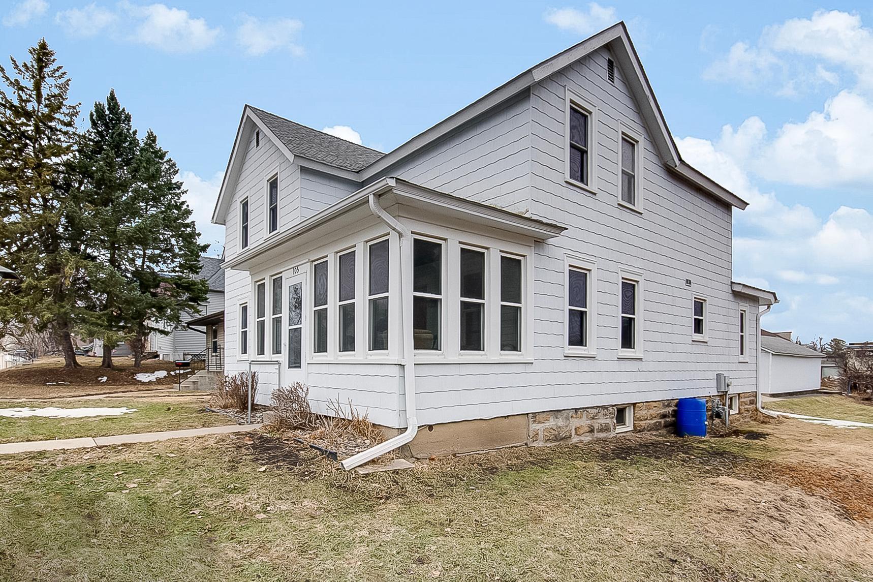 Character-filled two-story home. Main level offers a spacious living room, large formal dining area,southern-facing three-season porch, main floor bedroom, with adjacent officeideal for remote work or flexible living.Main level 3/4 flex bath, laundry combo room. Upper level features three bedrooms and a full bath with charming retro dcor and a classic clawfoot tub. Unique private entrance from back of the home to the second floor. Updates include windows, roof, and electrical panel. Detached two-stall garage completes the property.