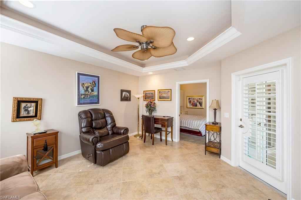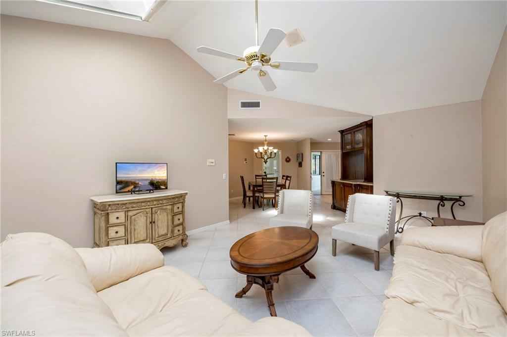 TIER TWO GOLF AVAILABLE, PLAY ALL YEAR LONG...This highly desirable 2Bed+Den, 2 Bath villa offers the perfect blend of comfort, functionality, and serene golf course views. Thoughtfully designed, the open floorplan with skylights provides spacious living areas ideal for both everyday living and entertaining. The interior features neutral tones throughout, creating a light and inviting atmosphere that complements any dxE9;cor style. Tile flooring flows through the main living areas, while the bedrooms offer the warmth and comfort of carpet. The newly painted kitchen provides a fresh, updated feel and serves as the heart of the home, seamlessly connecting to the dining and living spaces. A generously sized lanai (with room for a pool) overlooks the beautifully maintained golf course, delivering peaceful views and an ideal setting for morning coffee or evening relaxation. With ample outdoor space and room to add a pool, this villa offers exciting potential to create your own private retreat.xD;xA;Whether youx2019;re seeking a seasonal getaway or a full-time residence, this well-appointed villa combines desirable features, scenic surroundings, and future possibilities in one exceptional property. 8 Miles to Marco Island, 8 Miles to 5th Avenue Naples restaurants and shopping. This Villa is situated in a great Location in South Naples