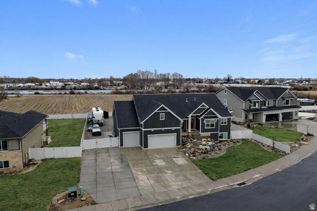OPEN HOUSE Saturday 2/7 from 11-1. * Better-than-newfarmhouse rambleron nearly a-acre lotwith RV parking, a fully finished basement, and the landscaping already completed. Ideally located on adead-end streetwithno backyard neighborsand open farmland behind, offering privacy and unobstructed views. When the subdivision was built the farmland behind the house was dedicated to be open space in perpetuity (meaning it will always be green space). This spacious, open-concept home features tall ceilings, a vaulted great room, large windows for abundant natural light, LVP flooring, and a cozy tiled fireplace. The fully finished basement includes aseparate entranceand isplumbed for a future kitchenette, plus additional family space withthree total family rooms, including a rec room and media rooms. The gourmet kitchen boasts a10' x 4' island, white shaker cabinets, upgraded quartz countertops, tile backsplash, composite granite sink, gas range, stainless steel appliances, a huge pantry, and a large diningroom space. Luxurious main-level primary suite features a tray ceiling, walk-in closet, double vanity with quartz countertops, and a separate soaking tub and shower with quartz surrounds. Exceptional parking and storage include a4-car extra-tall, extra-deep garagewith storage loft, utility sink with hot and cold water,two 220 outlets in the garage, gated RV pad,120' x 20' RV parking area, and an additional220 outlet in the backyardfor an RV or hot tub. Functional mudroom, drop zone, and half bath connect directly from the garage. The fully fenced and landscaped yard offers a large covered Trex deck, a large16' x 30' cement patio, and additional gravel area ideal for additional trailer parking or a firepit. Additional upgrades include window coverings, tinted south-facing windows, wrought-iron stair railing, taller basement ceilings, a massivecold storage room under the back back deck (accessed through the closet Murphy door), andsolar panels included. Patio door has a custom doggy door insert and will be replaced with a standard door with window prior to closing.