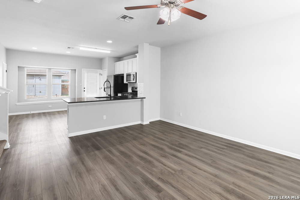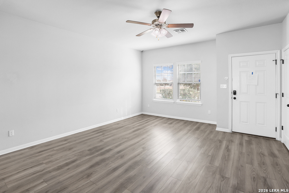 Welcome to this charming two-story, 2-bedroom, 2.5-bath home located in the desirable Trace Subdivision. Situated on a corner lot, this home offers an inviting open floor plan with a spacious living area perfect for relaxing or entertaining. The kitchen features a stylish white tile backsplash, stainless steel appliances, a gas stove, and a convenient breakfast bar. A stackable washer and dryer are also included and conveniently located on the main floor. Upstairs, you will find two generously sized bedrooms along with a full hallway bathroom. The primary suite includes a private full bath featuring a walk-in tiled shower and single vanity. Additional highlights include a detached two-car garage with rear entry and a nicely sized backyard offering plenty of space for outdoor entertaining and activities. Residents of Trace enjoy community amenities including a playground and community pool. The home offers easy access to IH-35 and is conveniently located less than 5 miles from the San Marcos Premium Outlets and under 10 miles from Creekside Shopping Center in New Braunfels, providing excellent shopping, dining, and entertainment options. This move-in ready home offers comfort, convenience, and a fantastic location.