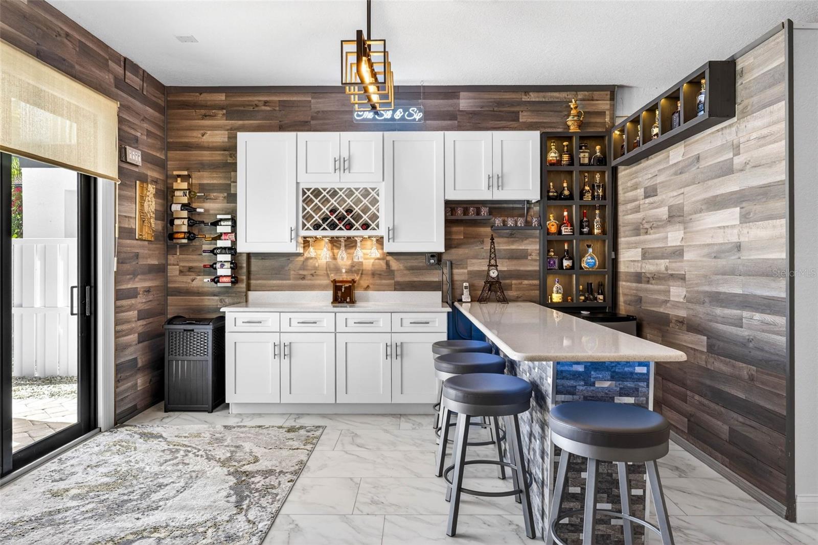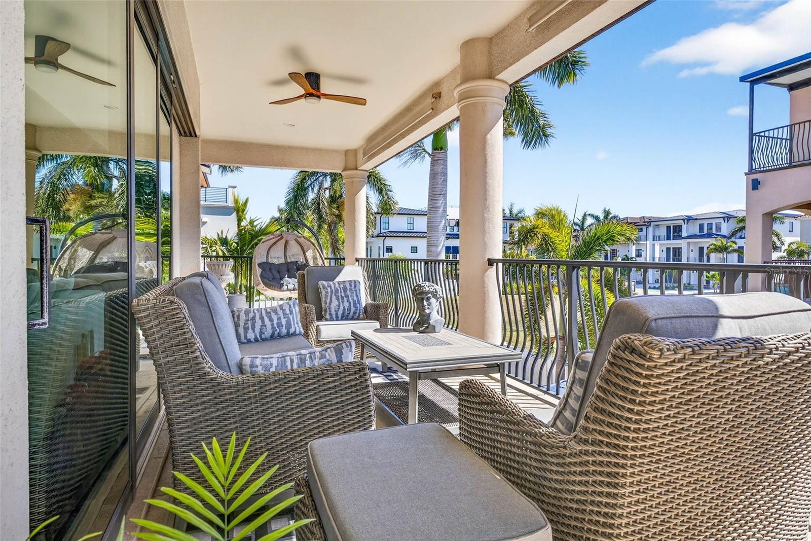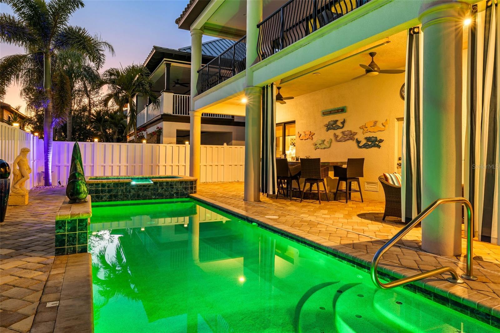 Coastal Resort Style living at its best! Welcome to an extraordinary like-new meticulously maintained coastal residence, a true masterpiece of design and luxury, located in a prestigious guard gated community just steps from the pristine sands of the Gulf. This solidly built concrete home offers three bedrooms, three bathrooms, an office (could be a 4th bedroom), elevator, luxury custom finishes and a massive first floor entertainment room. The grand entrance features a black marble foyer illuminated by lighted custom niches and a sparkling amber crystal chandelier. Inside, the 12-foot ceilings create an expansive and inviting environment, enhanced by automated power shades, etched glass accents, and elegant finishes throughout. The expansive gourmet kitchen is a chefs dream with a gas cooktop and high-end appliances, perfectly complementing the homes sophisticated style. The primary suite is a retreat of unparalleled luxury, boasting a grand entrance, a dazzling chandelier, and a spa-inspired en-suite bathroom. This home is designed for entertaining, with a concrete balcony covered in travertine tiles and an expansive ground level lanai offering generous indoor and outdoor living spaces. A heated saltwater pool and spa are nestled within the professionally landscaped and lighted yard, creating a private oasis. The paver driveway and pool deck add to the homes exceptional curb appeal. For added convenience and accessibility, the home is equipped with an elevator, ensuring effortless movement between levels. In addition to the exquisite interior and outdoor features, the community offers residents access to a clubhouse with a state of art fitness center, kitchen, entertainment space, tennis and pickleball courts, a newly added kayak and paddleboard launch, and boat slip opportunities. This home, with its rich crystal light fixtures, custom mosaic flooring featuring onyx, agate, amber, and countless other bespoke details, provides a rare opportunity to experience the ultimate in luxury coastal living. Dont miss your chance to own this stunning property surrounded by multi million dollar homes! A brand new HVAC system was just installed.