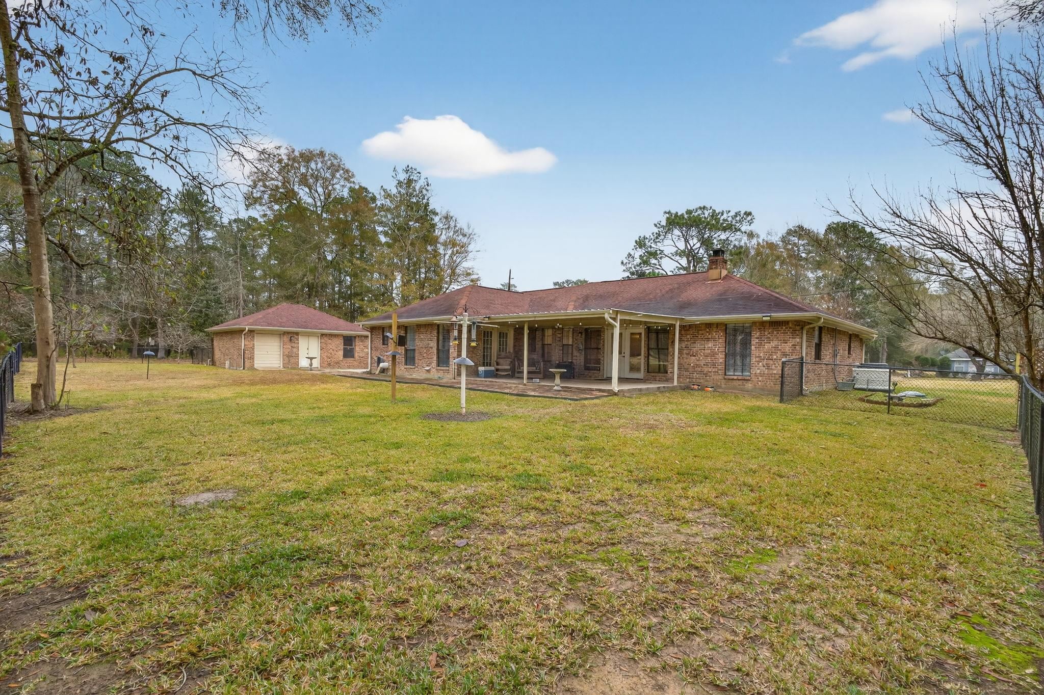 Golf Course living at its best! This beautiful home sits directly on the #7 fairway and offers a rare bonus- two lots for added space and privacy. Inside, you'll love the quality craftsmanship throughout, featuring a cozy wood-burning fireplace framed by custom built-ins, creating the perfect centerpiece for the living area. Step outside to the covered patio and enjoy peaceful views of the fairway- ideal for morning coffee or evening relaxation. This 3-bedroom, 2-bathroom home offers approximately 2,192 sq ft and includes major updates such as roof shingles (approx. 3 years old) and an updated A/C system. Additional highlights include a 500-gallon propane tank, Generac generator, two- car garage, plus a detached golf cart garage/ workshop for extra storage and projects. A perfect blend of comfort, functionality, and scenic views- don't miss this one!