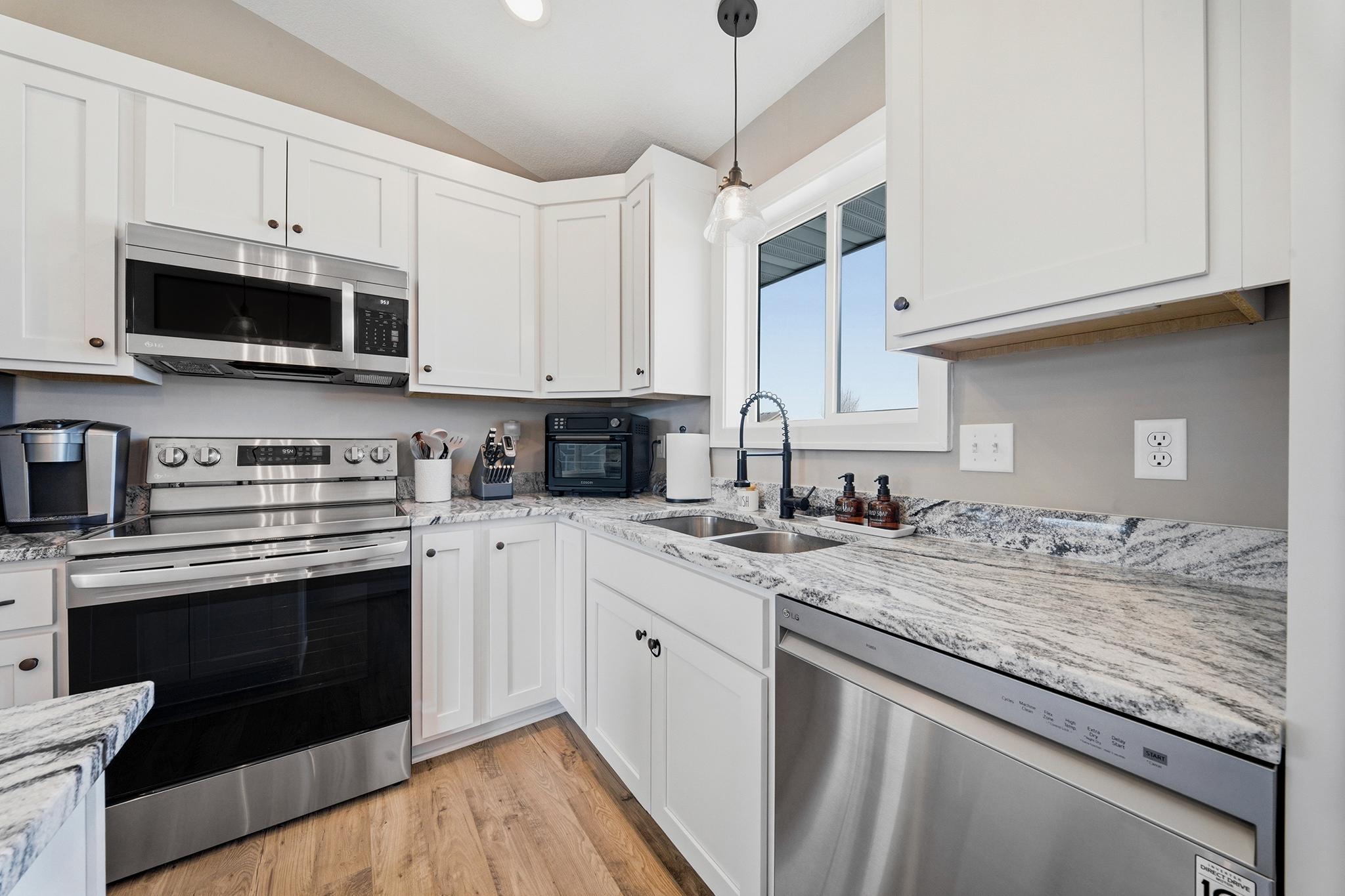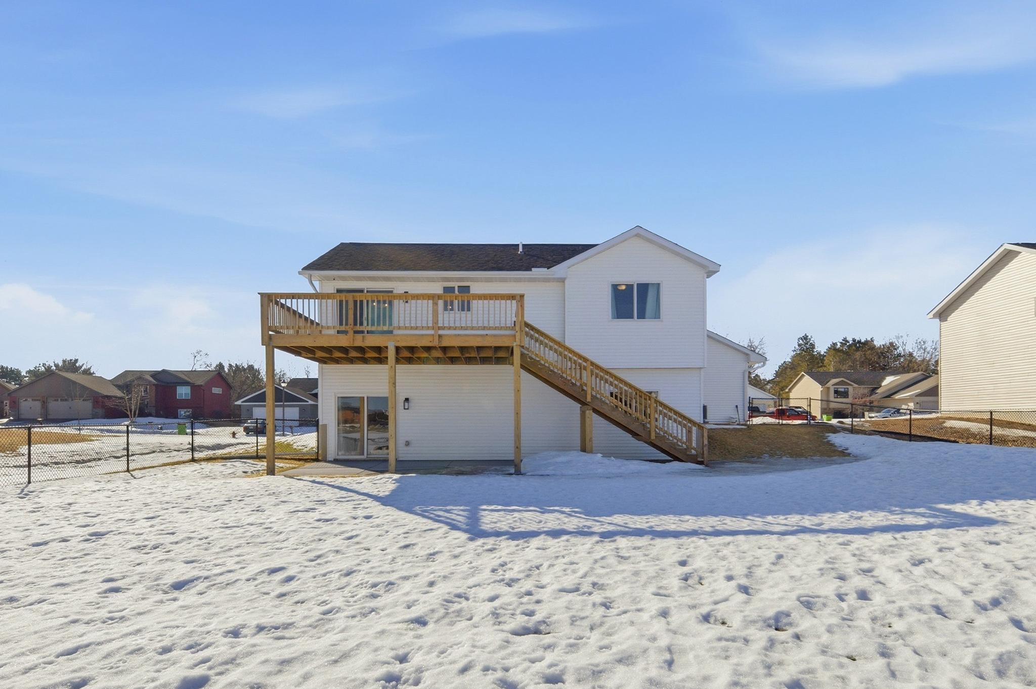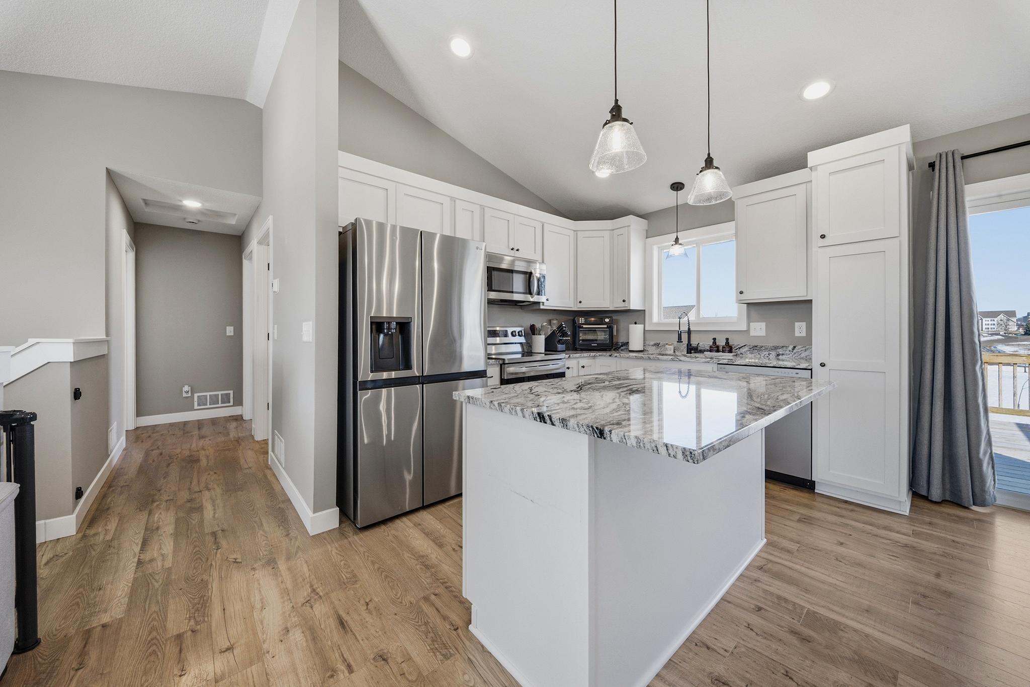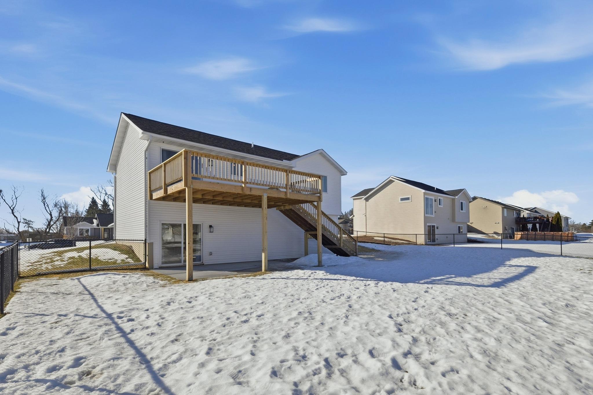 This beautifully maintained home, built in 2024, offers a rare opportunity to enjoy the benefits of newer construction without the wait. Thoughtfully cared for over the past two years, this move-in ready home allows you to skip the time, rising costs, and uncertainty of building while still enjoying the modern design that buyers desire. This home provides an inviting open-concept layout featuring vaulted ceilings, abundant natural light, and durable laminate flooring throughout the main living areas. The bright white kitchen serves as the centerpiece of the home, showcasing granite countertops, ample cabinetry, and a seamless flow into the dining and living spacesperfect for both everyday living and entertaining. The main level includes two comfortable bedrooms and a full bathroom along with the primary living areas. Downstairs, the finished walkout basement expands your living space with a large family room, an additional bedroom, and another full bathroom. The walkout patio door provides easy access to the patio beneath the deck, a fenced-in backyard, and an outdoor space ideal for relaxing or hosting guests. This property is situated close to walking trails, dog parks, city conveniences, local hotspots, and the New Richmond Golf Club. Enjoy the layout and complete finishes of newer construction, without the hassle of building. Do not miss this opportunity, reach out to schedule your private showing today! This property is owned by a licensed real estate broker.