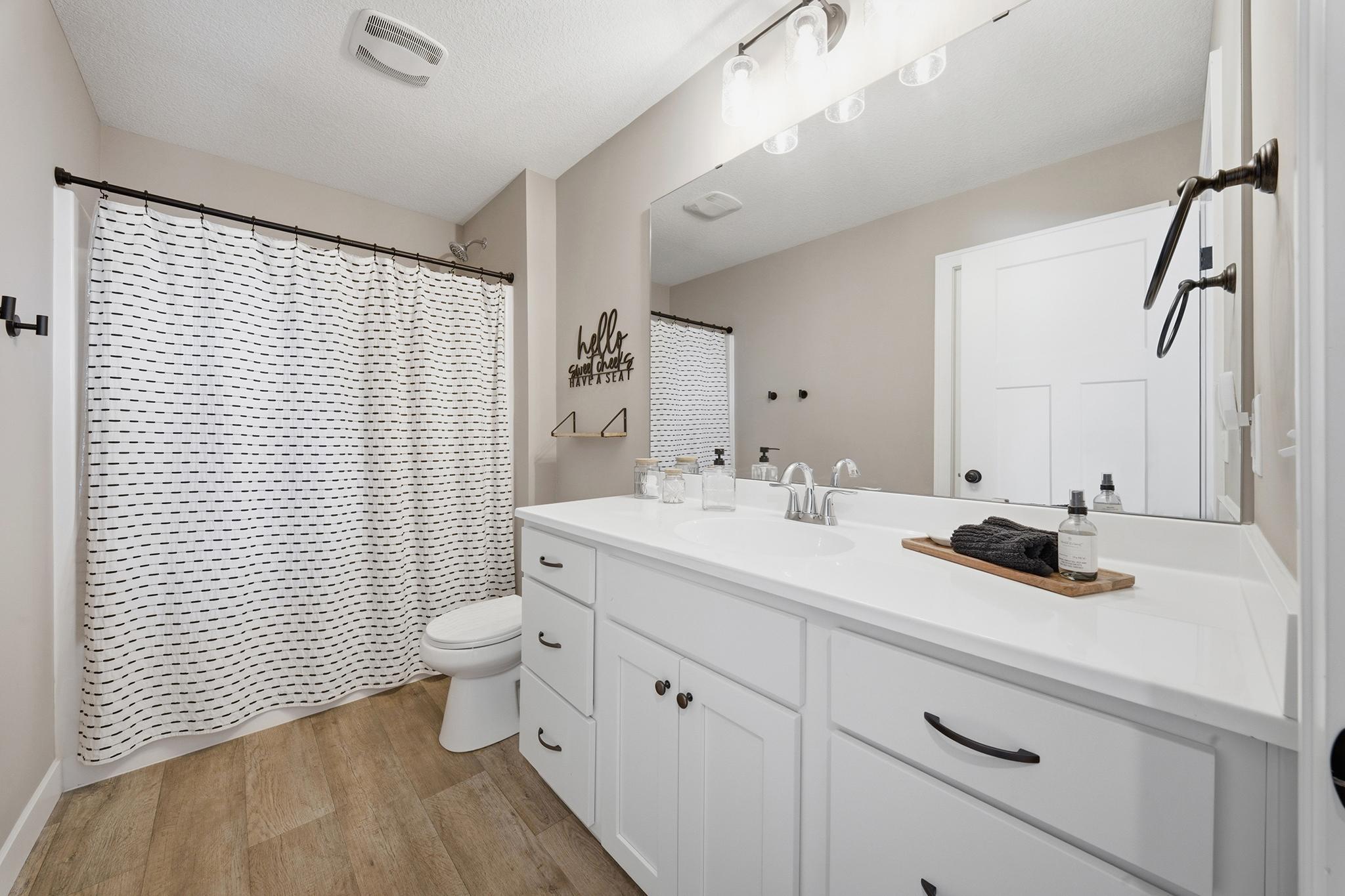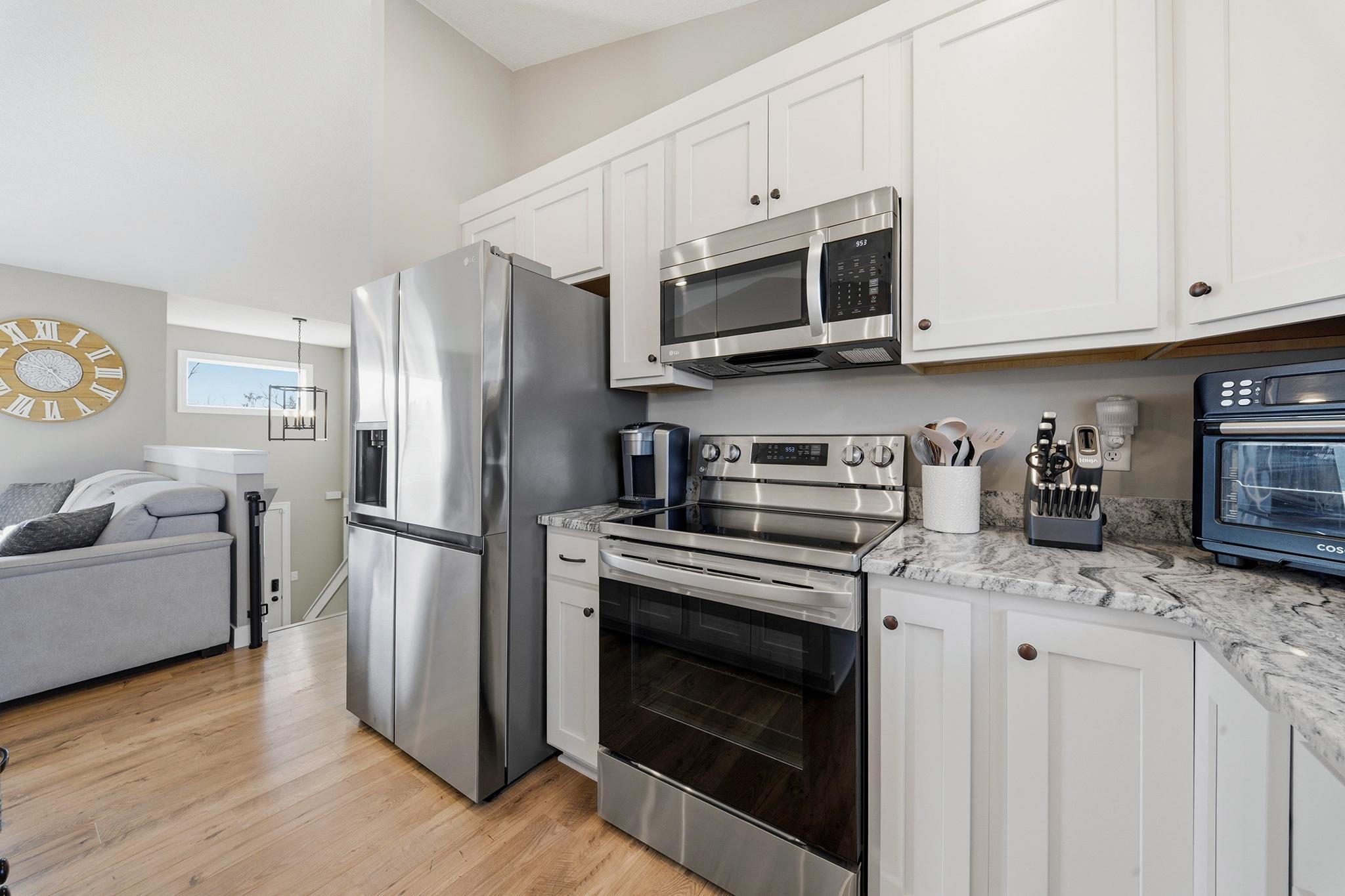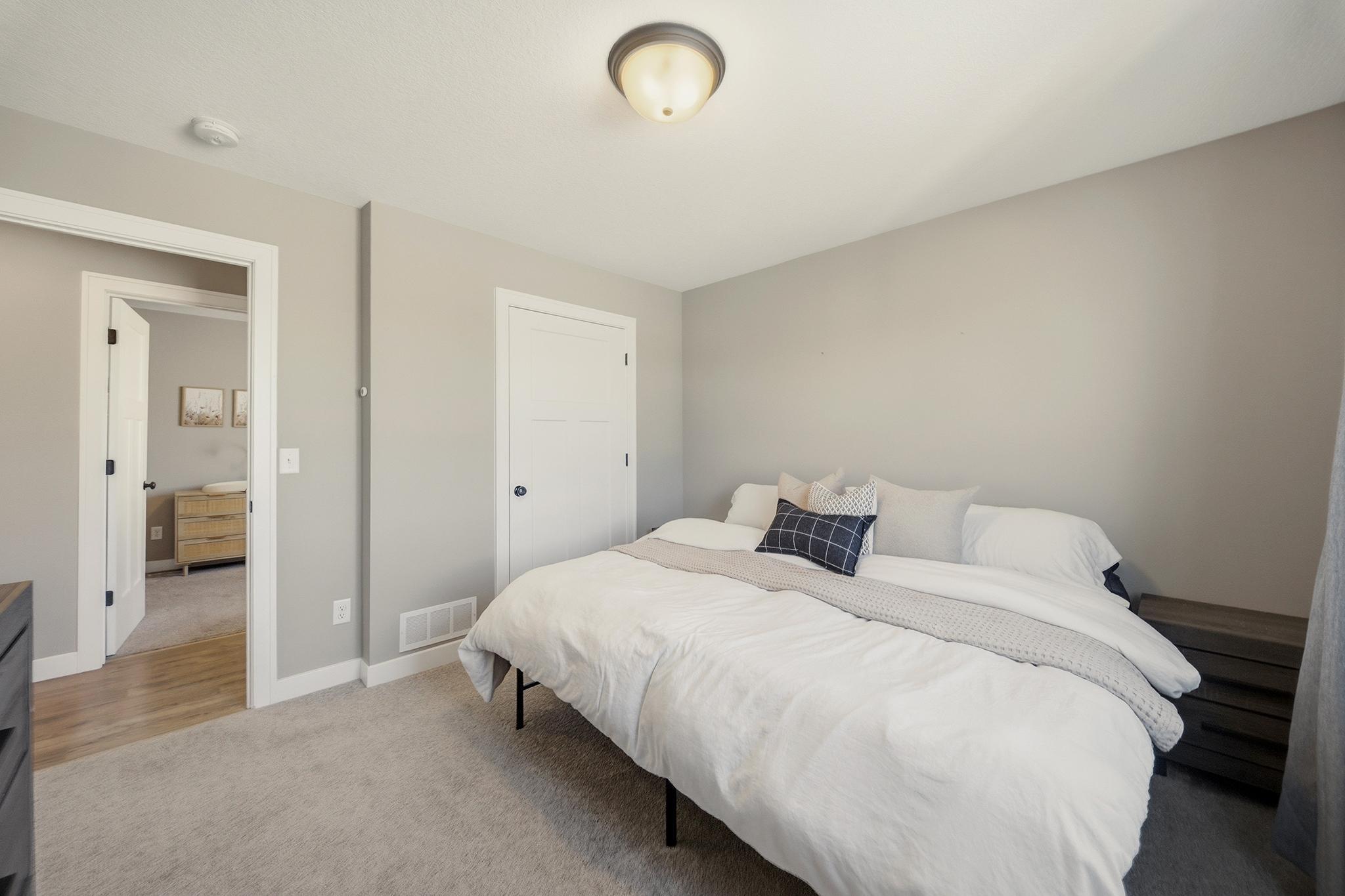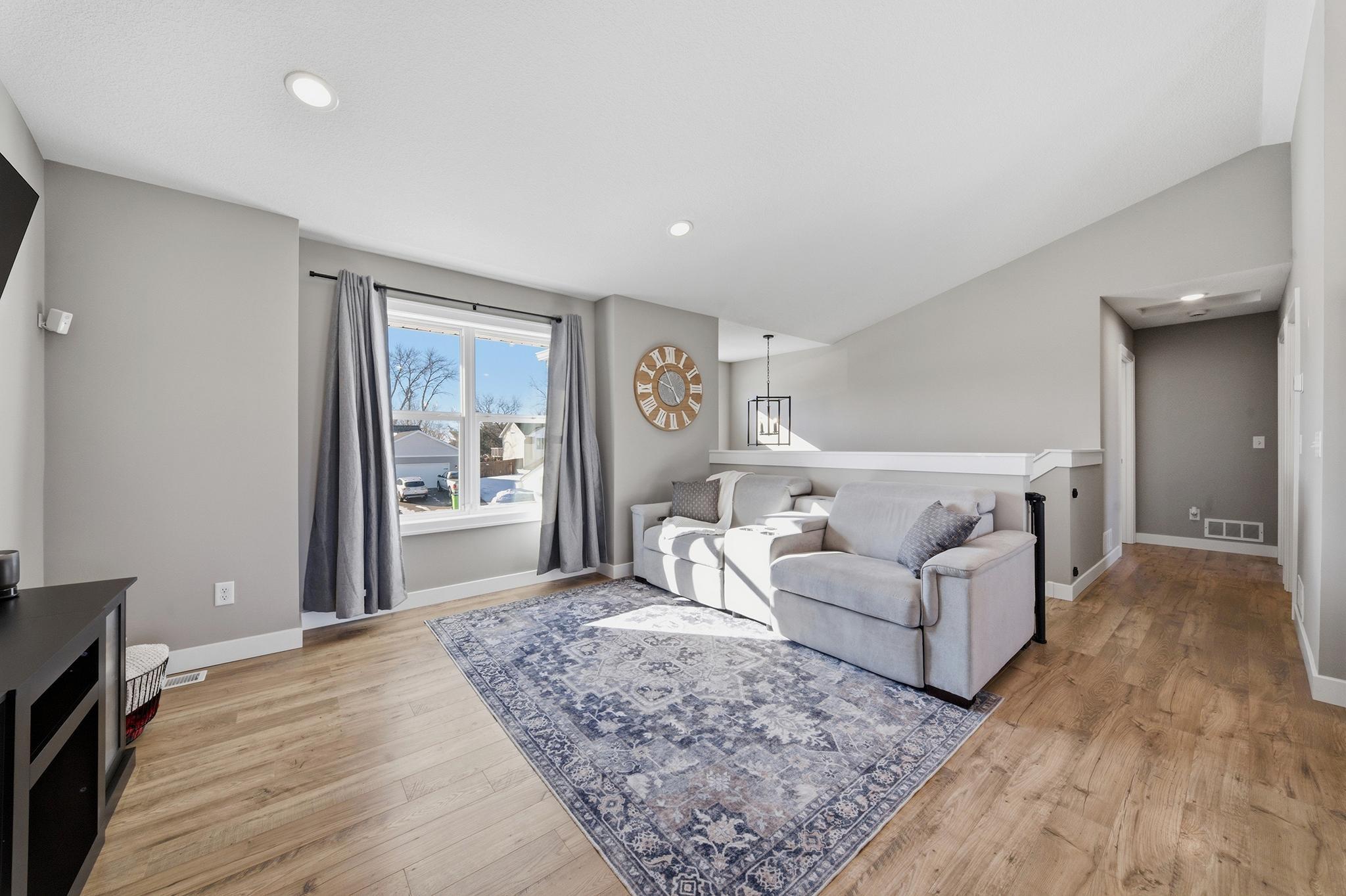 This beautifully maintained home, built in 2024, offers a rare opportunity to enjoy the benefits of newer construction without the wait. Thoughtfully cared for over the past two years, this move-in ready home allows you to skip the time, rising costs, and uncertainty of building while still enjoying the modern design that buyers desire. This home provides an inviting open-concept layout featuring vaulted ceilings, abundant natural light, and durable laminate flooring throughout the main living areas. The bright white kitchen serves as the centerpiece of the home, showcasing granite countertops, ample cabinetry, and a seamless flow into the dining and living spacesperfect for both everyday living and entertaining. The main level includes two comfortable bedrooms and a full bathroom along with the primary living areas. Downstairs, the finished walkout basement expands your living space with a large family room, an additional bedroom, and another full bathroom. The walkout patio door provides easy access to the patio beneath the deck, a fenced-in backyard, and an outdoor space ideal for relaxing or hosting guests. This property is situated close to walking trails, dog parks, city conveniences, local hotspots, and the New Richmond Golf Club. Enjoy the layout and complete finishes of newer construction, without the hassle of building. Do not miss this opportunity, reach out to schedule your private showing today! This property is owned by a licensed real estate broker.